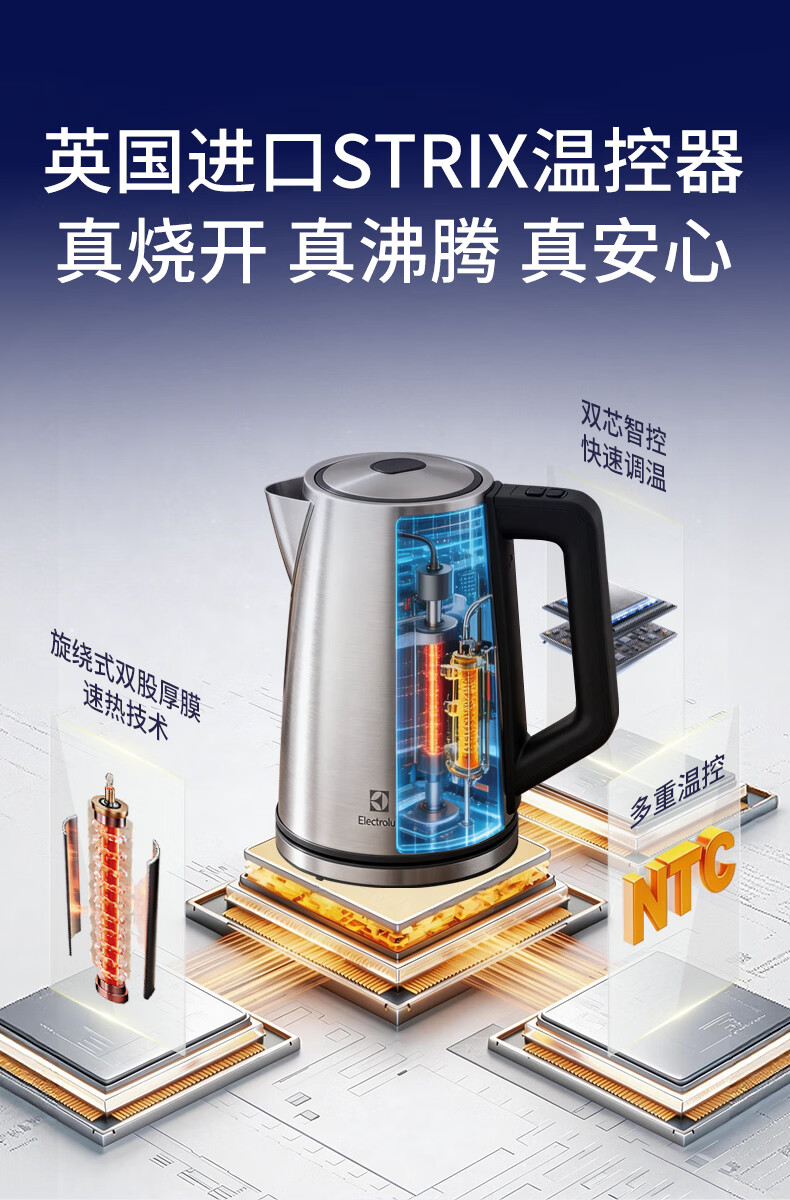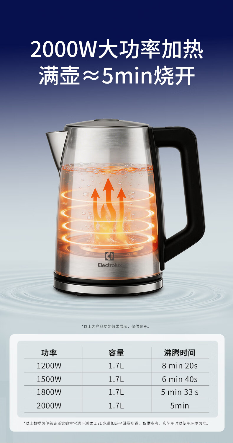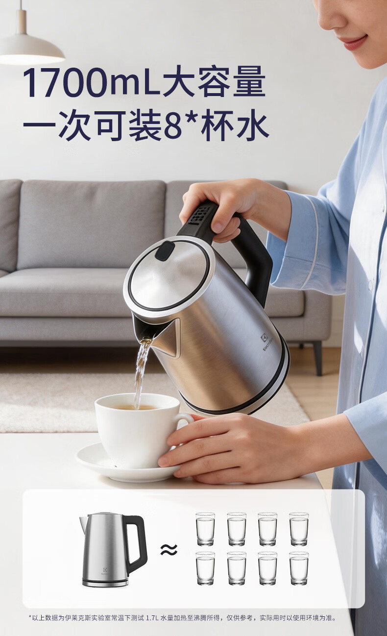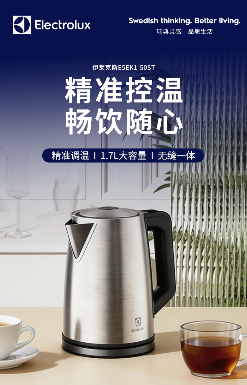 伊莱克斯(Electrolux)电热水壶烧水壶自动断电保温一体恒温热水壶1.7L大容量智能多段控温办公室家用2026年最新款 1.7L 【多段控温】2000W大功率速热
