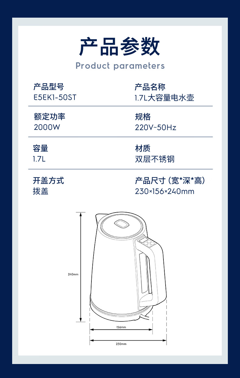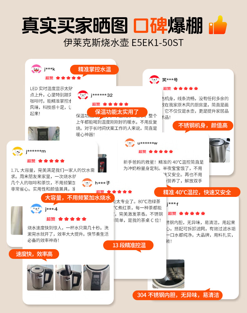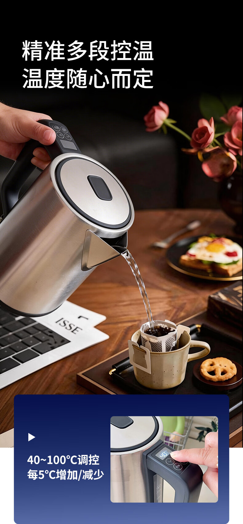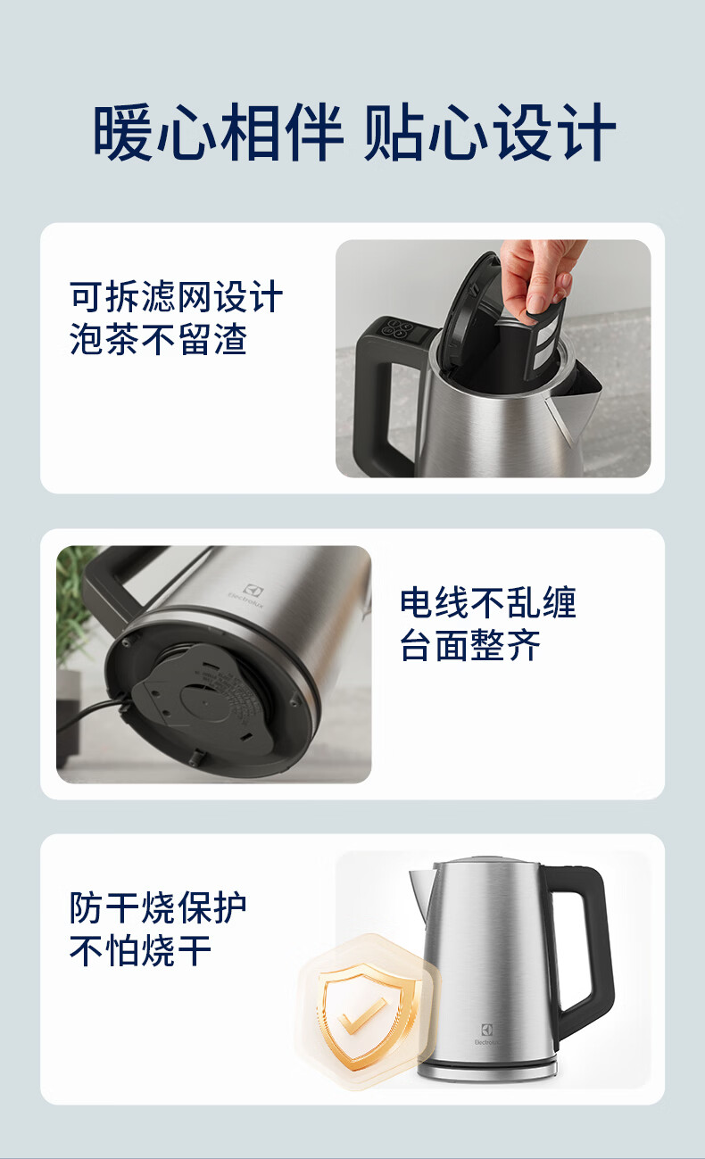 伊莱克斯(Electrolux)电热水壶烧水壶自动断电保温一体恒温热水壶1.7L大容量智能多段控温办公室家用2026年最新款 1.7L 【多段控温】2000W大功率速热
