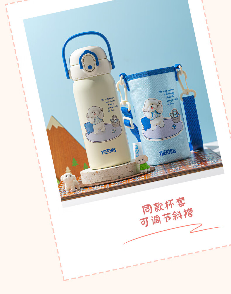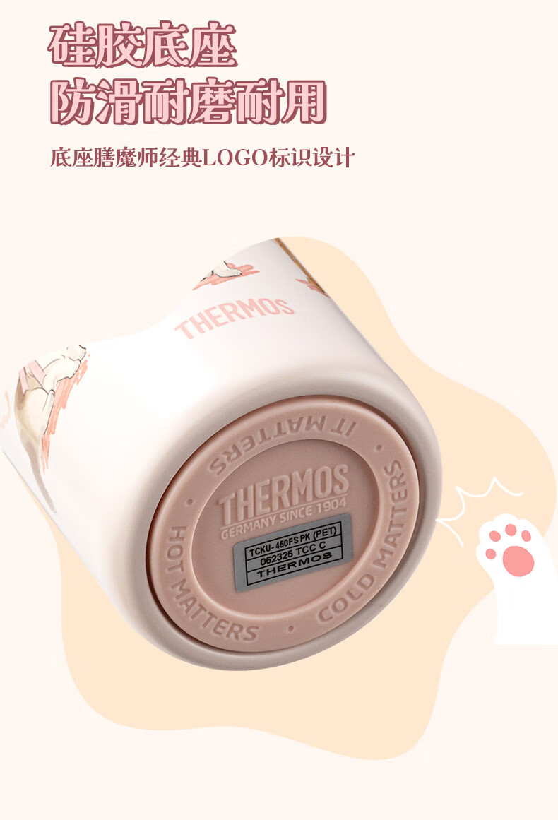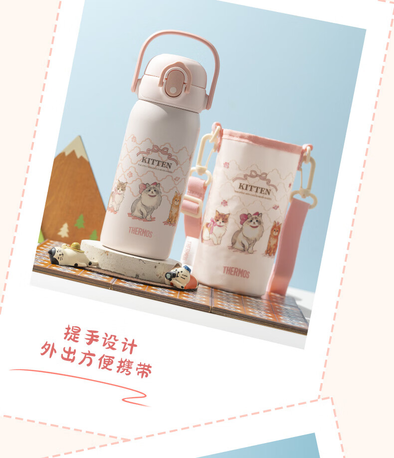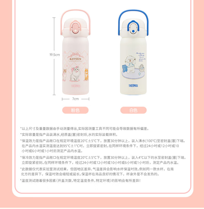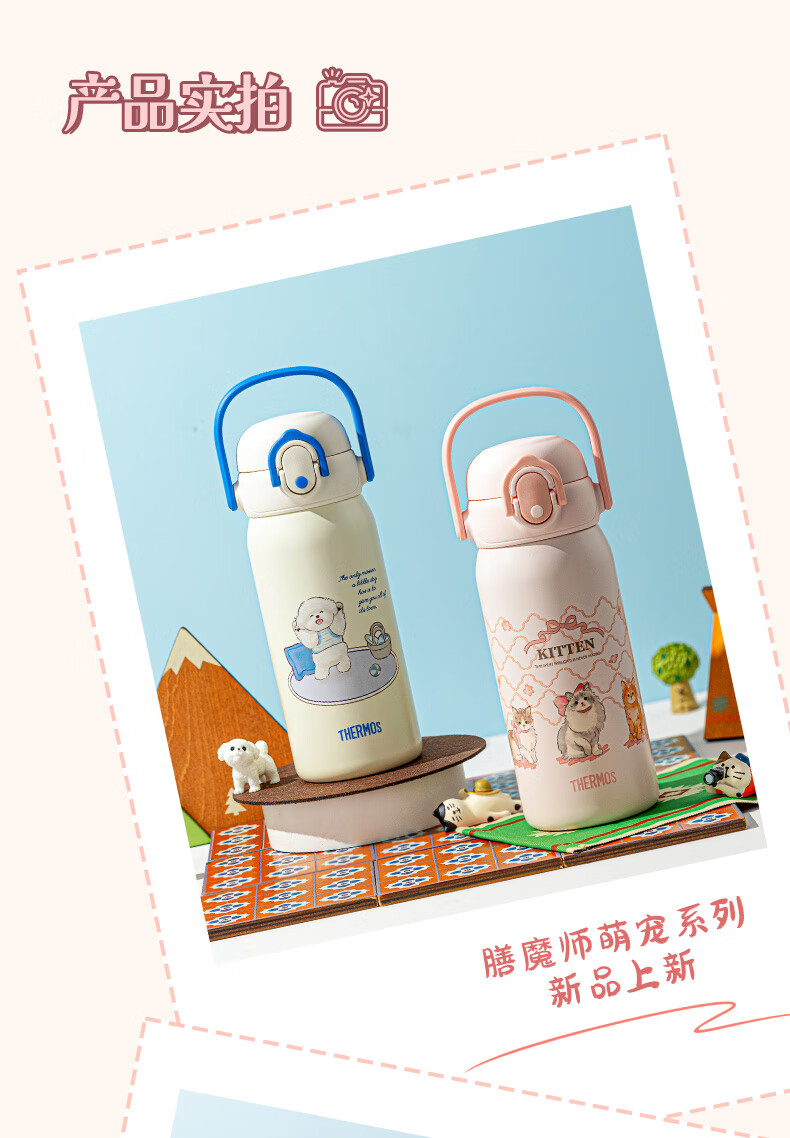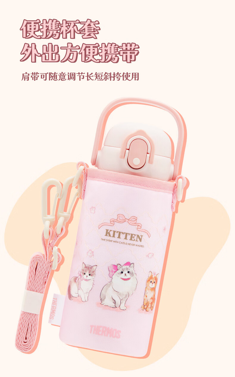 膳魔师小学生316L不锈钢吸管杯安全锁扣幼儿园儿童开学水杯460ml 粉