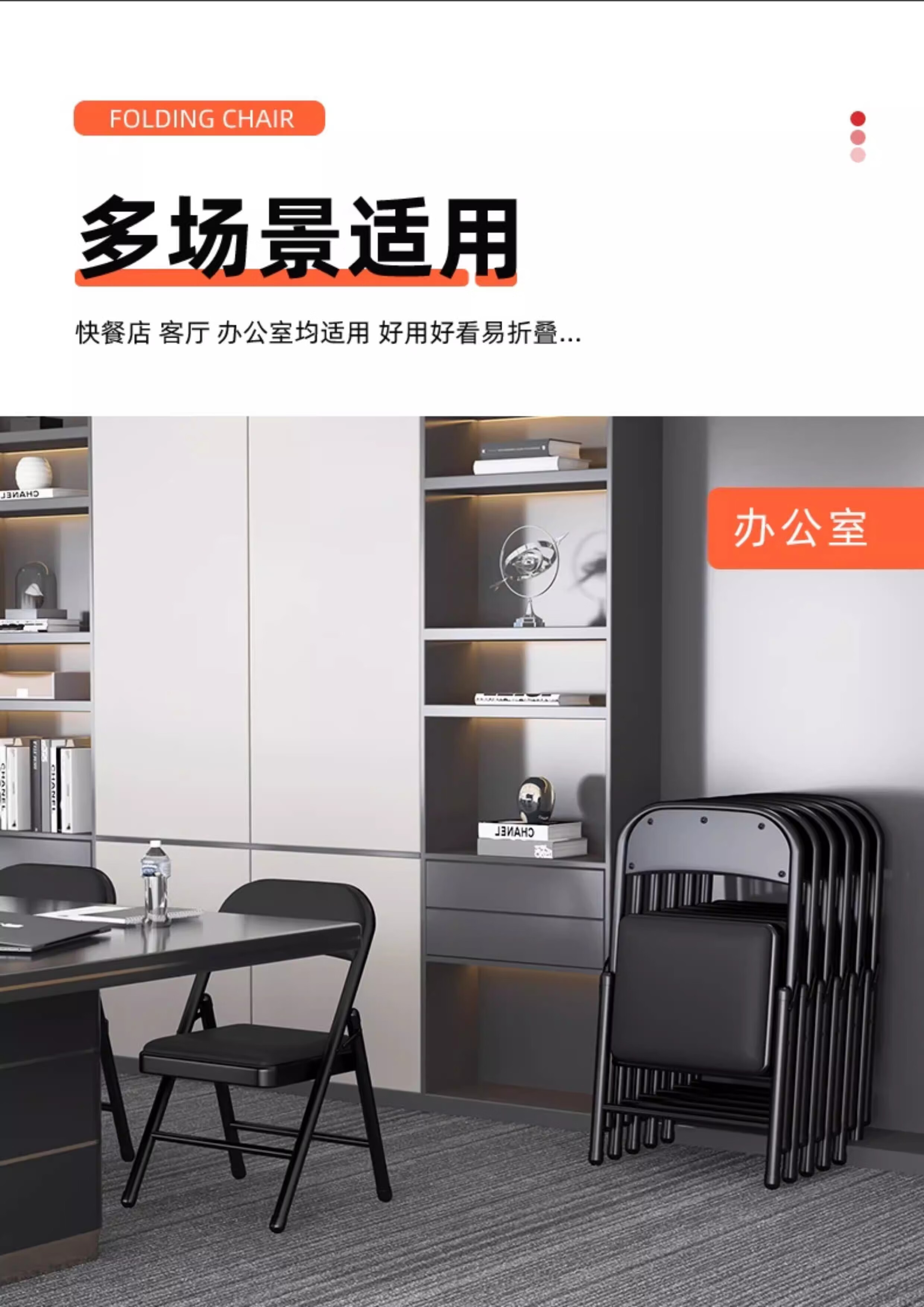 【京喜甄选】电脑椅折叠椅可折叠座椅工学椅凳子便携会议椅座椅 升级加固【黑皮黑架】