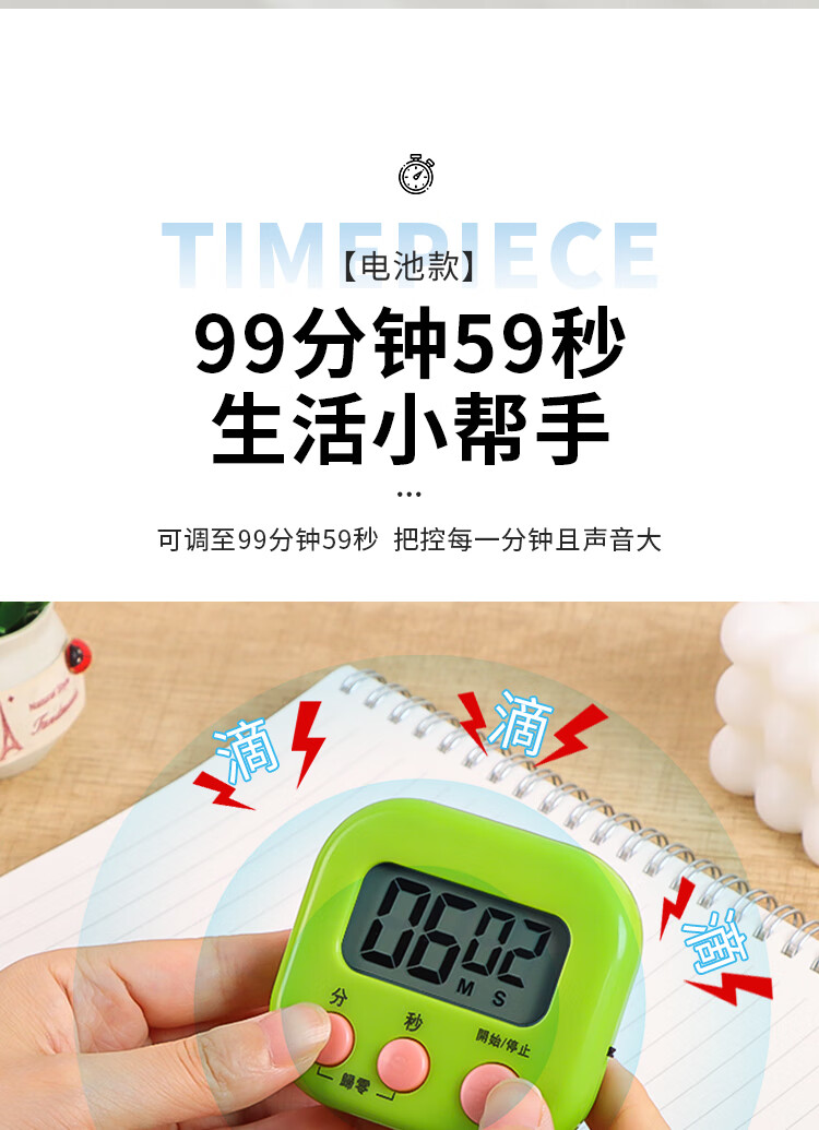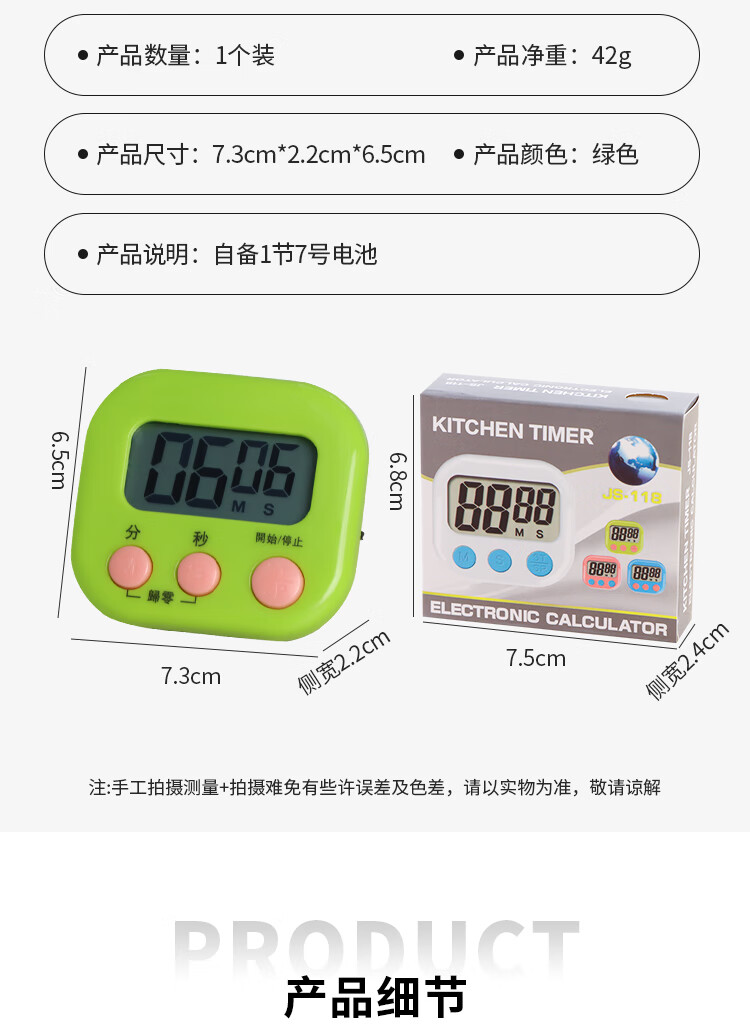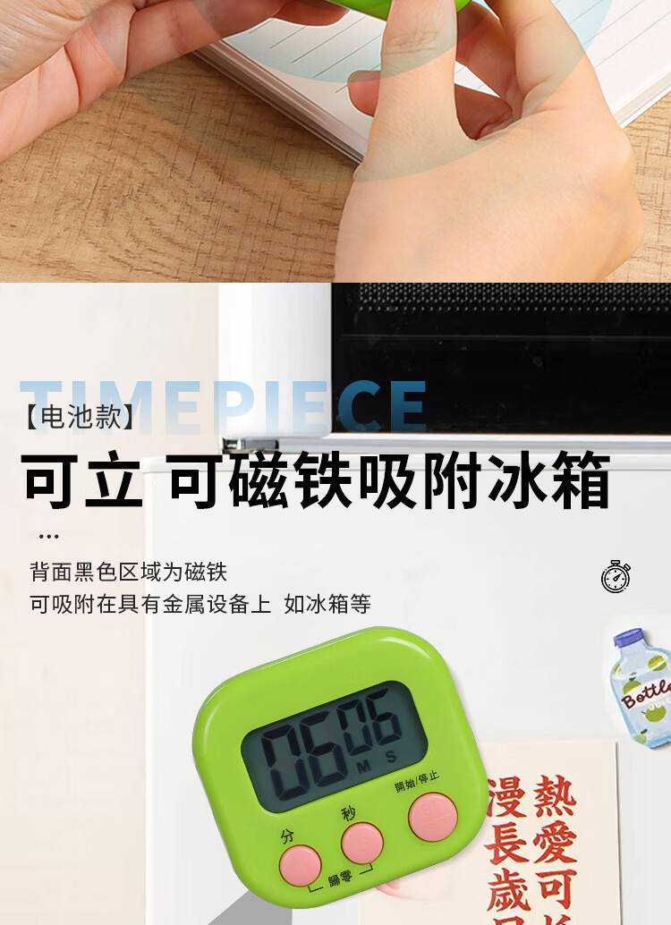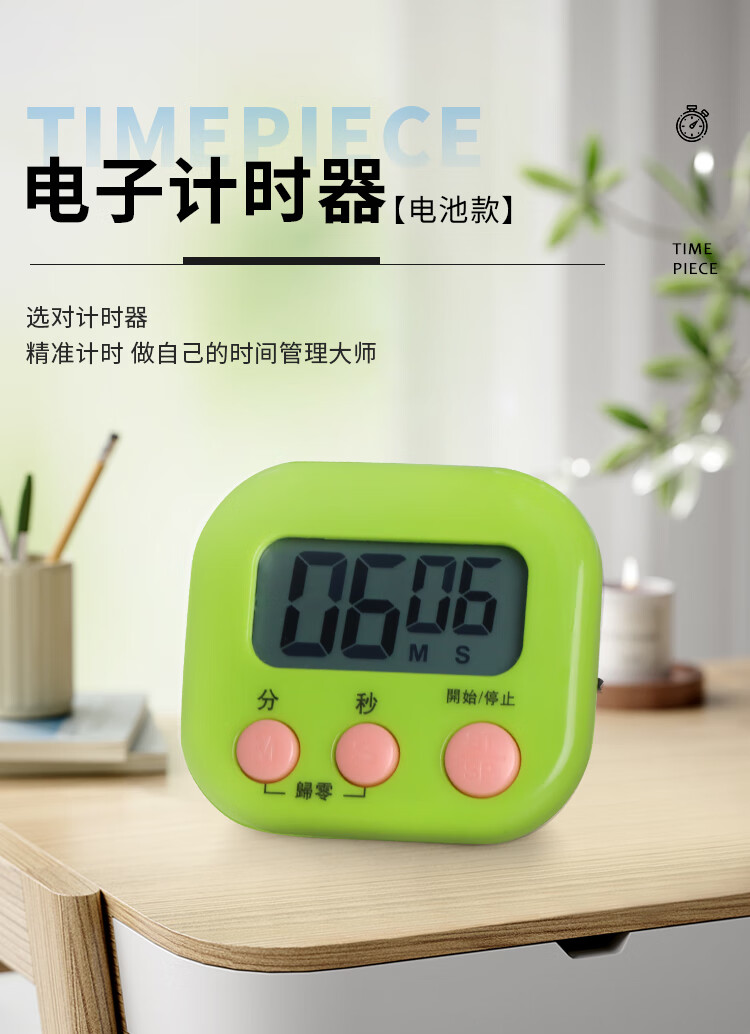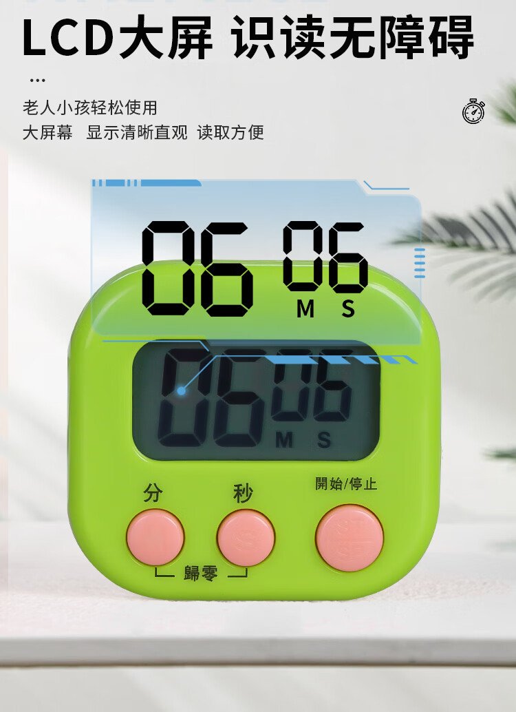 TaTanice 计时器 大屏幕厨房闹铃电子定时器学生做题倒计时提醒器小学生儿童计时器青草绿