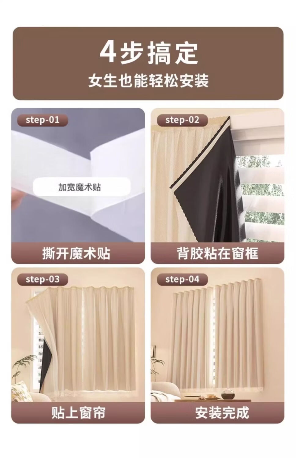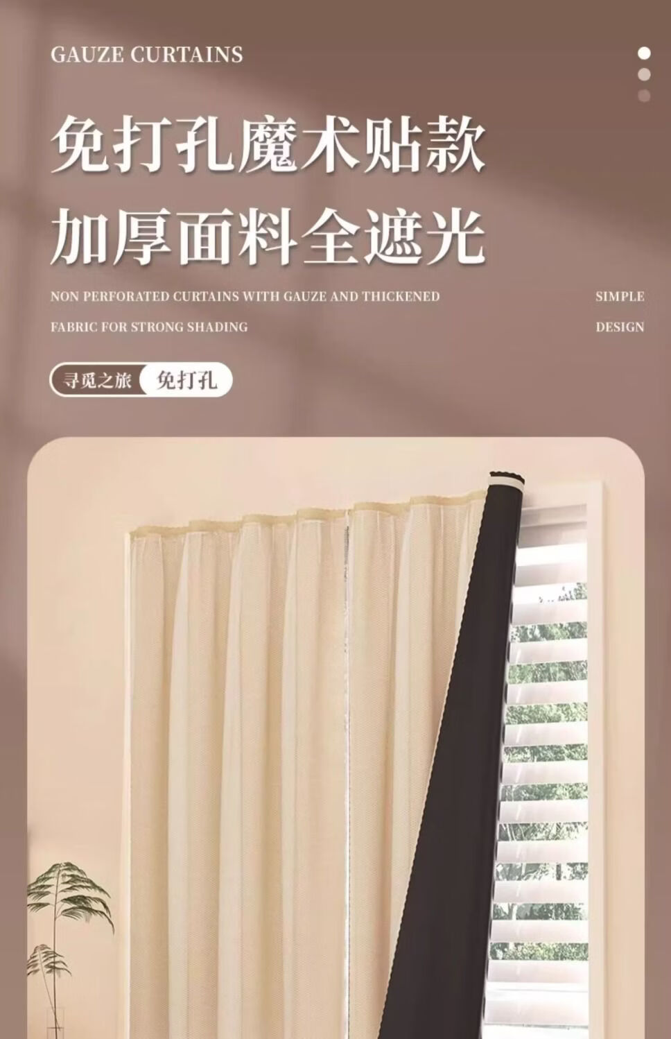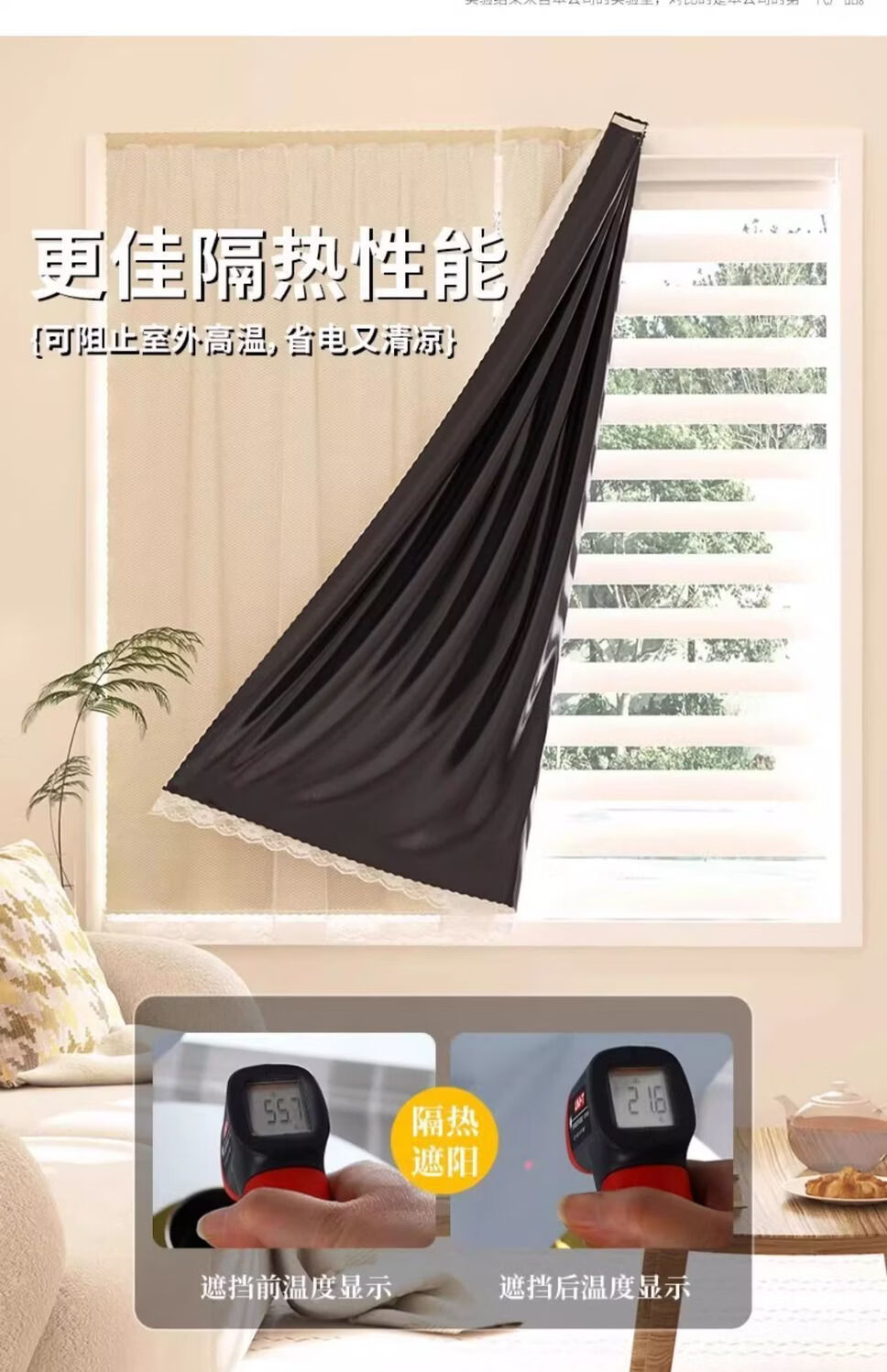 高睿魔术贴窗帘隔热遮阳布防晒遮阳飘窗隔断门帘免打孔安装遮挡全遮光 【荞麦米色】遮光魔术贴 宽1.5X高1.8米【一片帘】送魔术贴