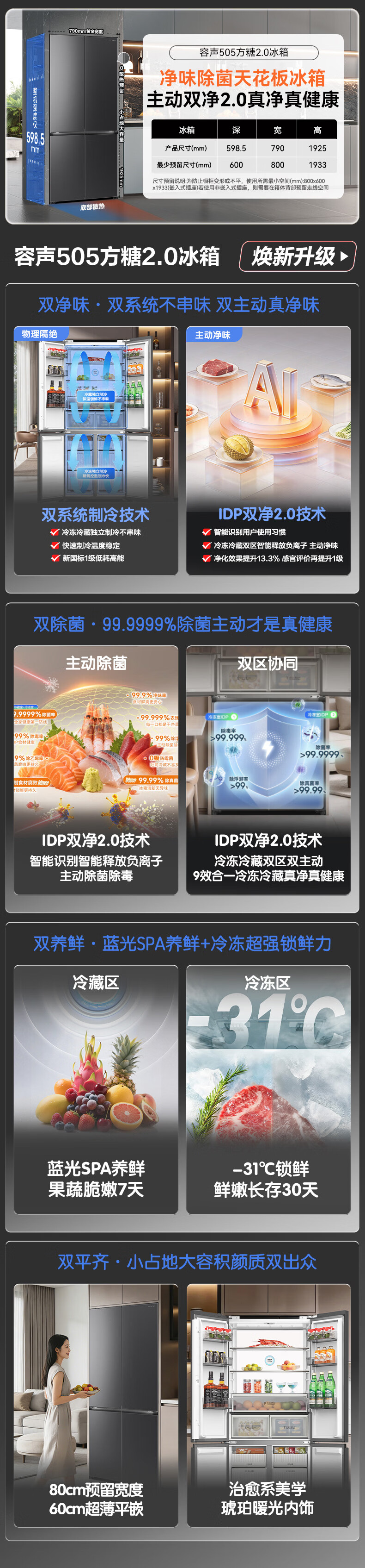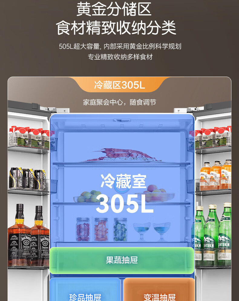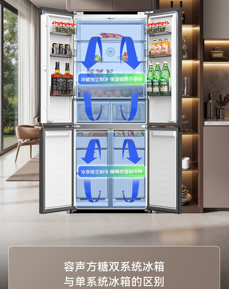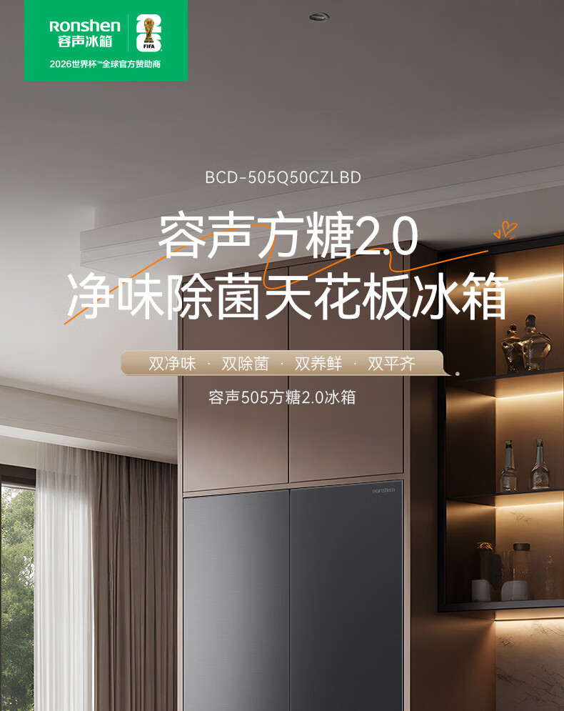 容声【方糖2.0】505L十字门冰箱双系统双循环超薄零嵌入式大容量一级能效BCD-505Q50CZLBD国家补贴
