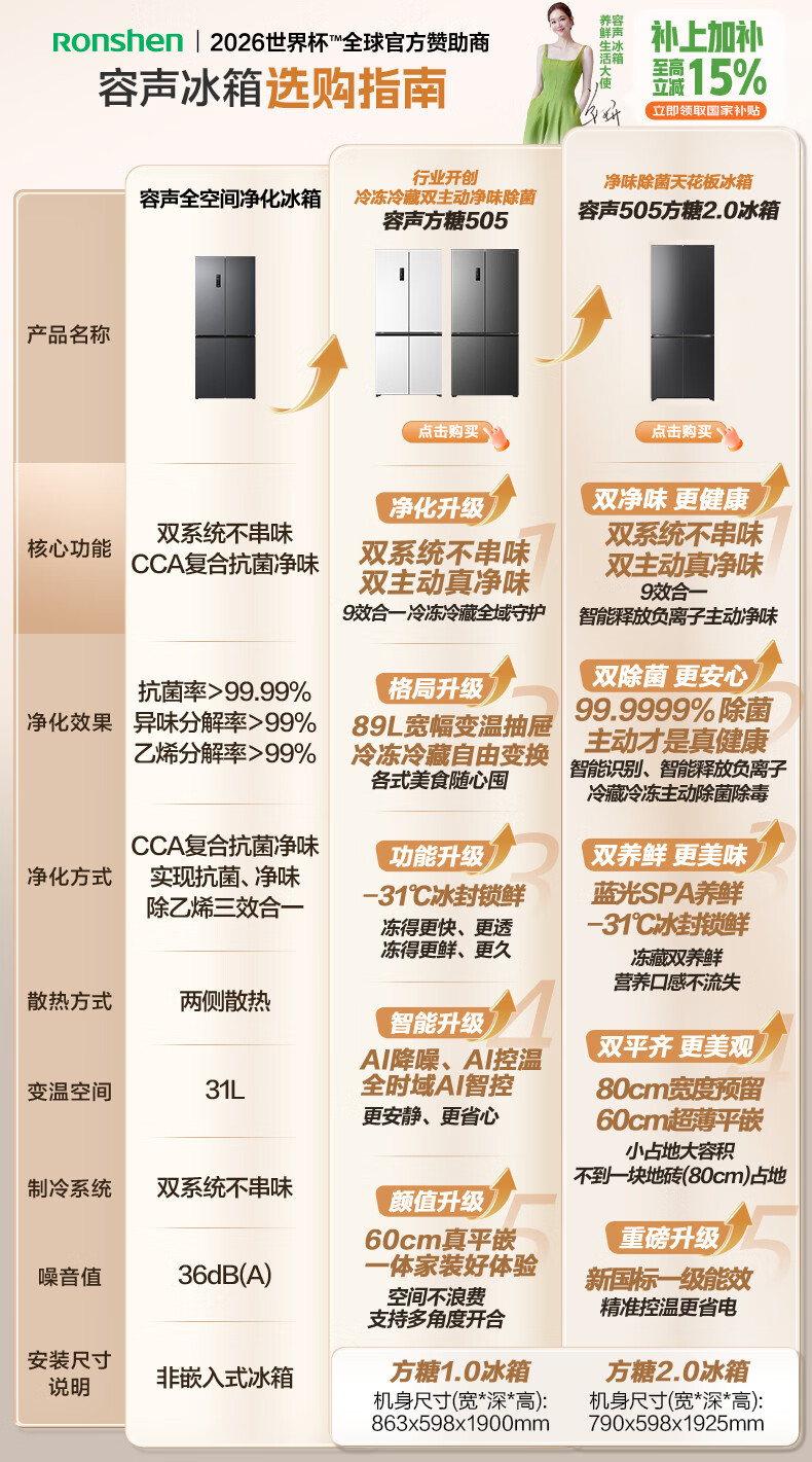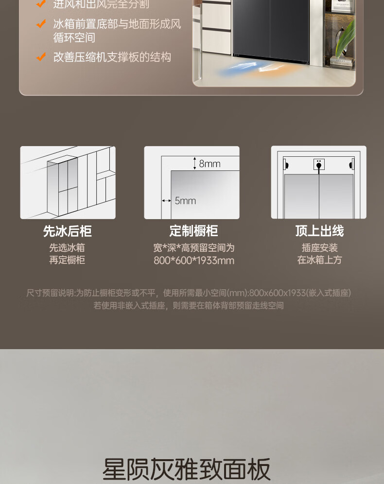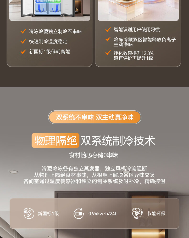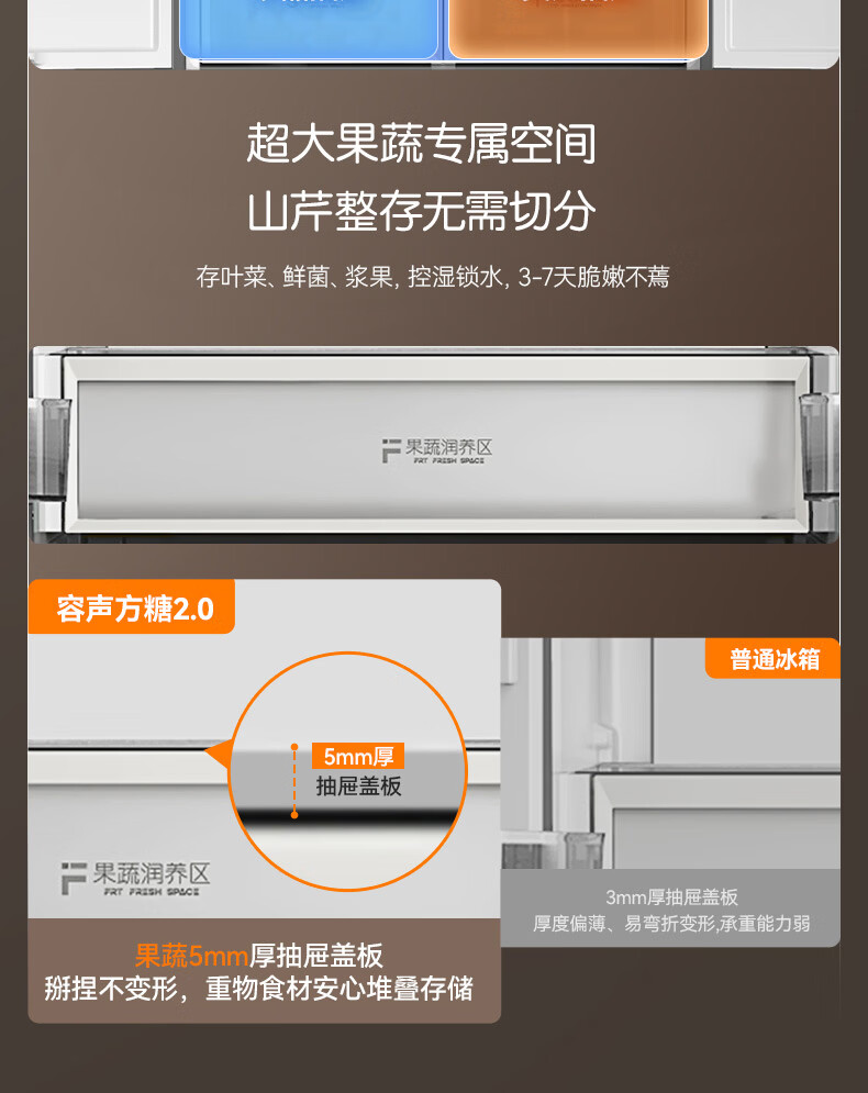 容声【方糖2.0】505L十字门冰箱双系统双循环超薄零嵌入式大容量一级能效BCD-505Q50CZLBD国家补贴