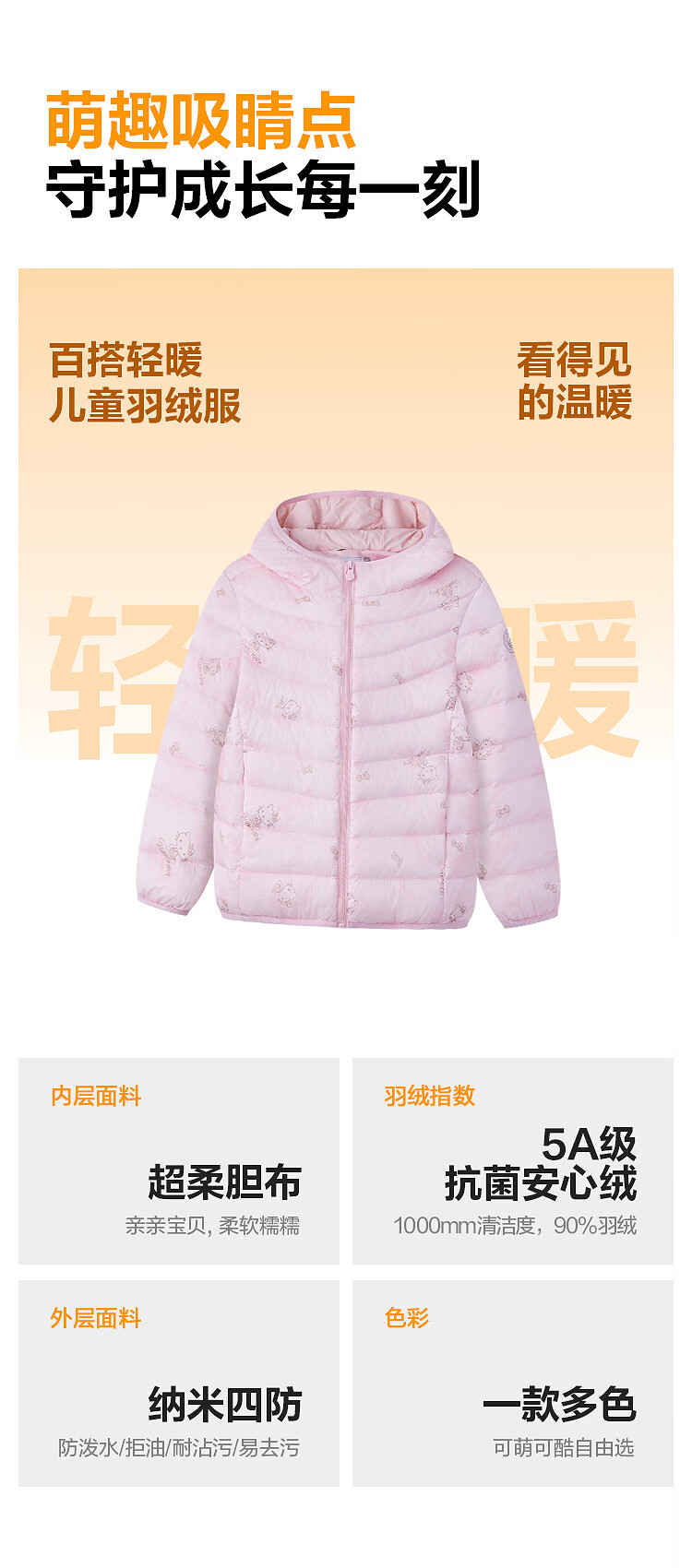 波司登26春季男女童轻薄羽绒服时尚百搭立领连帽四防外套T260135540