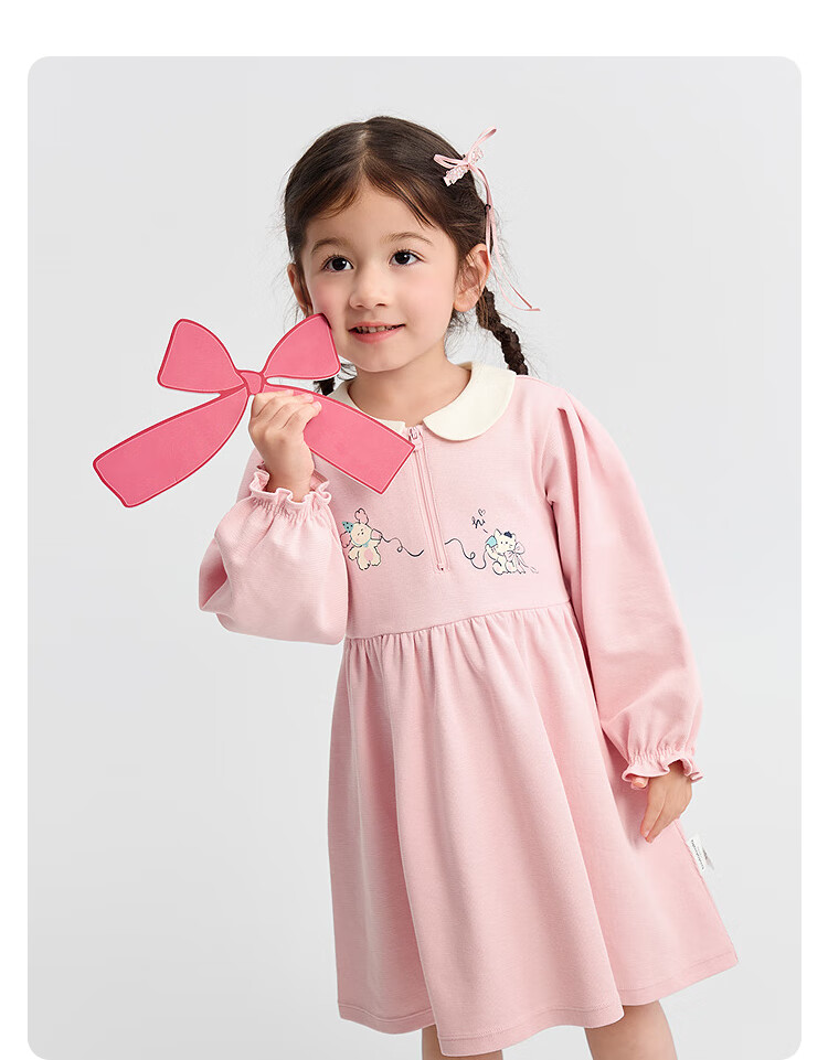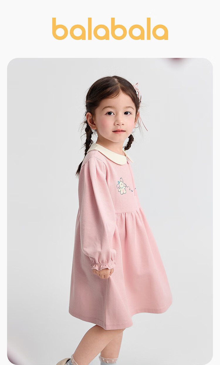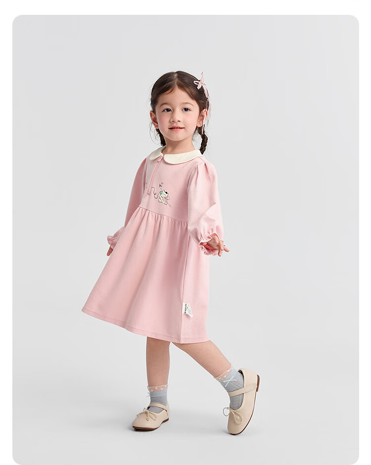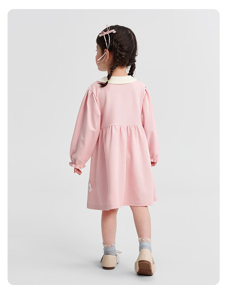 巴拉巴拉童装女童连衣裙学院风A字裙秋新款宝宝翻领裙子甜美 梦幻粉60316 110