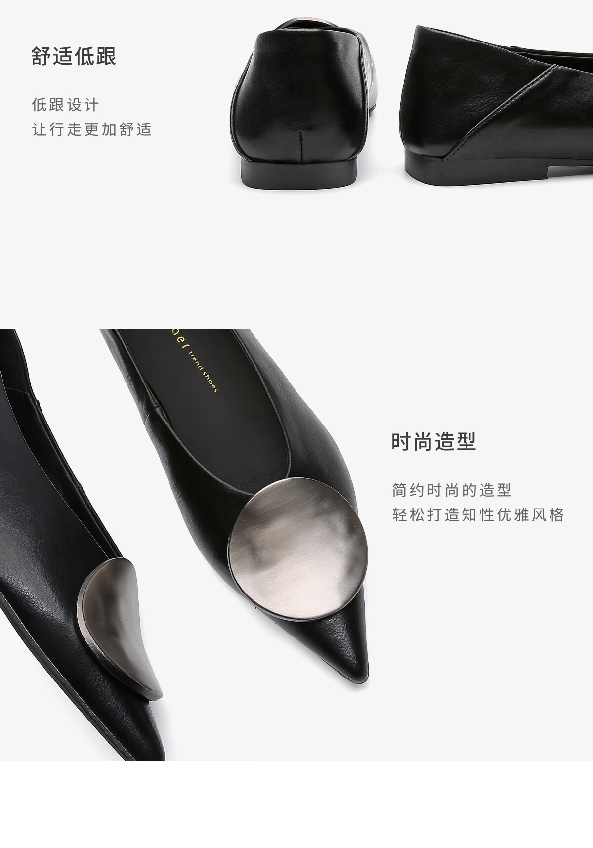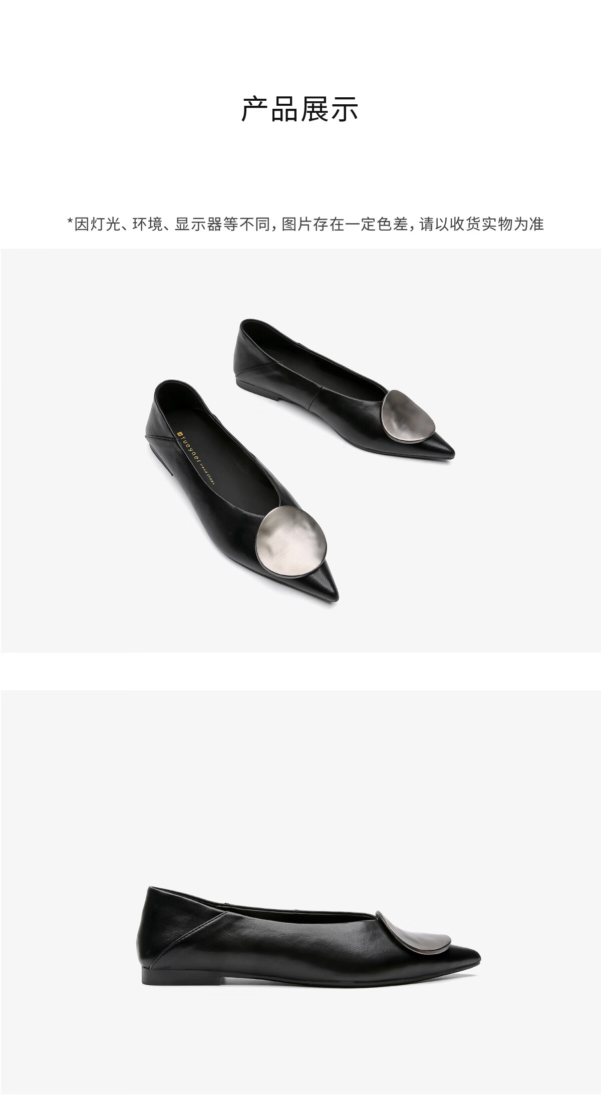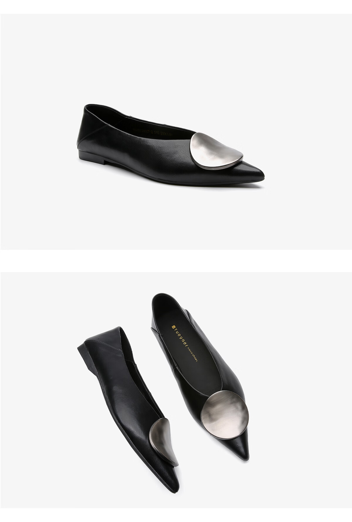 月芽儿2025年冬季季新款简约金属扣尖头鞋女浅口单鞋简约百搭瓢鞋 黑色01S 34