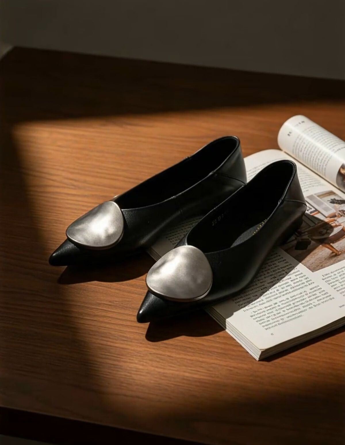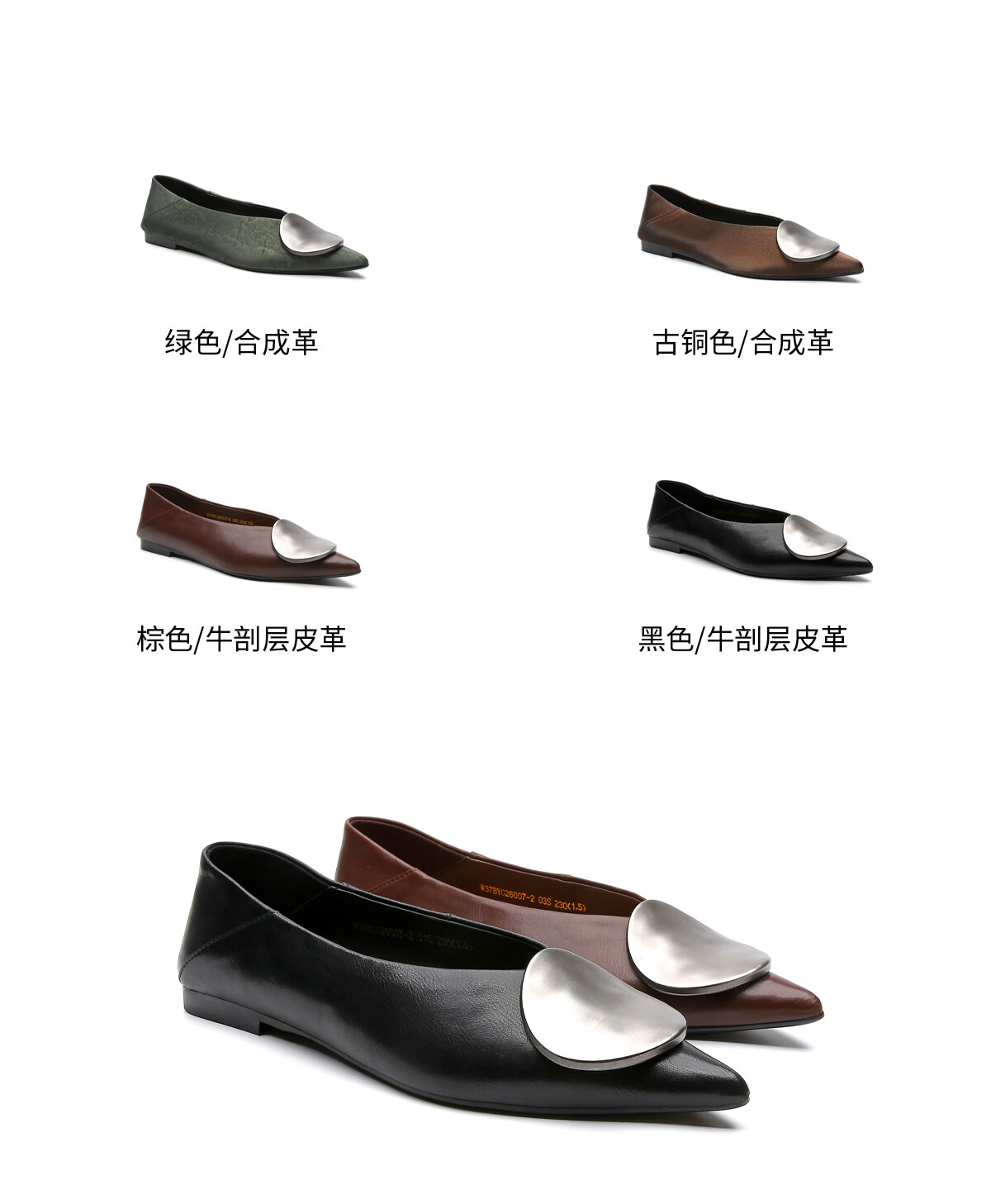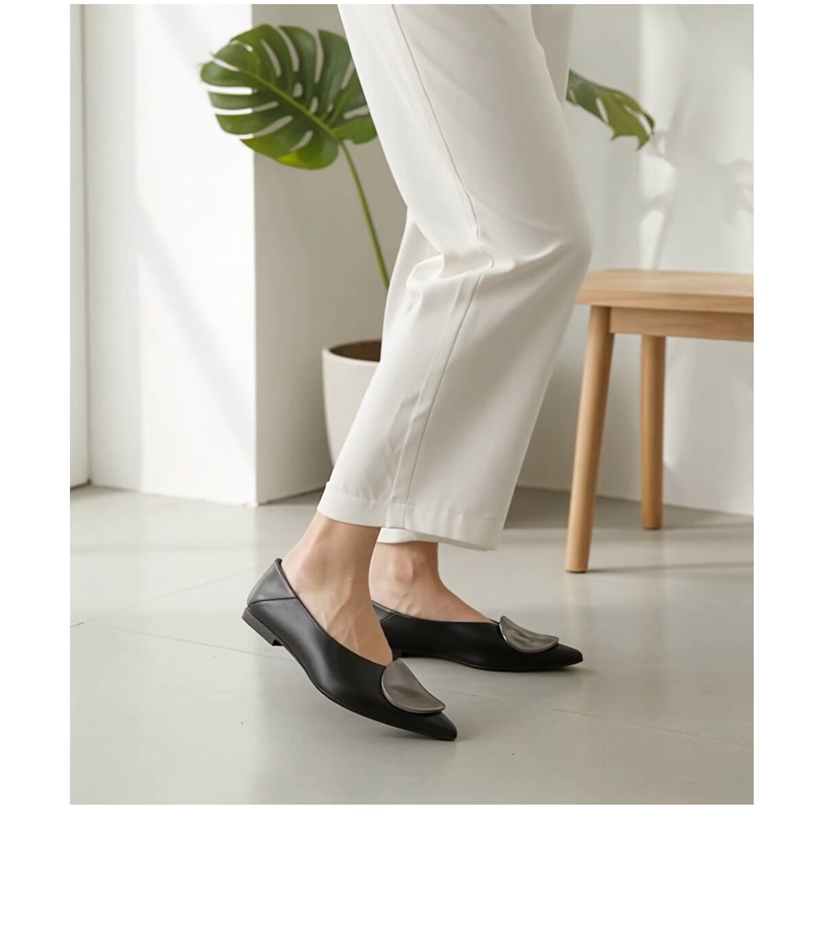 月芽儿2025年冬季季新款简约金属扣尖头鞋女浅口单鞋简约百搭瓢鞋 黑色01S 34