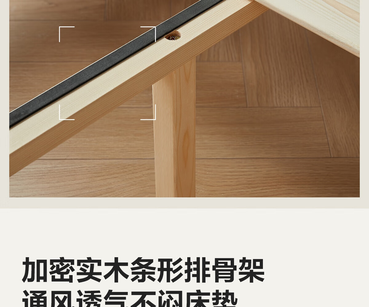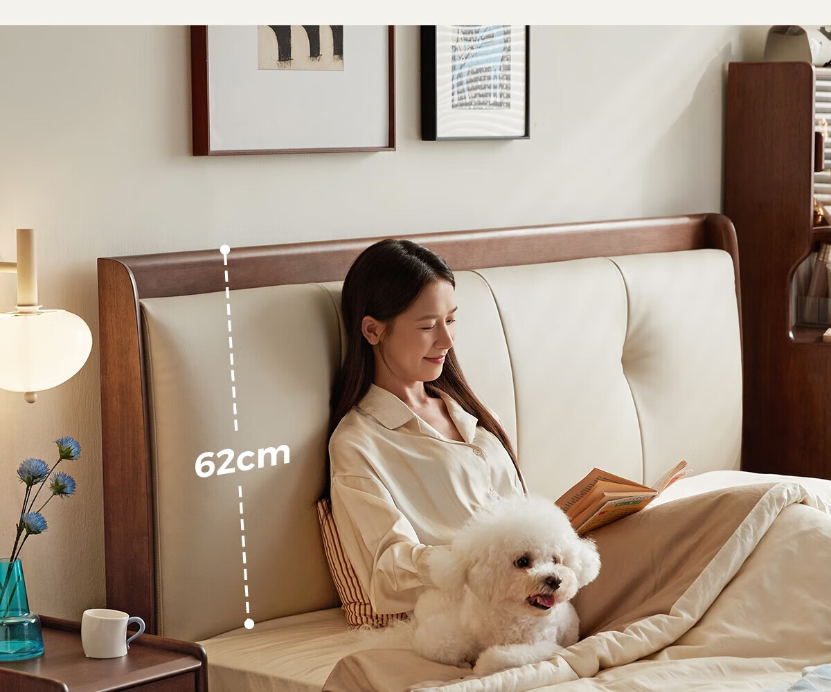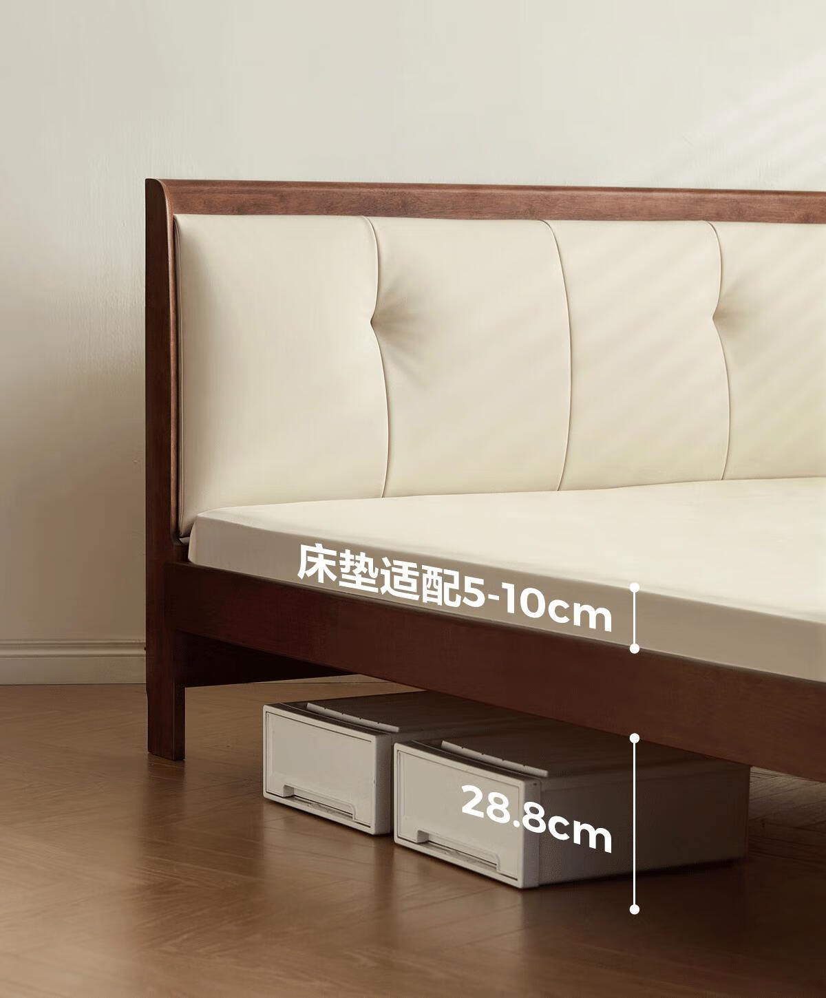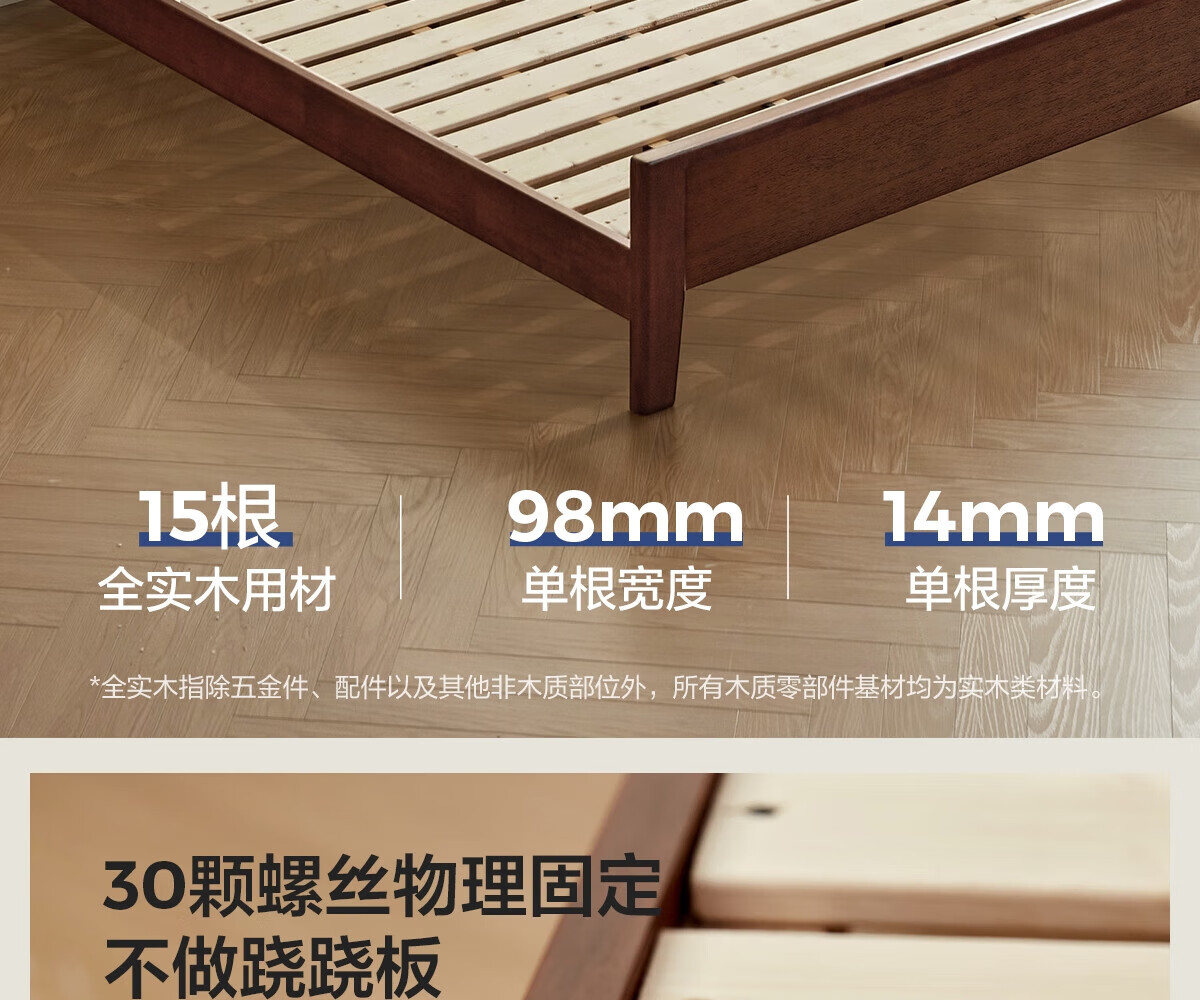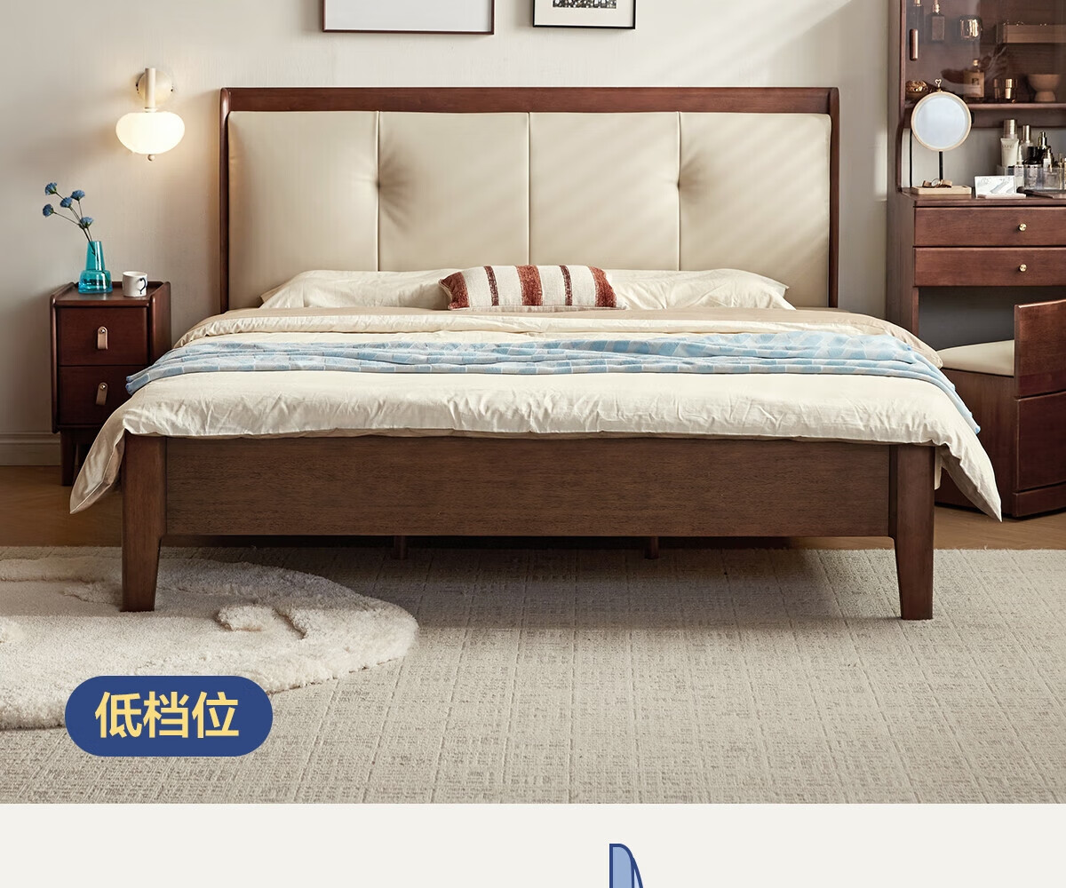 林氏家居复古实木床1米8双人床软包齐边床排骨架床架中古风菲林系列TG1A 三档可调节实木床 1.5x2米