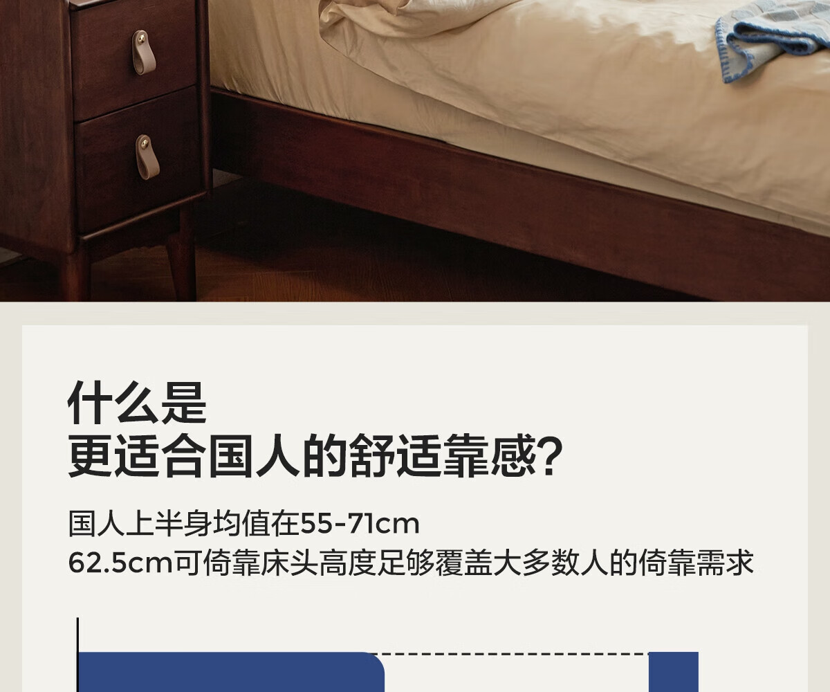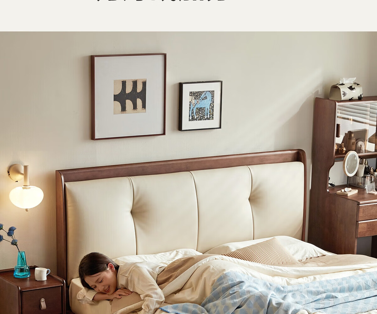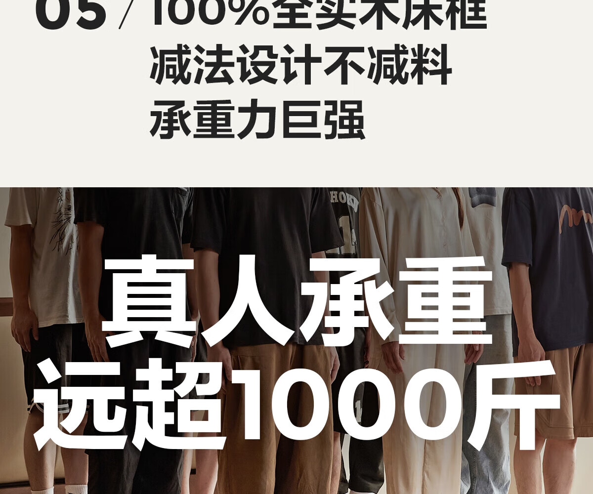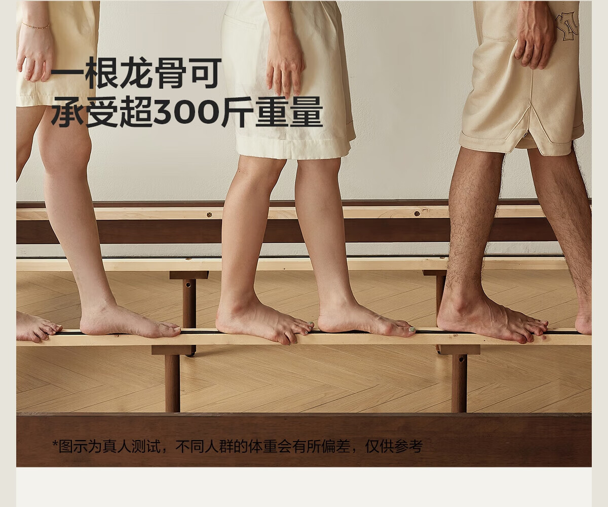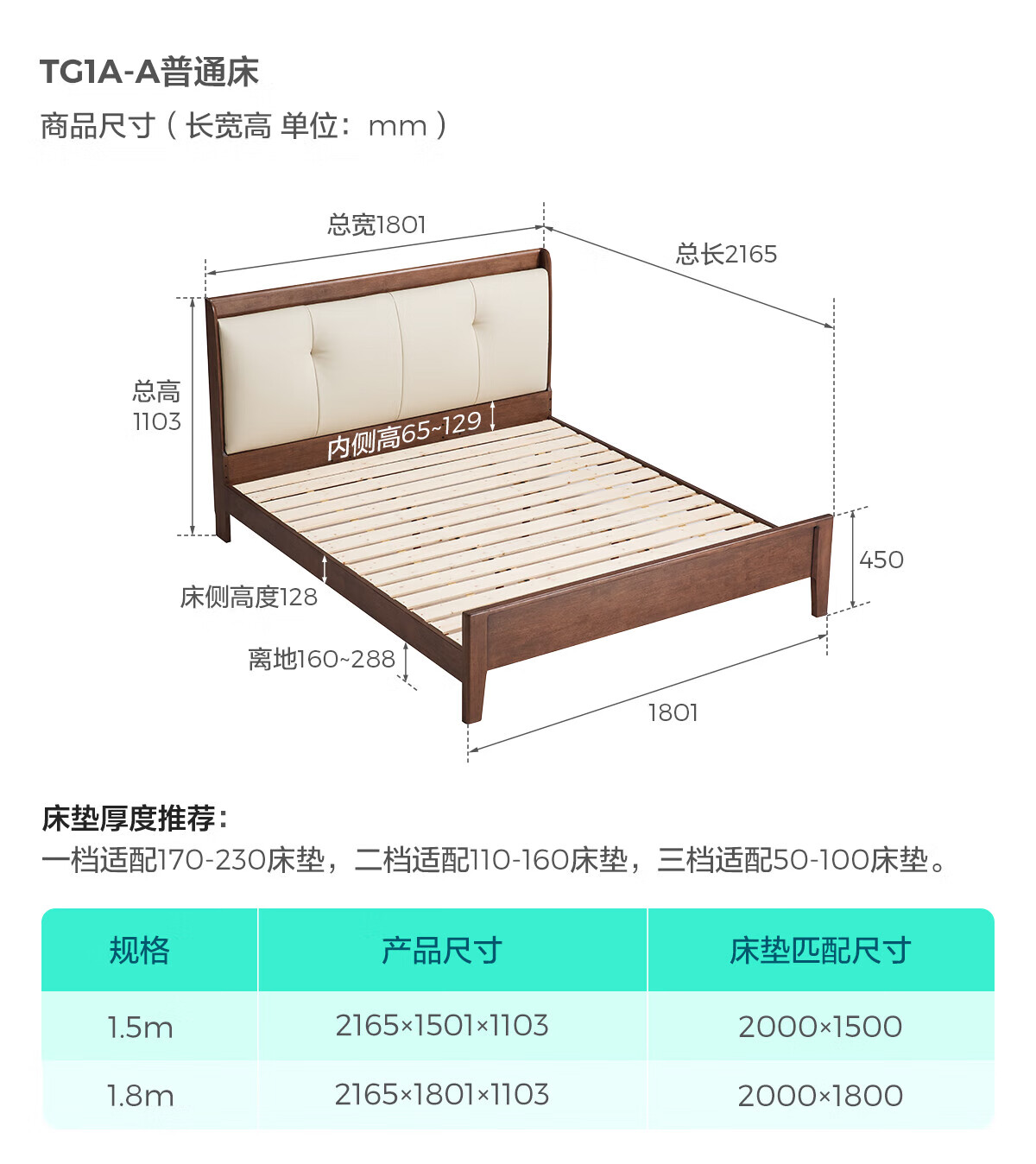 林氏家居复古实木床1米8双人床软包齐边床排骨架床架中古风菲林系列TG1A 三档可调节实木床 1.5x2米