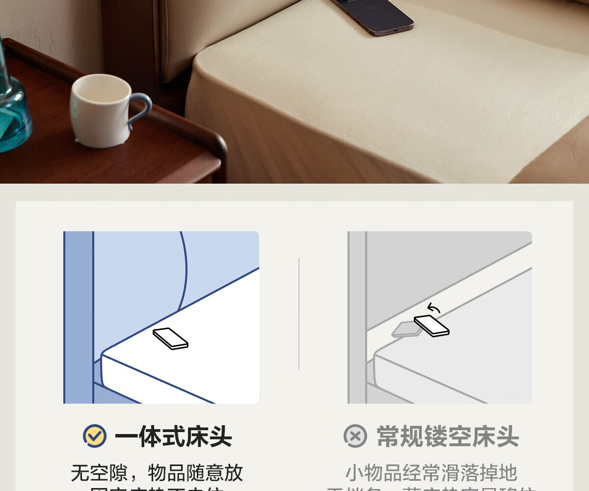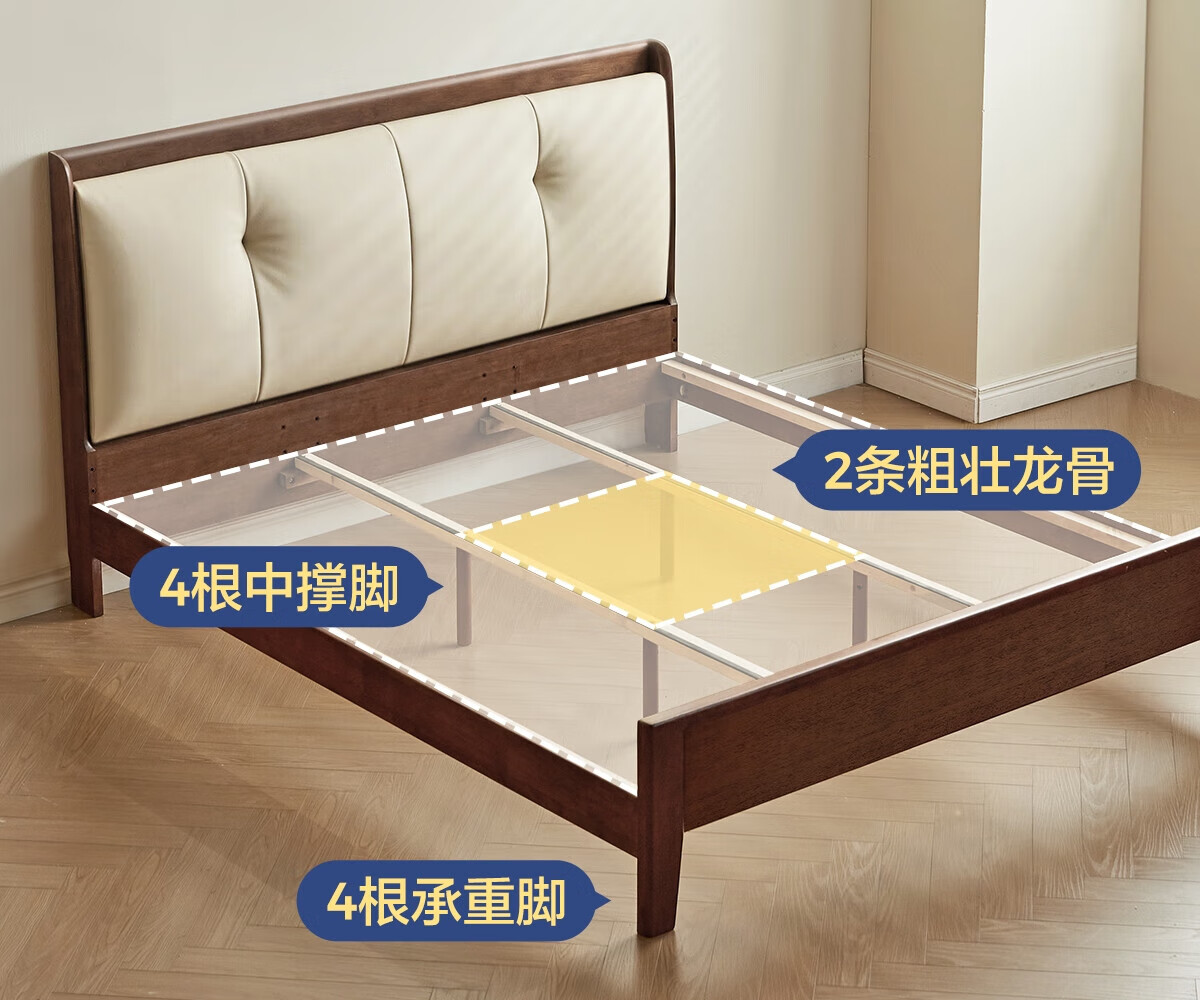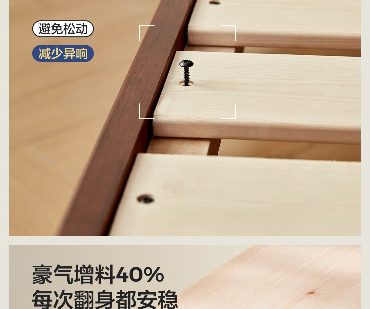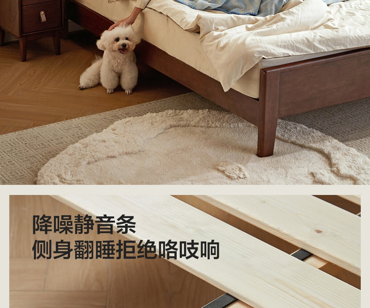 林氏家居复古实木床1米8双人床软包齐边床排骨架床架中古风菲林系列TG1A 三档可调节实木床 1.5x2米