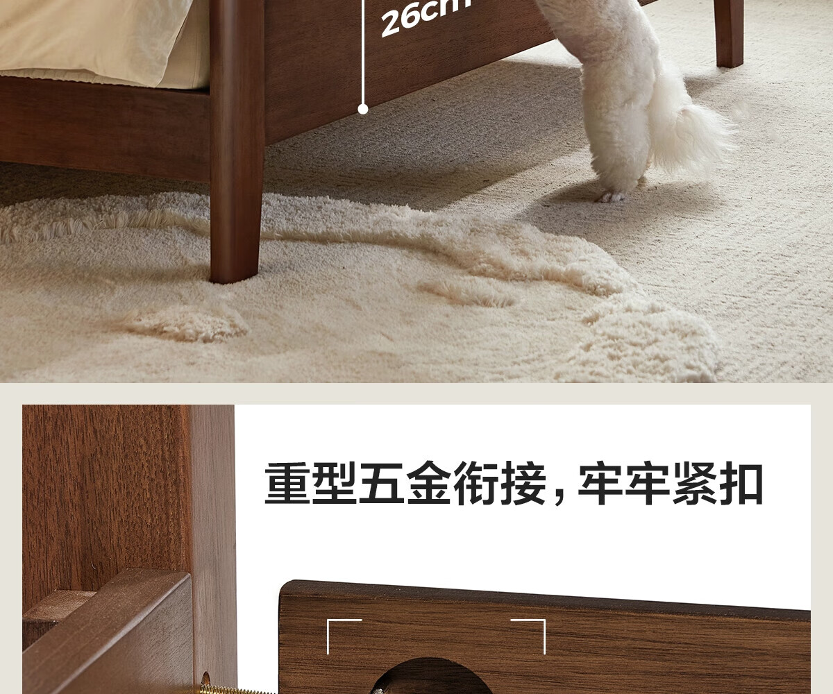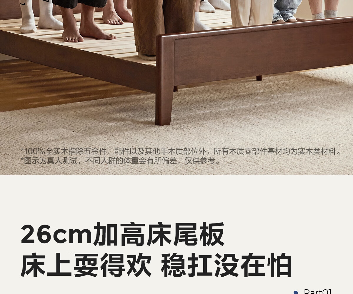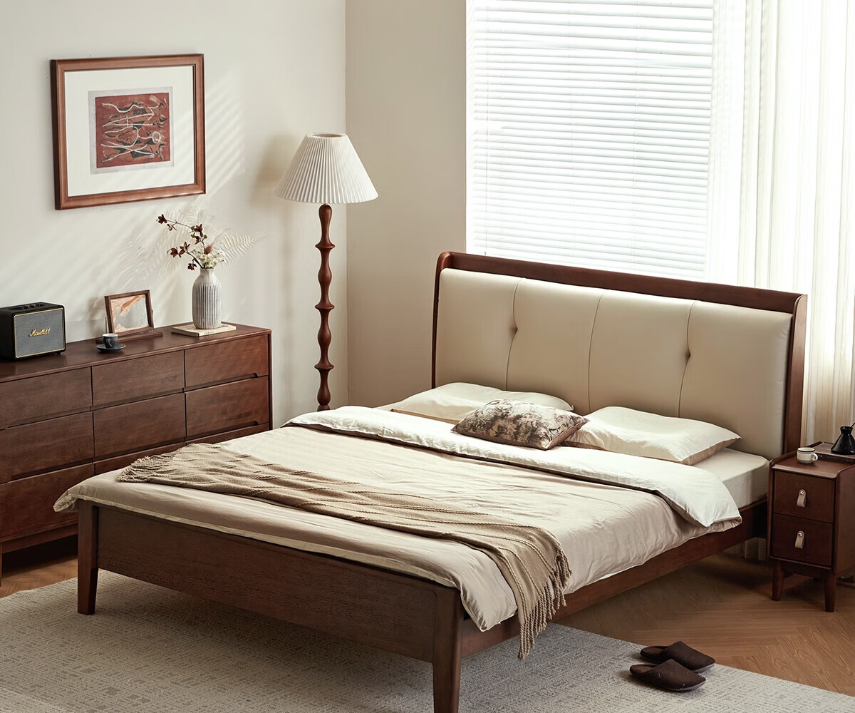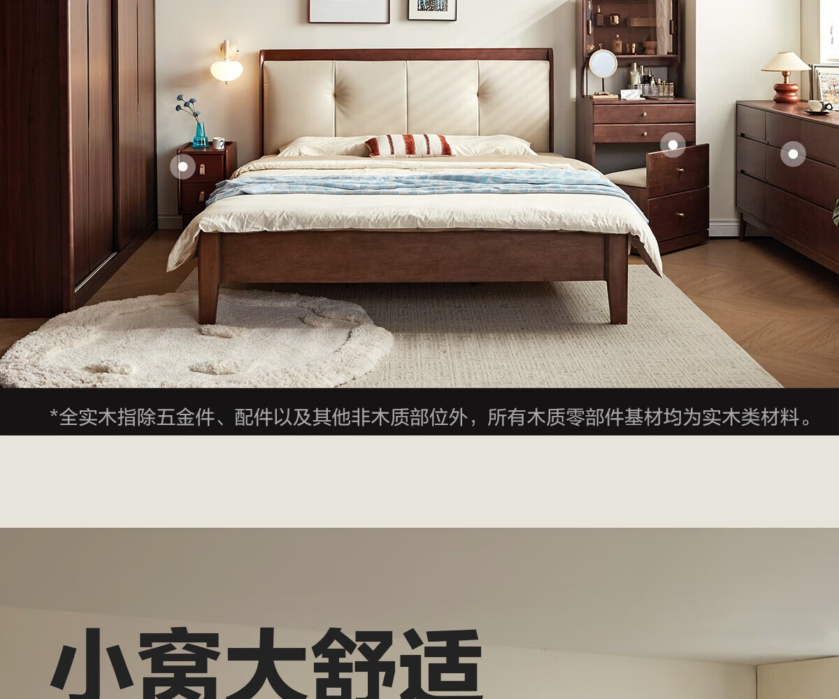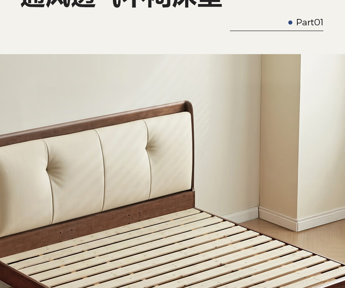 林氏家居复古实木床1米8双人床软包齐边床排骨架床架中古风菲林系列TG1A 三档可调节实木床 1.5x2米