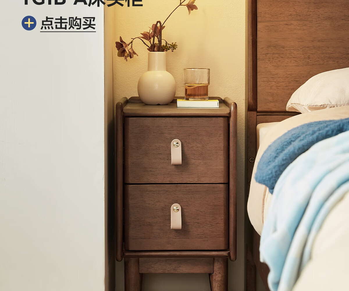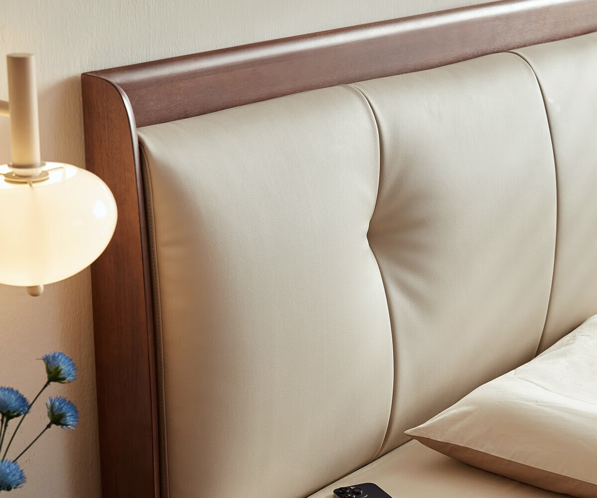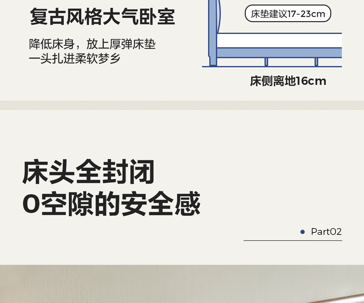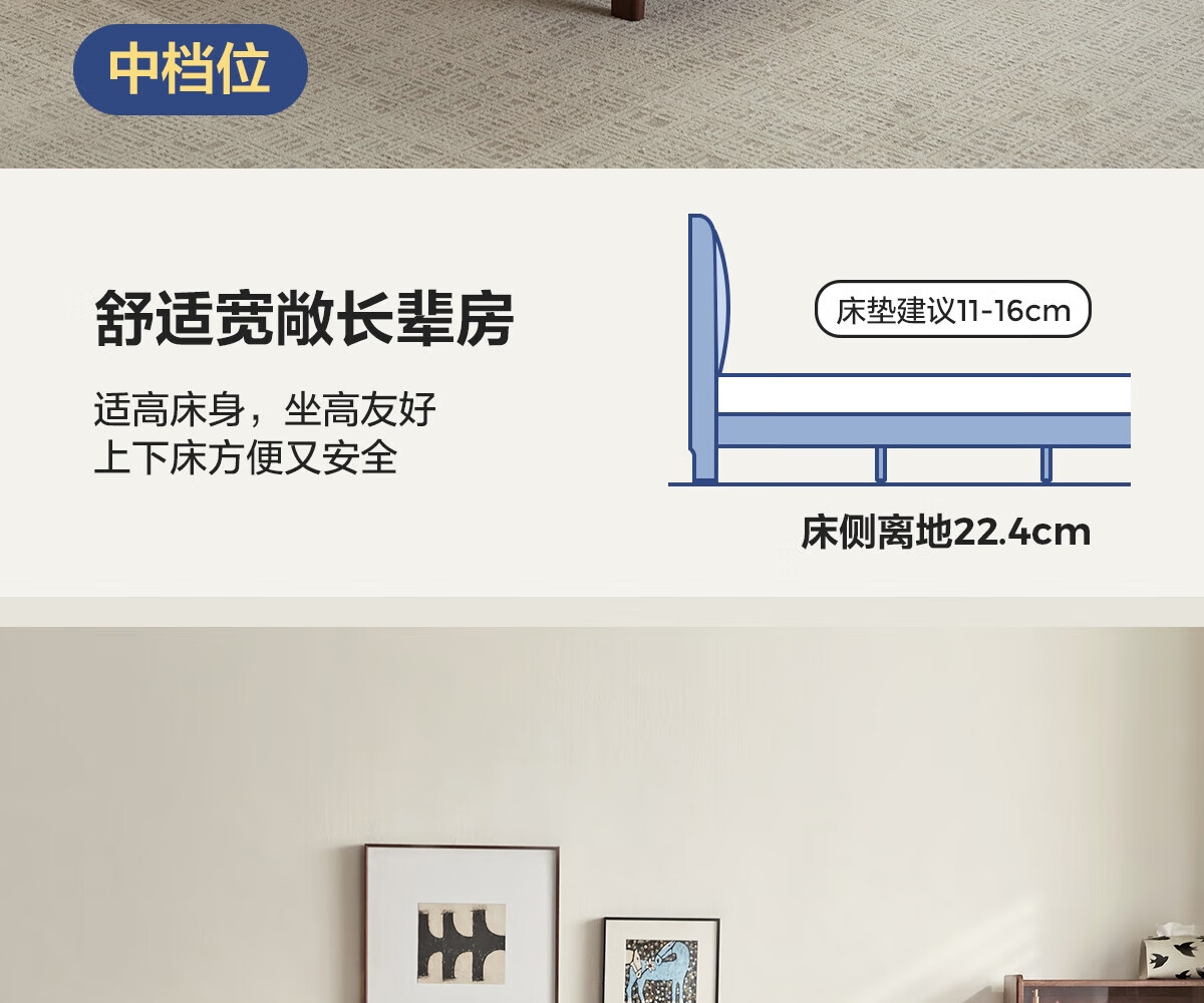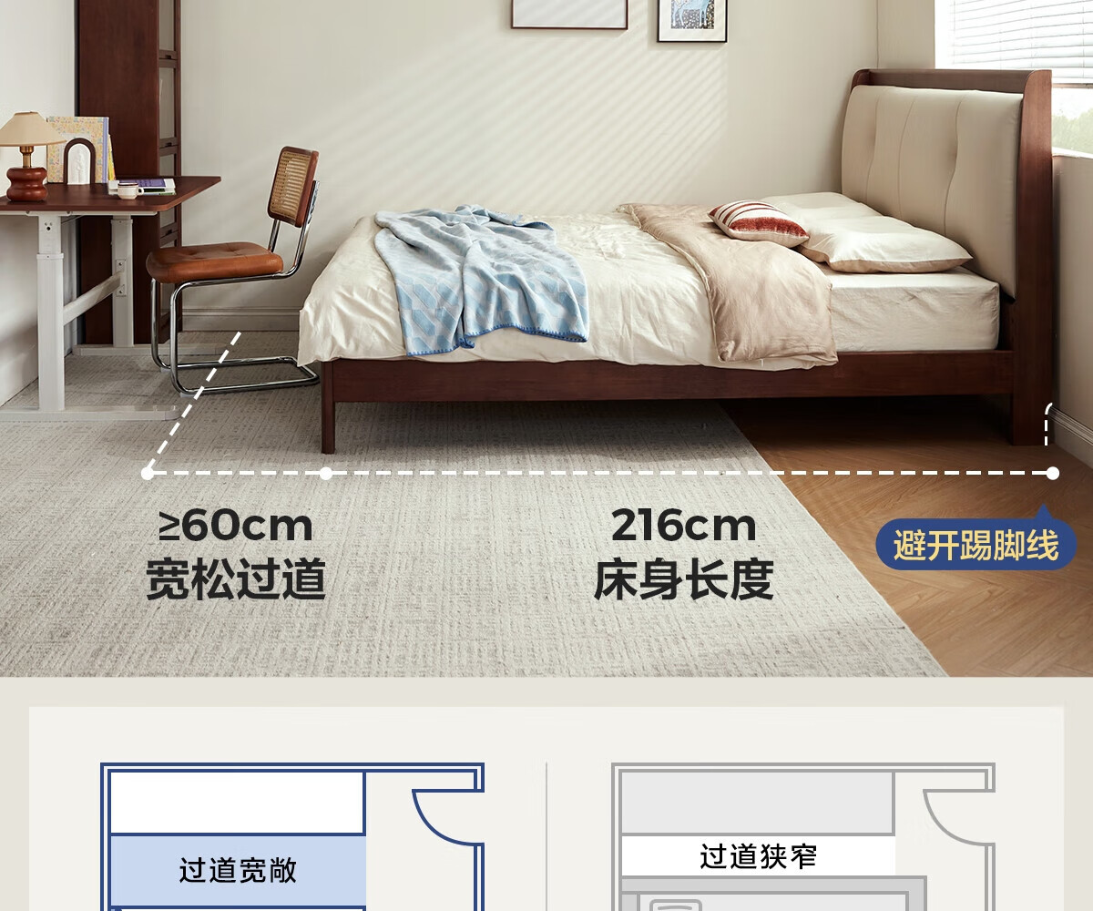 林氏家居复古实木床1米8双人床软包齐边床排骨架床架中古风菲林系列TG1A 三档可调节实木床 1.5x2米
