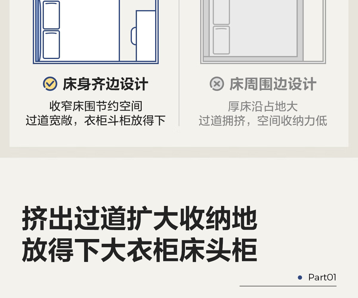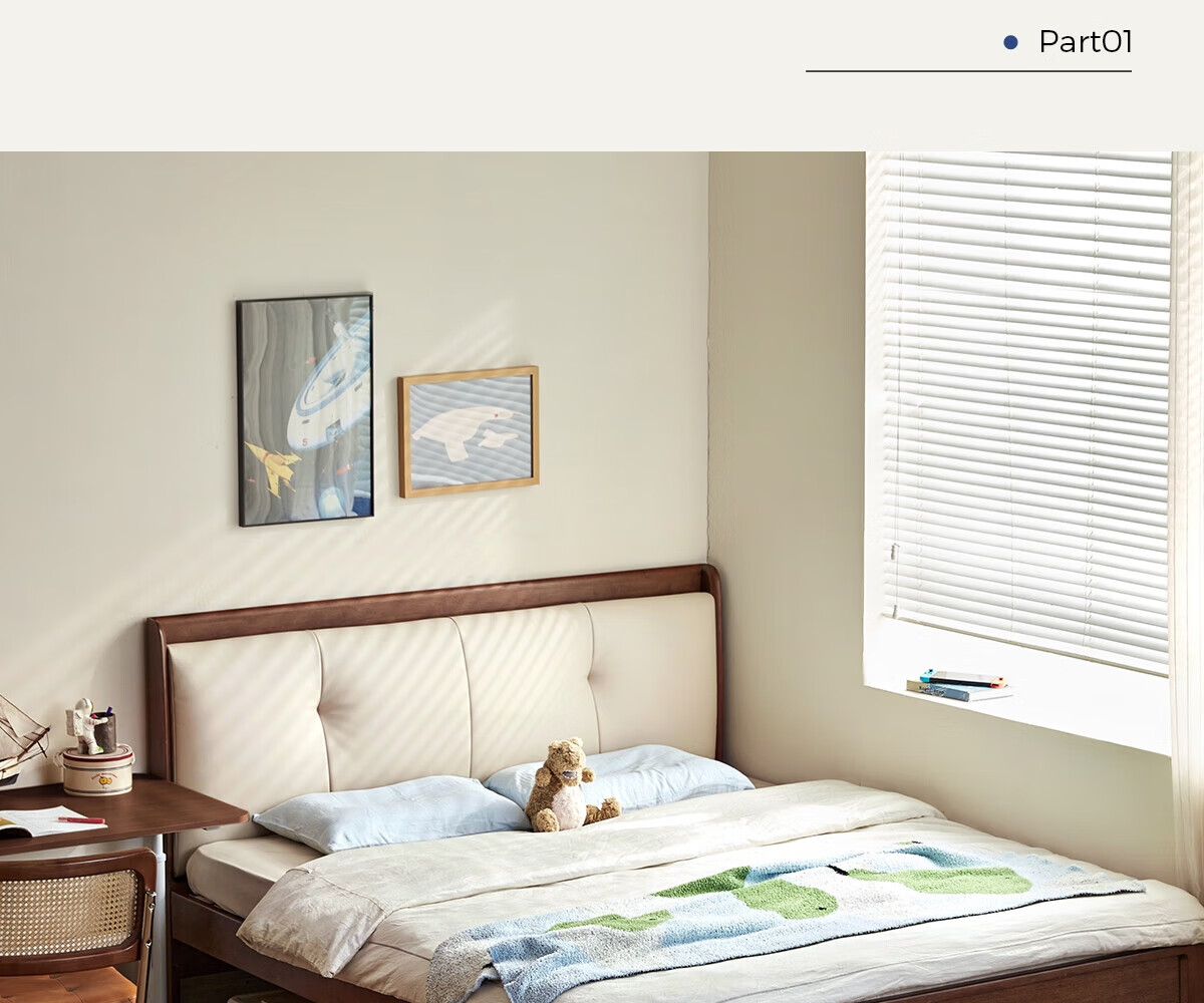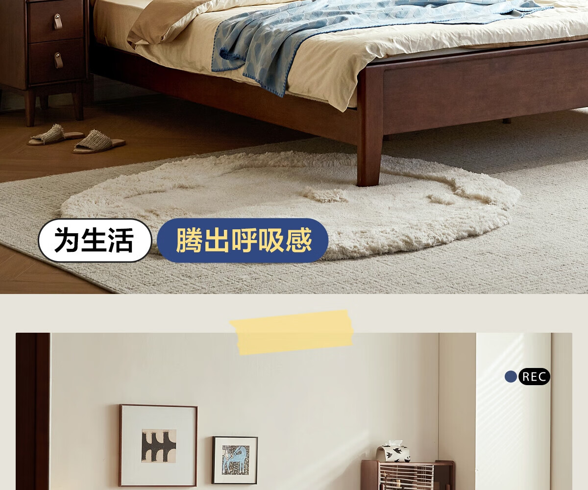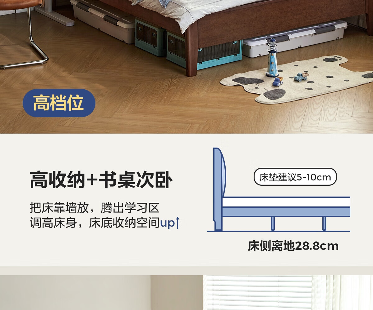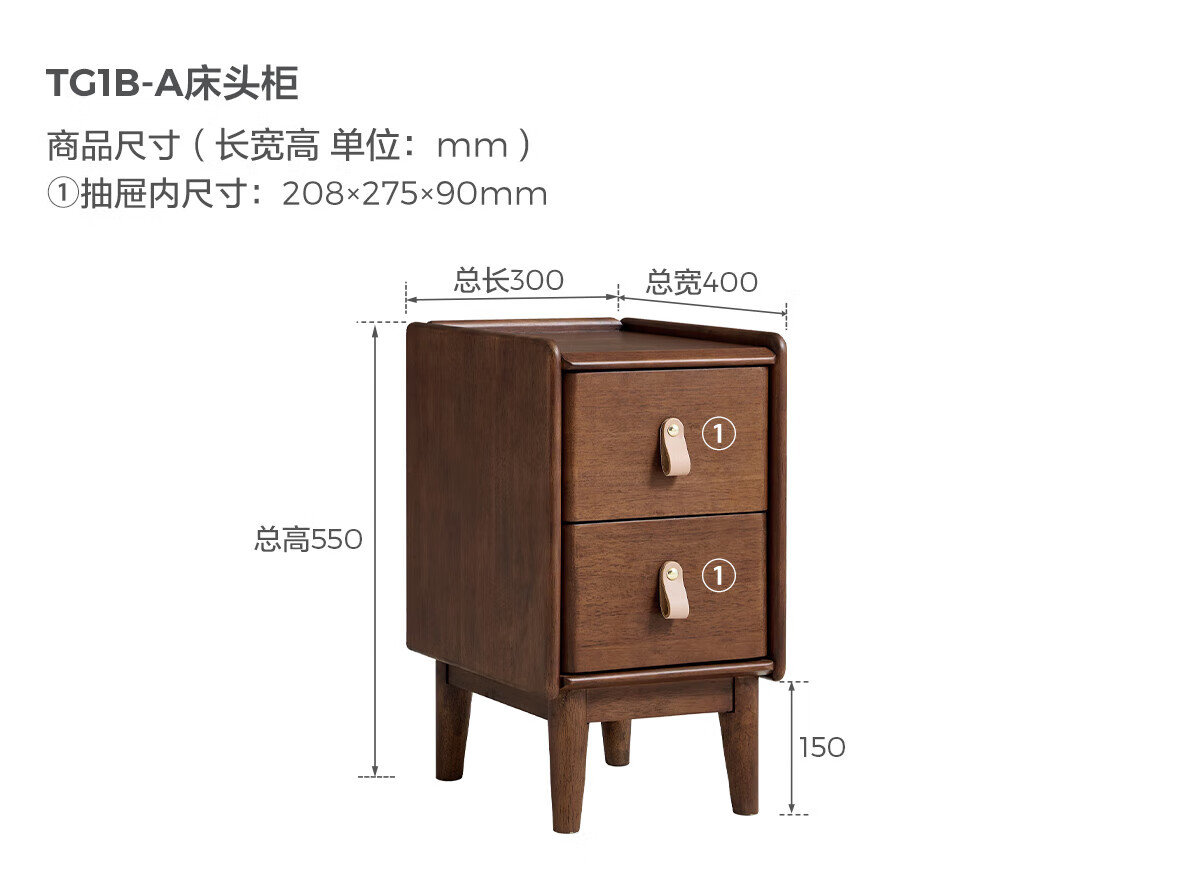 林氏家居复古实木床1米8双人床软包齐边床排骨架床架中古风菲林系列TG1A 三档可调节实木床 1.5x2米
