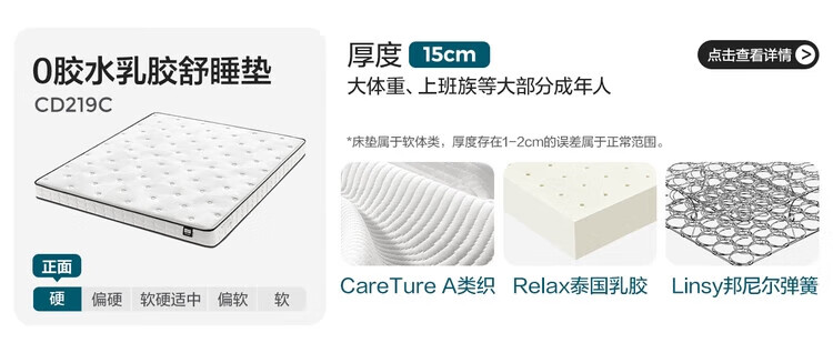 海马床垫天然乳胶3E环保椰棕弹簧席梦思床垫家用防螨护脊软硬床垫 独立弹簧+2cm乳胶(23cm) 1.2*2米