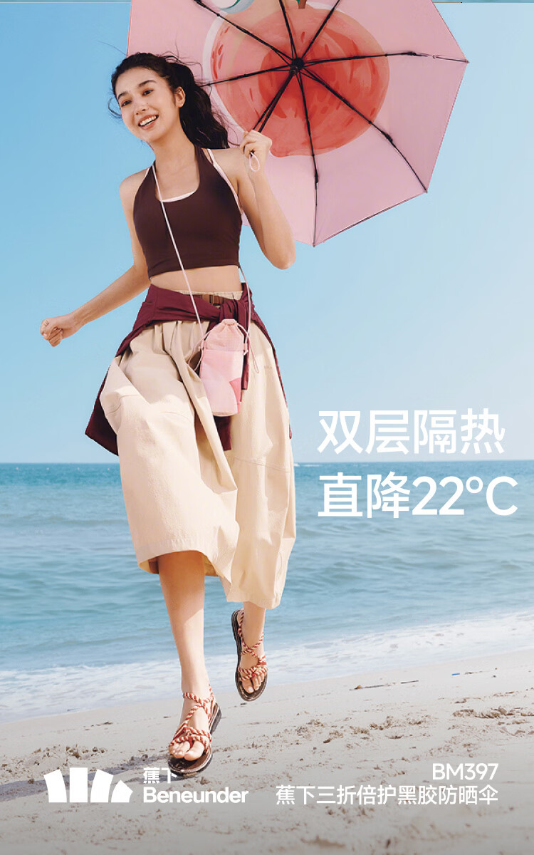 蕉下(beneunder)防紫外线遮阳伞三折倍护黑胶晴雨伞防晒伞野果BM397冰镇柠檬