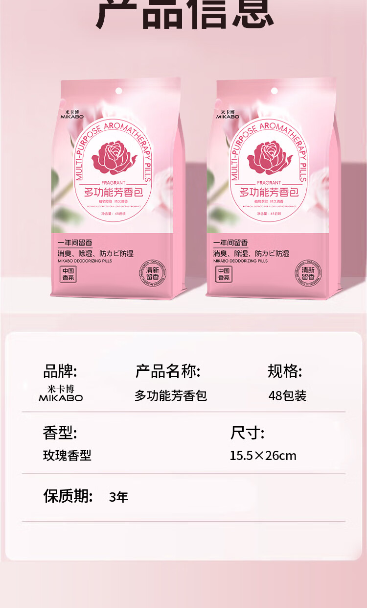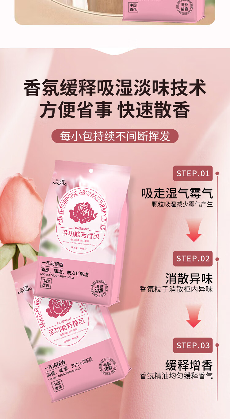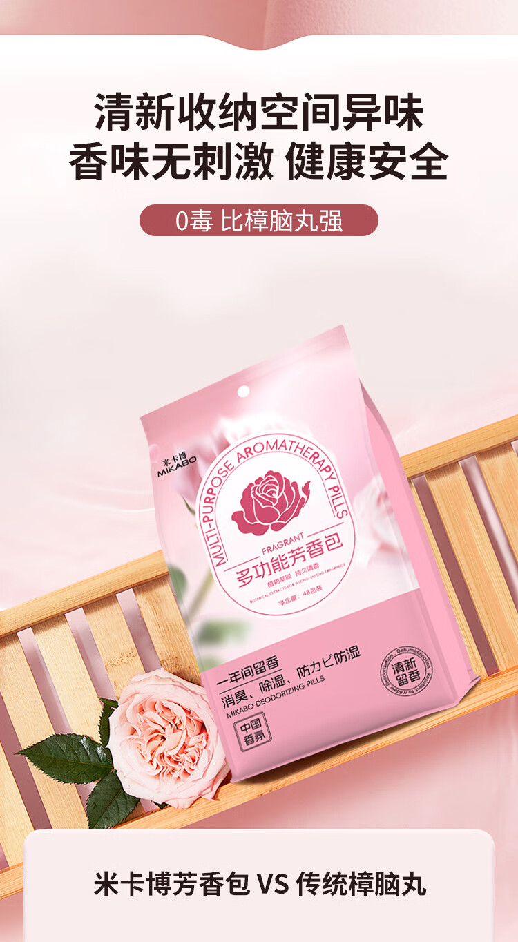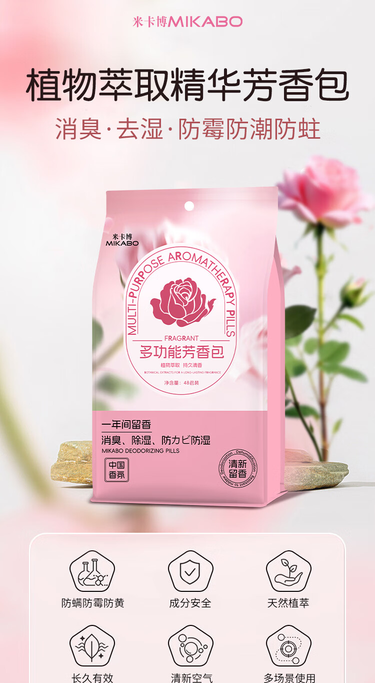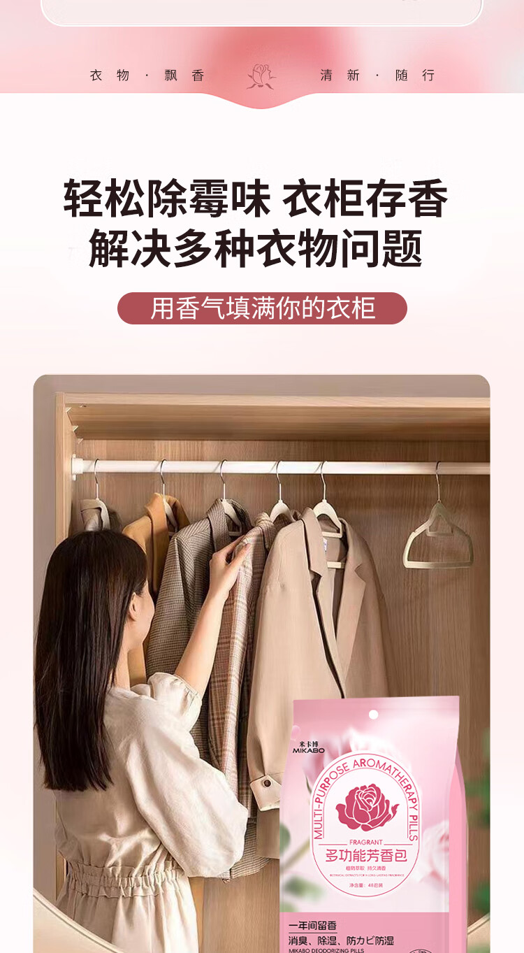 米卡博衣物香氛净化除味防潮除螨虫净味空间衣柜除味香氛包 48小包—1袋【防霉香氛包】