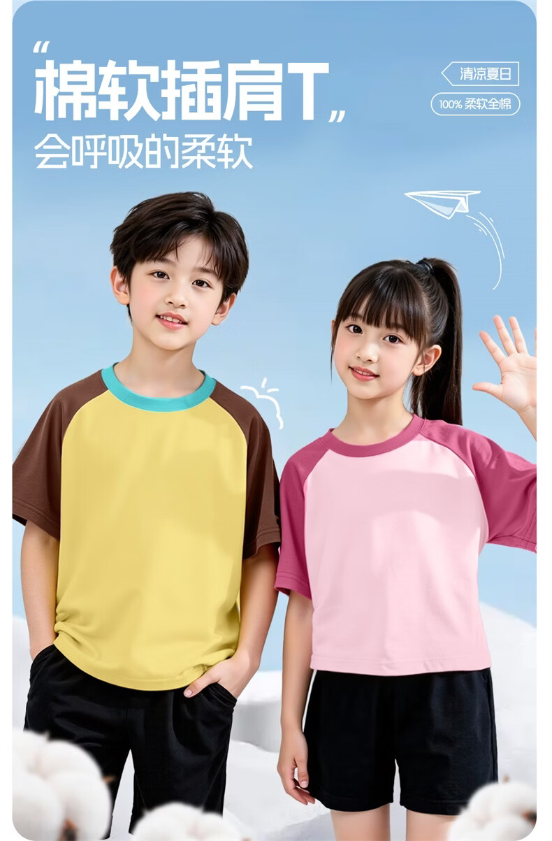 迪士尼(Disney)童装儿童套装2026夏季新款薄款舒适纯棉女童短袖T恤宽松男童夏装 迪宇航星奶青+纯色黑 140 【推荐体重:53-67斤】