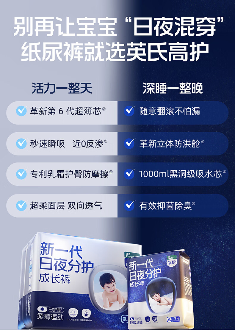 英氏(Engnice)高护婴儿纸尿裤新生儿尿不湿超薄透气日用夜用分护宝宝成长裤尿裤 【L码纸尿裤-试用】日护4片+夜护2片