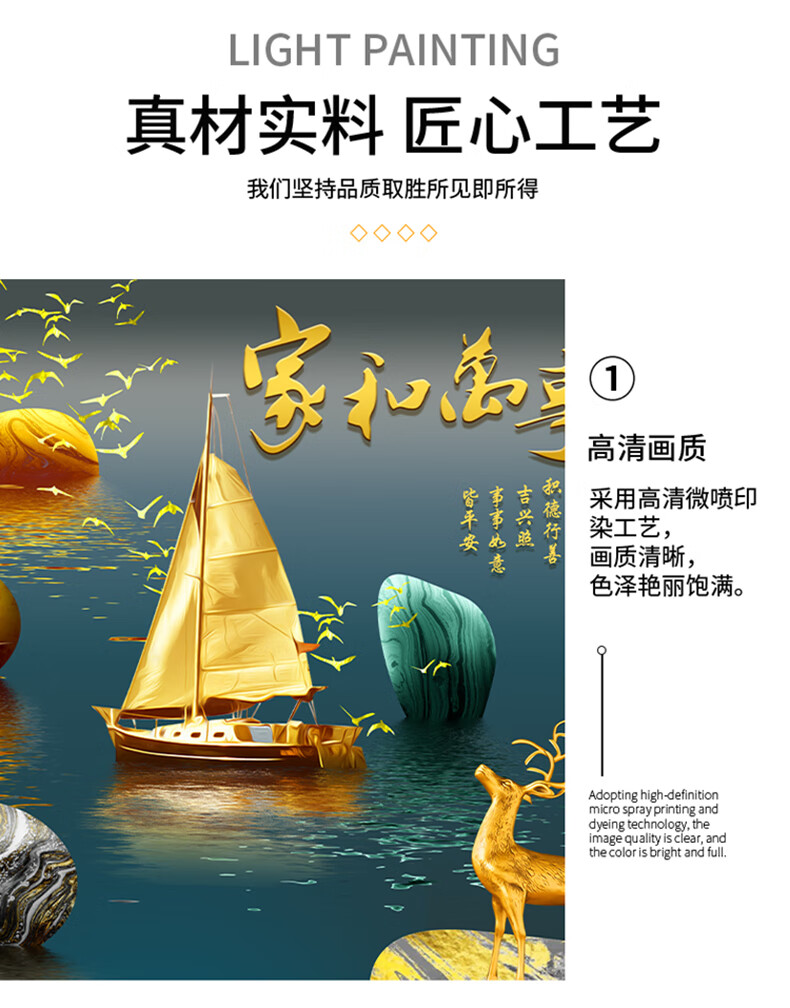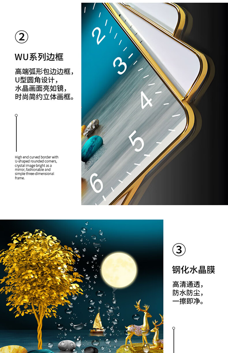 中式风景中堂画客厅装饰画大气山水农村五联山河图背景墙挂画字画 J10 90*180*1 45*180*4 靓丽水晶面+铝合金金框