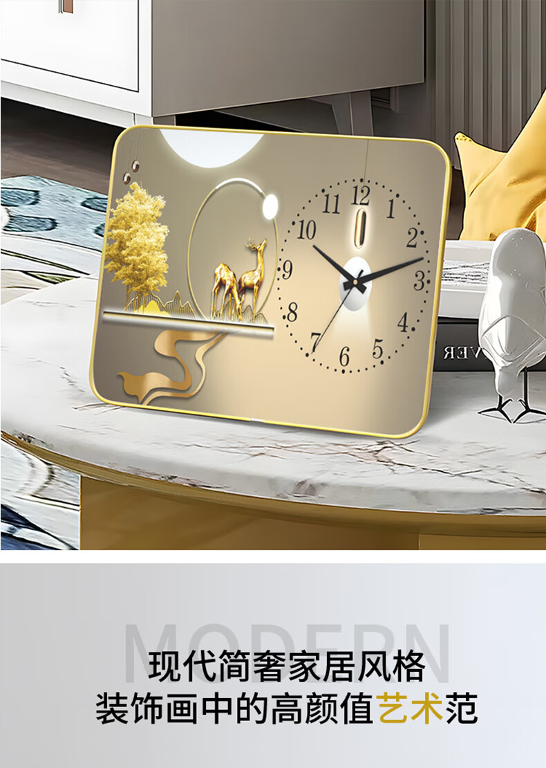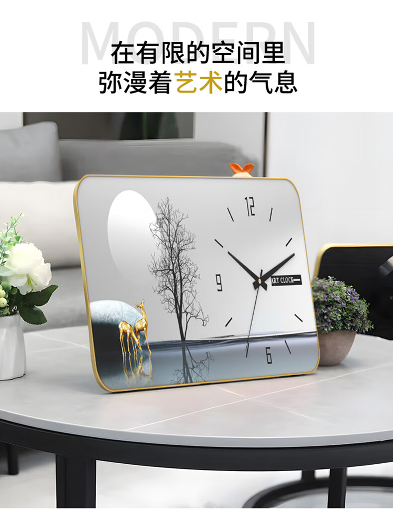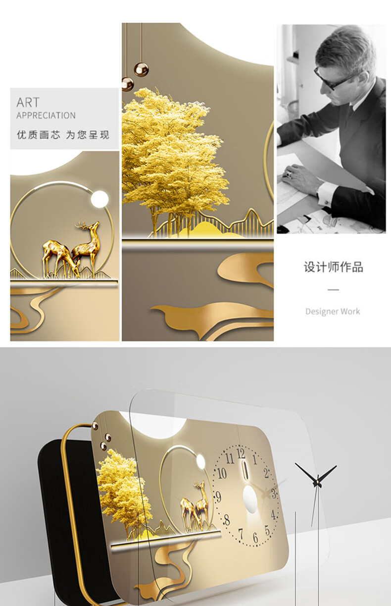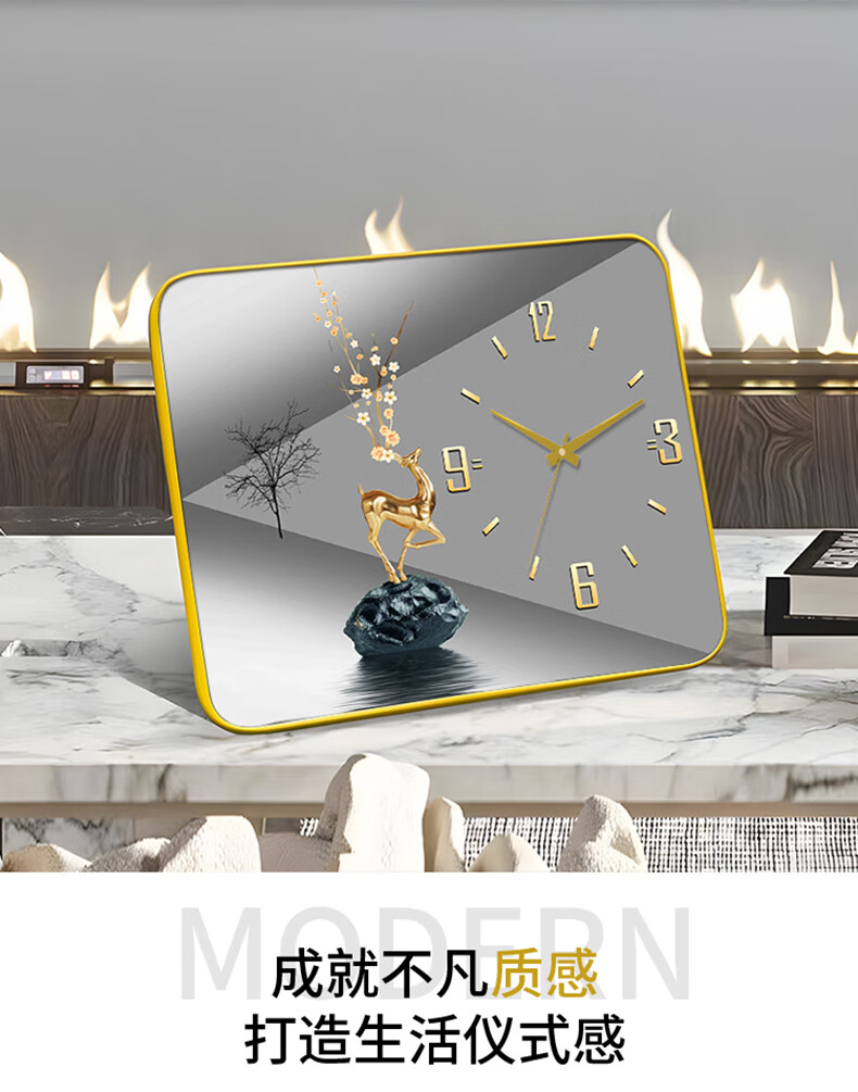 映火钟表客厅家用台式桌面时钟客厅轻奢摆放大气座钟简约摆钟钟表摆件 福鹿望月 20*30厘米【座钟台式】