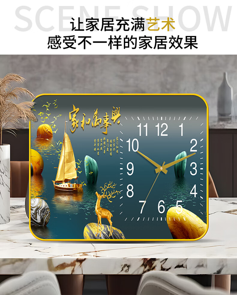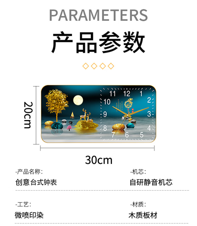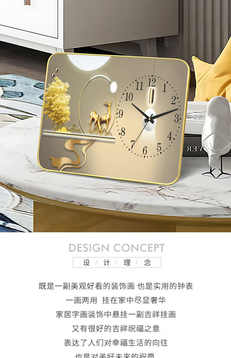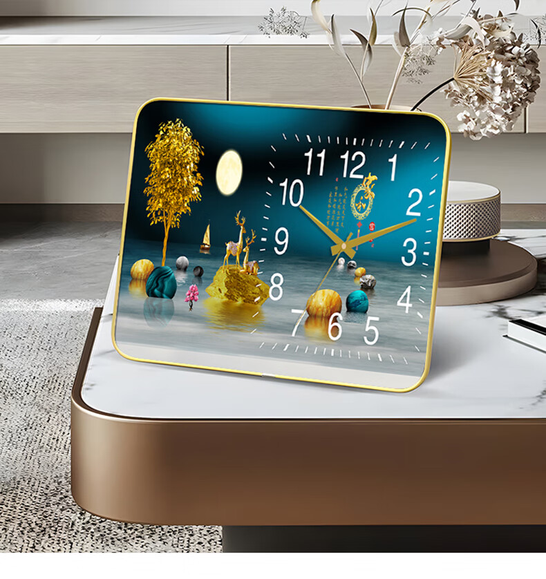映火钟表客厅家用台式桌面时钟客厅轻奢摆放大气座钟简约摆钟钟表摆件 福鹿望月 20*30厘米【座钟台式】