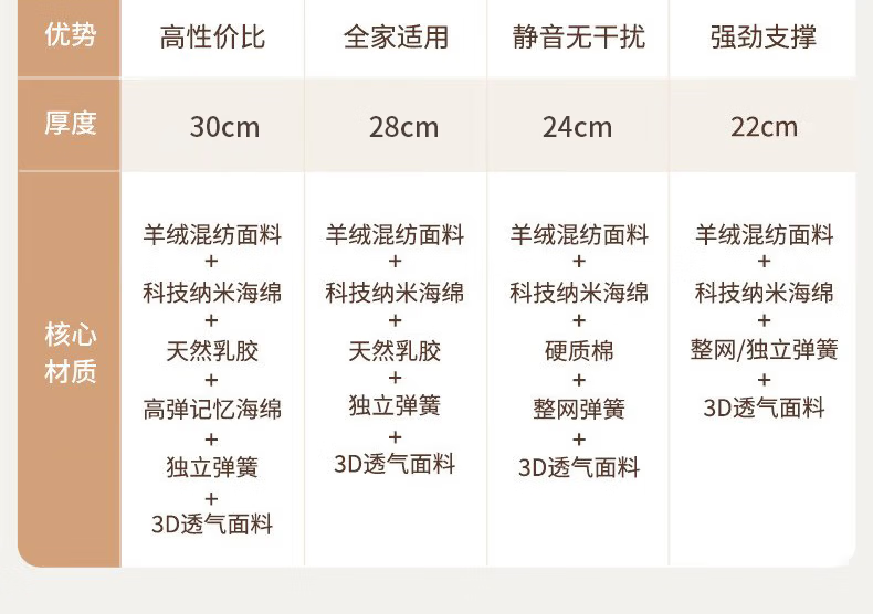 城市爱情喜临门床垫舒脊硬质绵轻音独袋弹簧床垫子 大白H 1.8x2米 偏硬