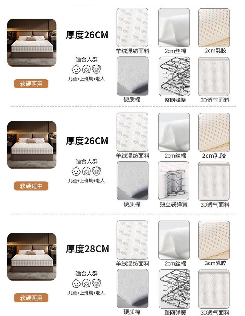 希沐愢希尔顿席梦思天然乳胶椰棕整网弹簧独立弹簧五星级酒店双面加厚 【标准房舒适款】22cm加固边撑独袋弹簧 1.2x2.0米