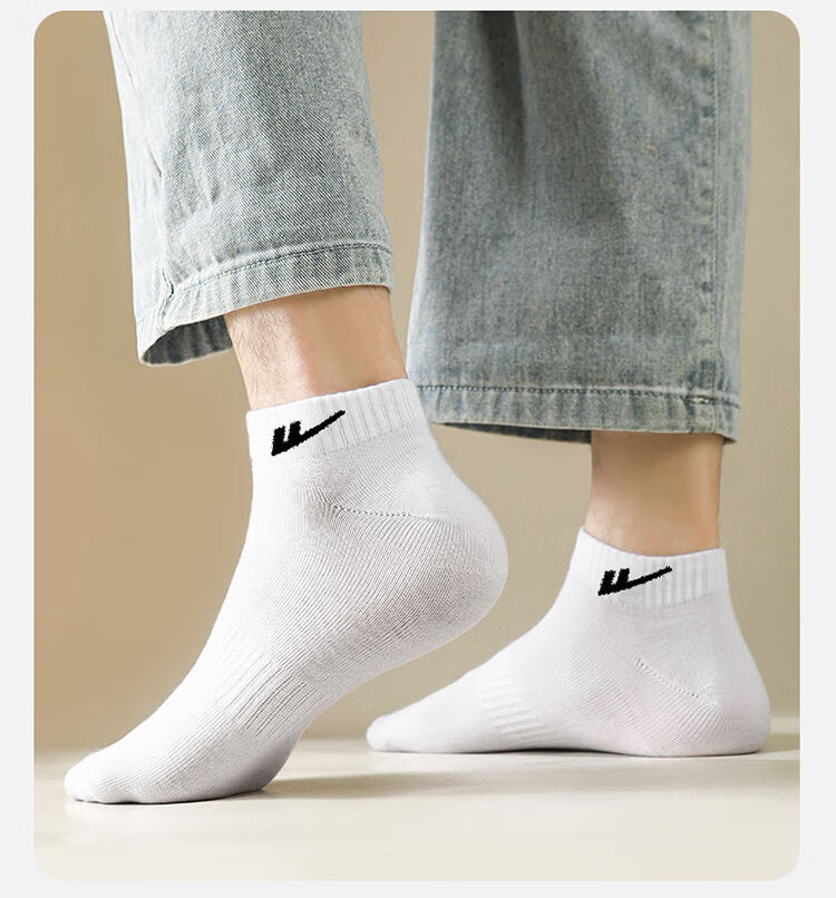 回力男士袜子新款春秋纯棉运动短袜吸汗透气防臭男袜短款低帮船袜 装:白色 5双 均码 Warrior回力:短筒袜