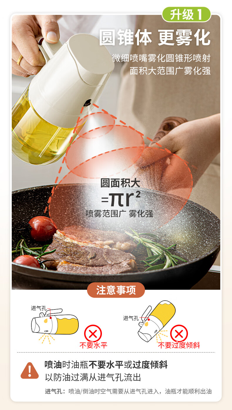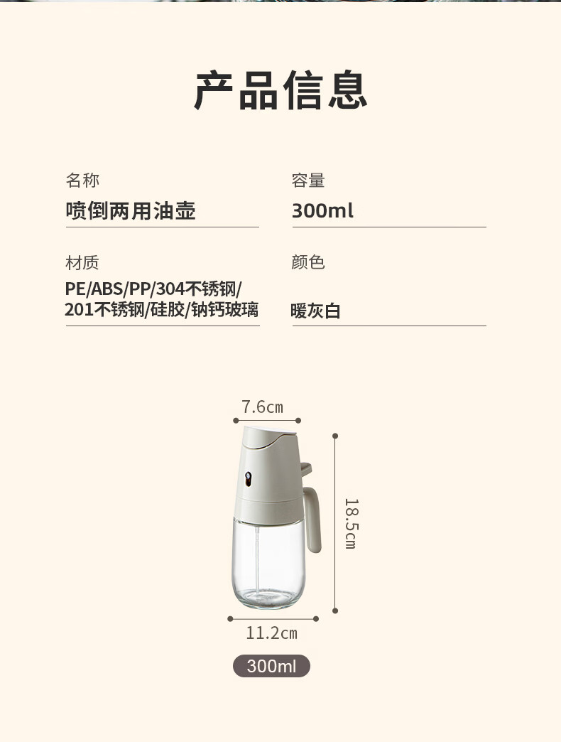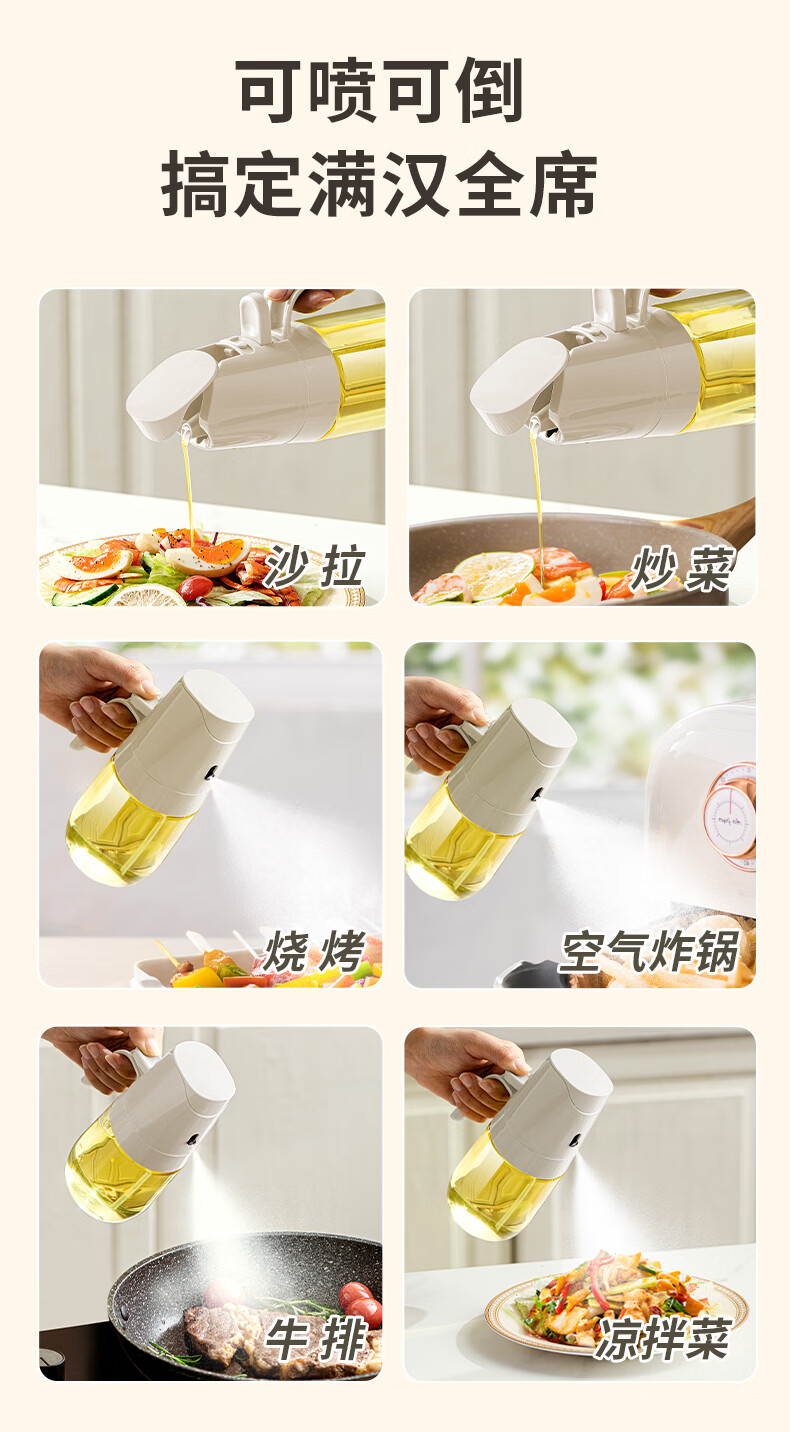 禧天龙喷油壶倒油壶 喷倒一体油瓶控油壶食用油喷壶喷雾 升级喷倒一体油壶-300ml