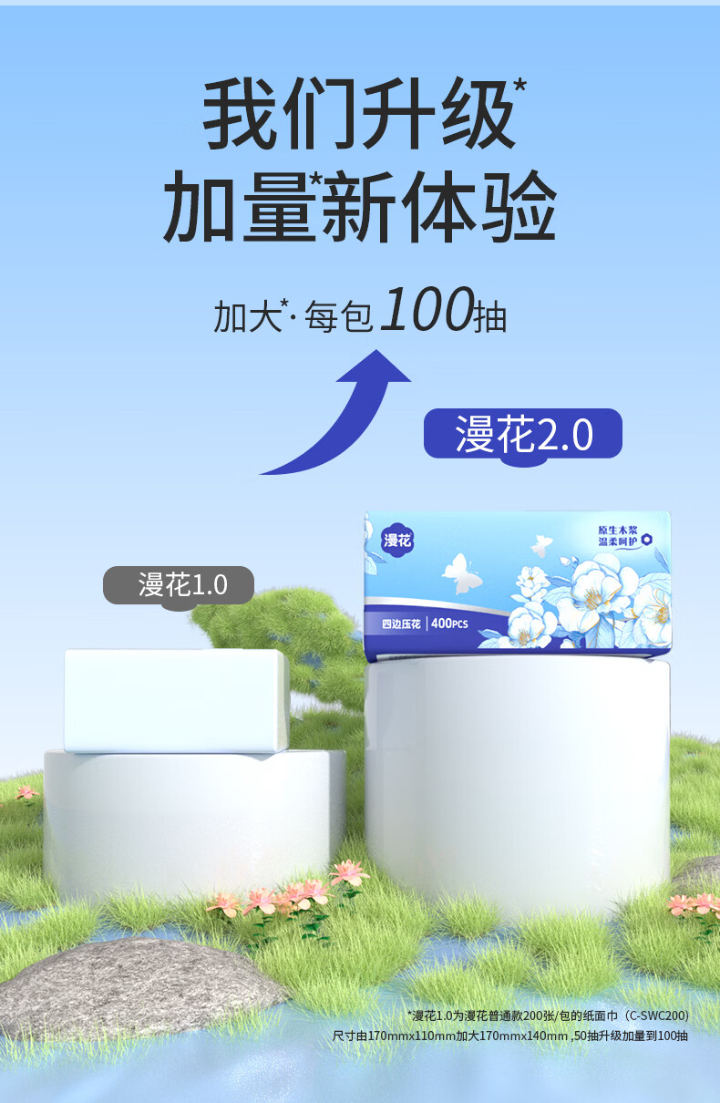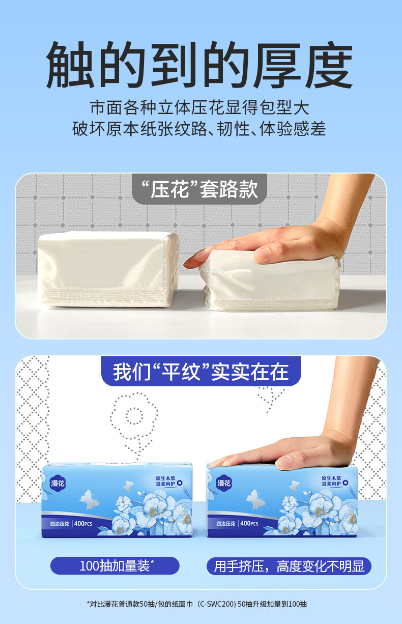 漫花蓝茶花抽纸纸巾4层100抽*20大包整箱批发家用餐巾面巾卫生纸厕纸