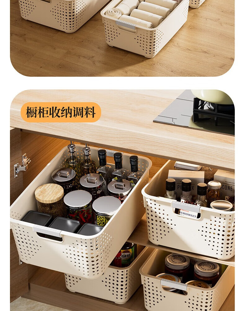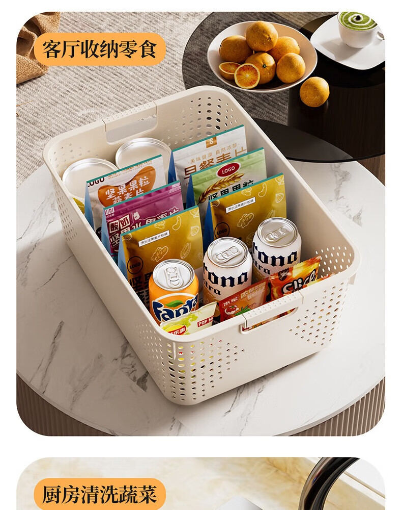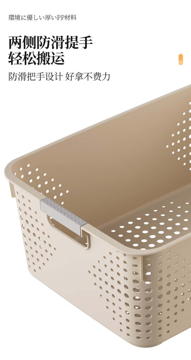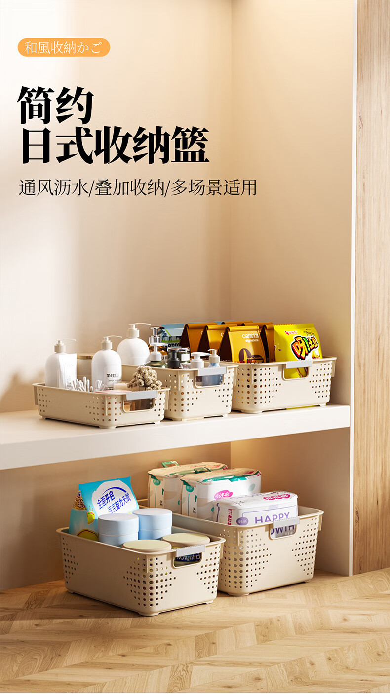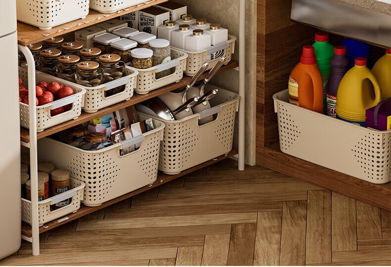 【名创同款】浴室厨房奶油色镂空收纳架零食玩具收纳盒置物架 矮款中号2个