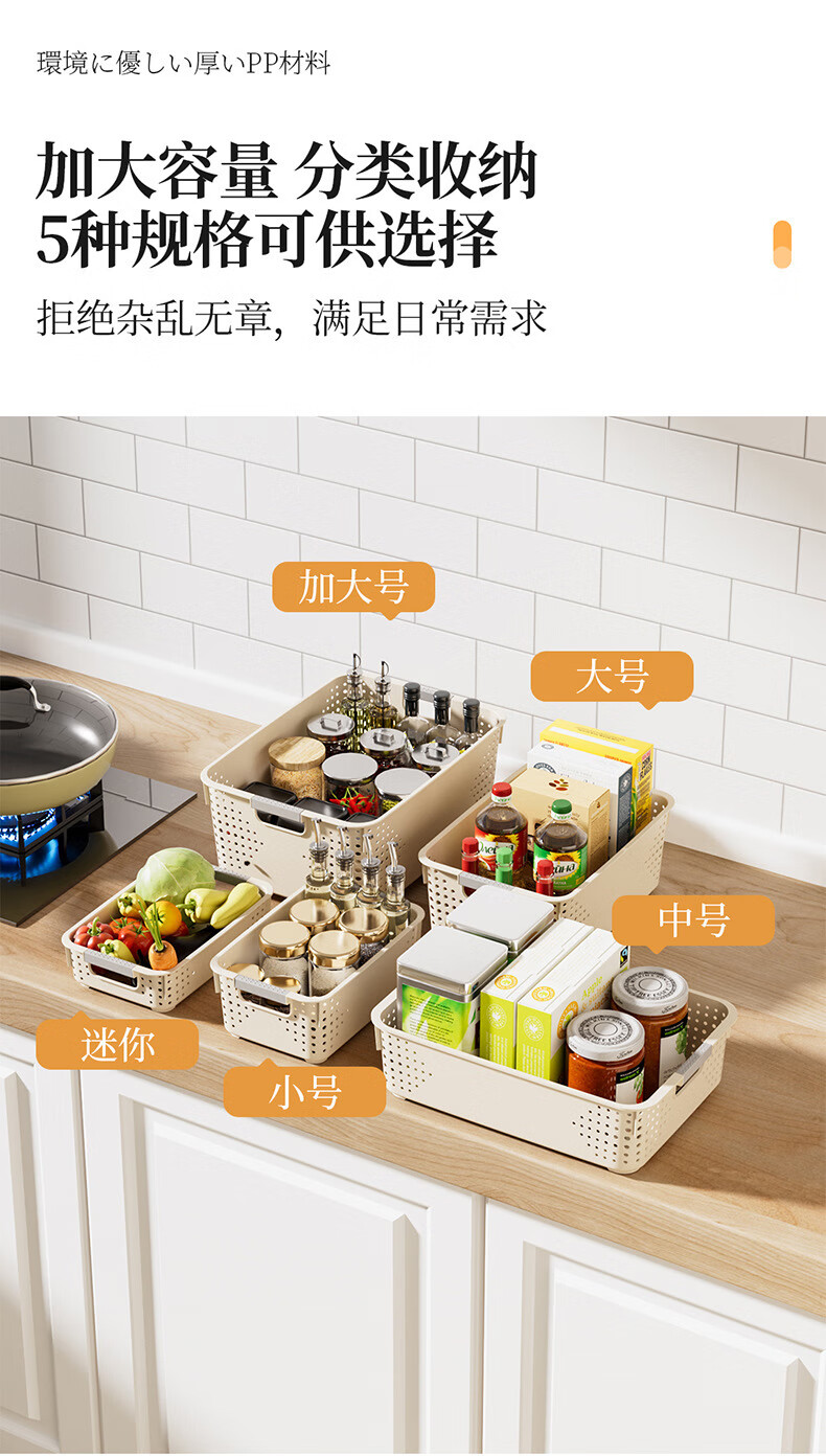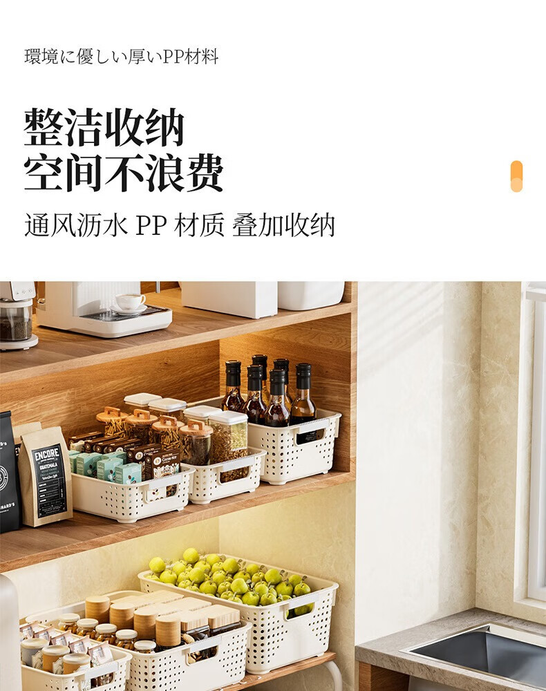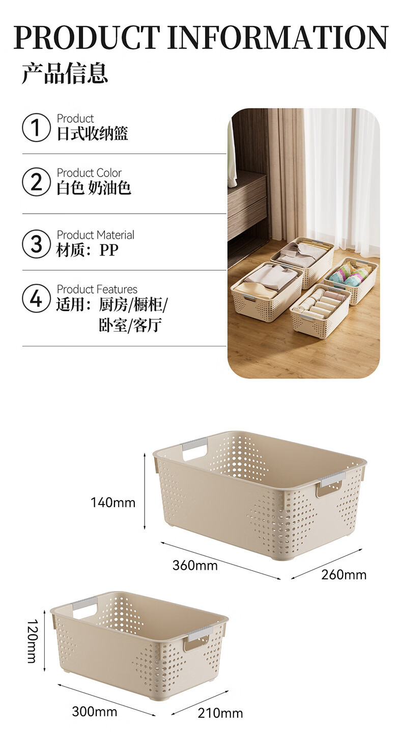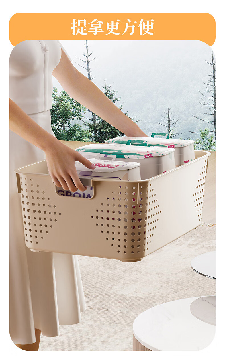 【名创同款】浴室厨房奶油色镂空收纳架零食玩具收纳盒置物架 矮款中号2个
