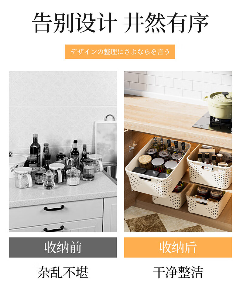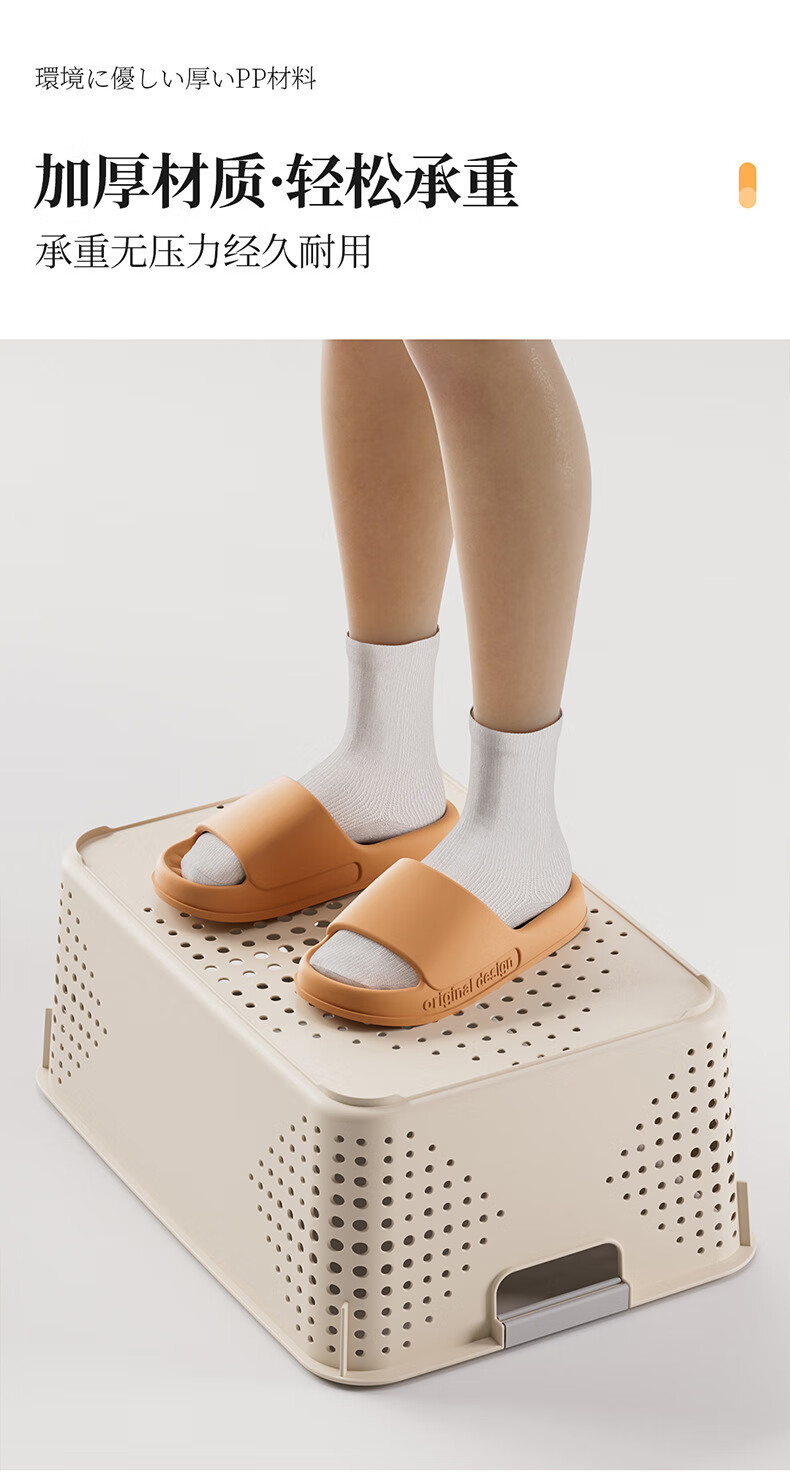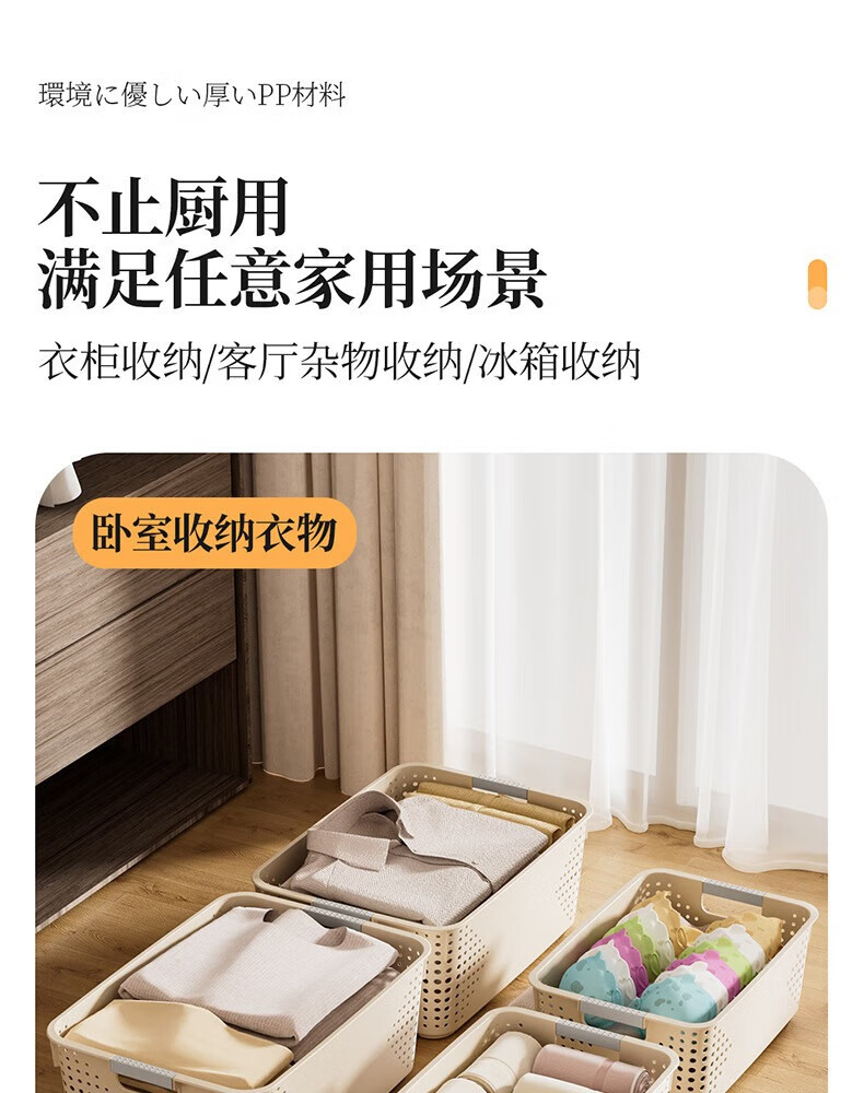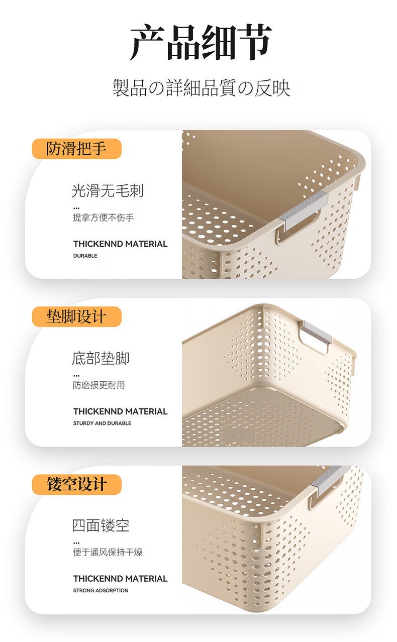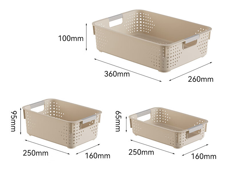 【名创同款】浴室厨房奶油色镂空收纳架零食玩具收纳盒置物架 矮款中号2个