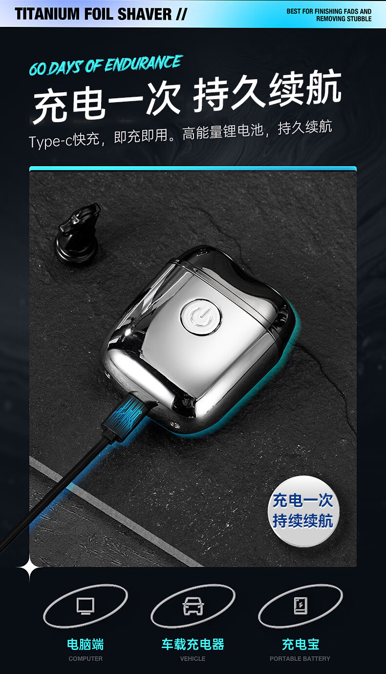 RABACIO德国品牌剃须刀电动男士2026新款高端迷你旅行便携刮胡刀胡须子不留黑点情人节礼物送男友父亲爸爸 流光银【礼盒装】(当/次日达) 剃须刀热卖第一 生日礼物送男朋友