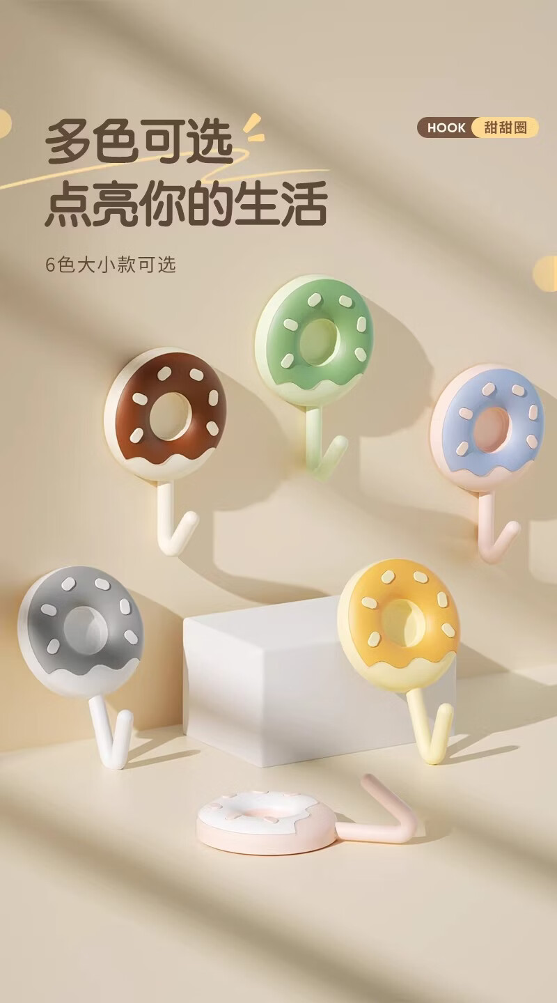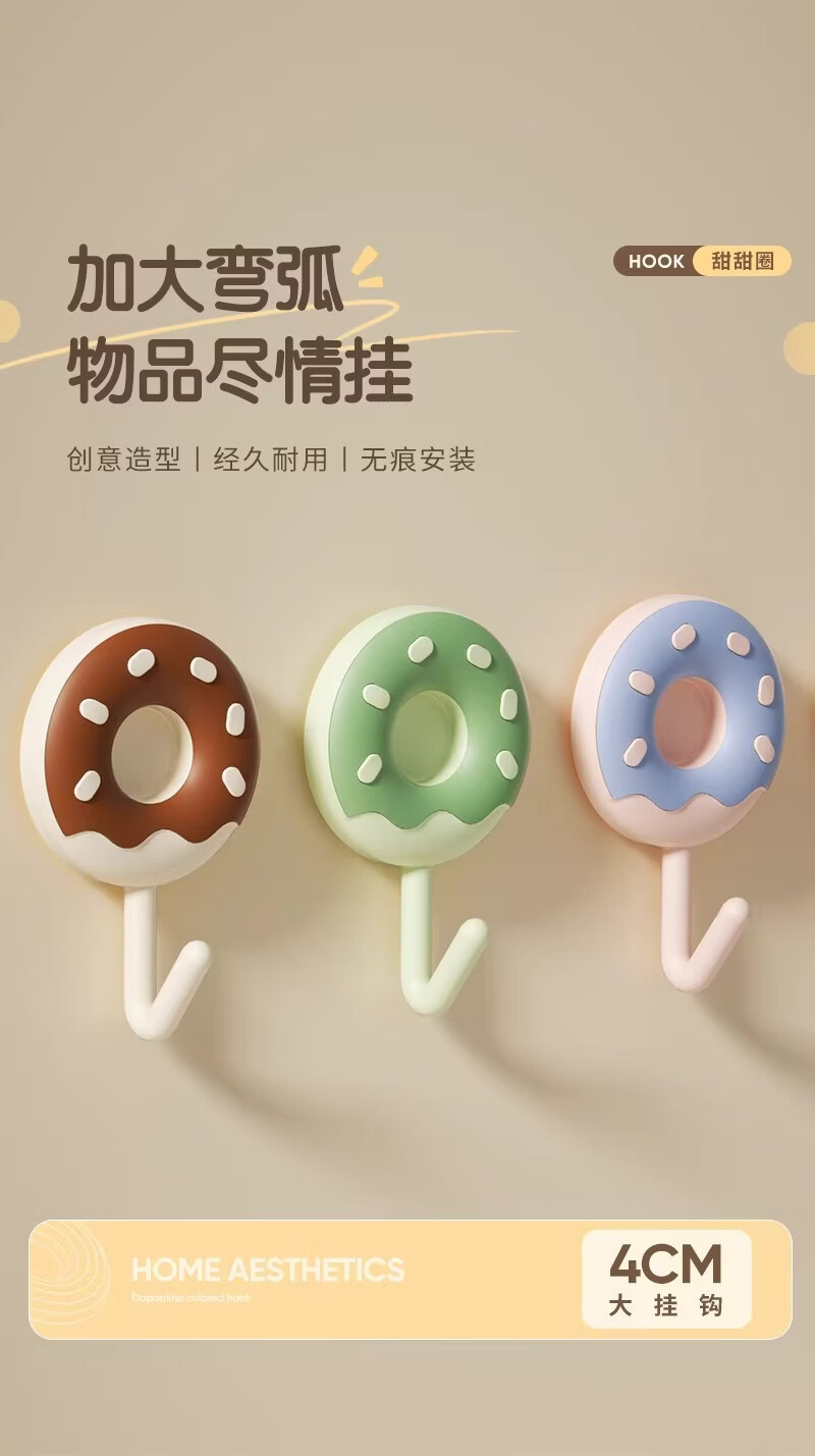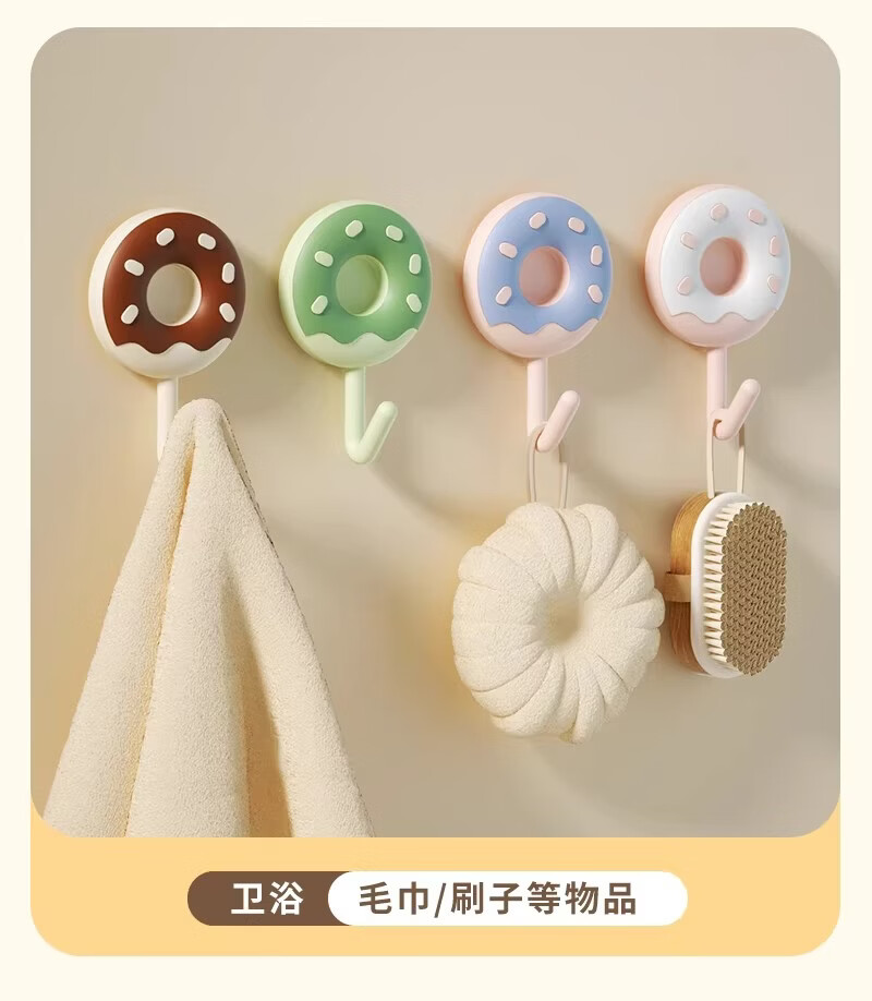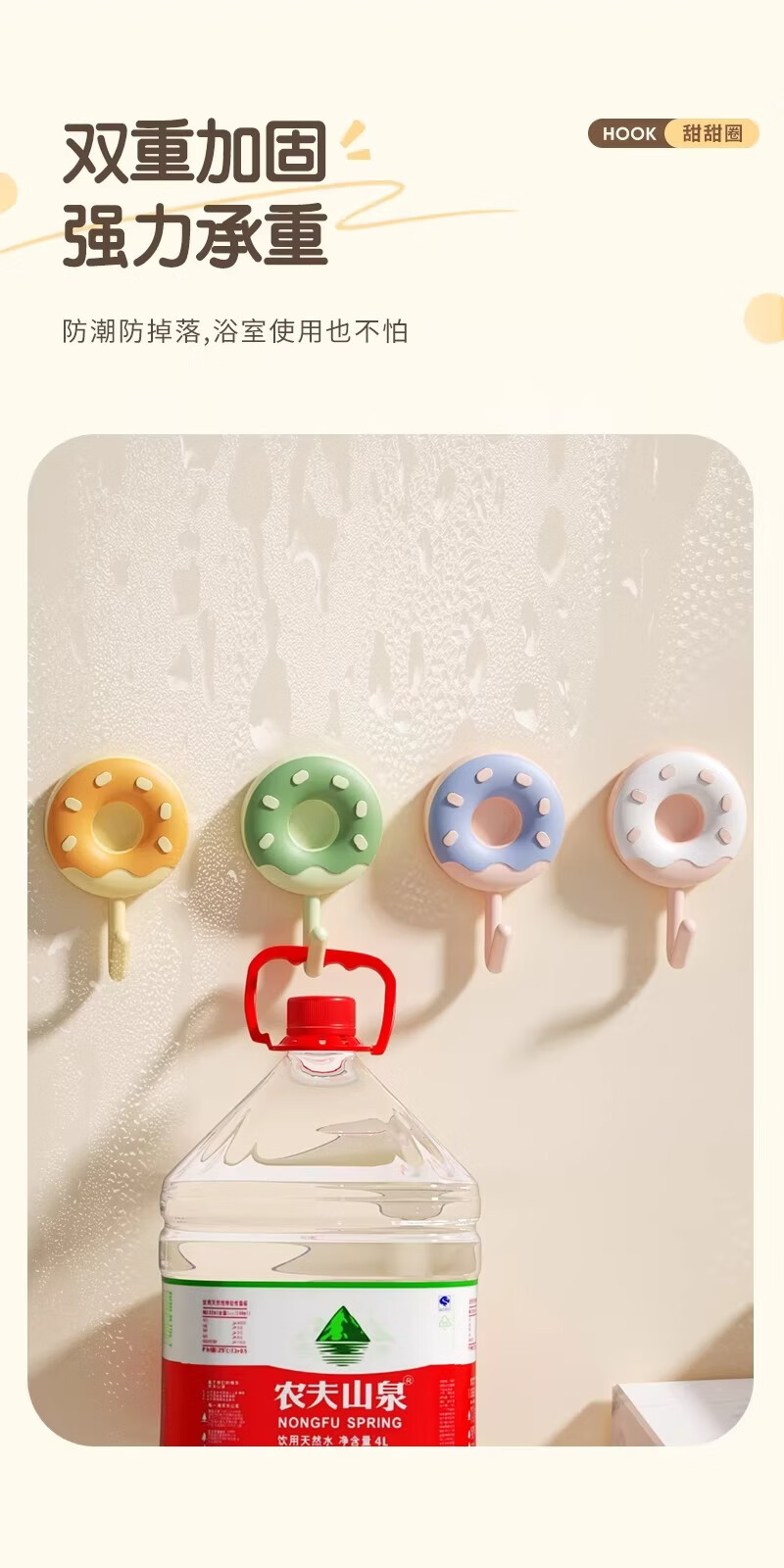 加度 挂钩免打孔强力承重多功能收纳厨房卫生间浴室多巴胺无痕粘钩 甜甜圈挂钩6个-大号