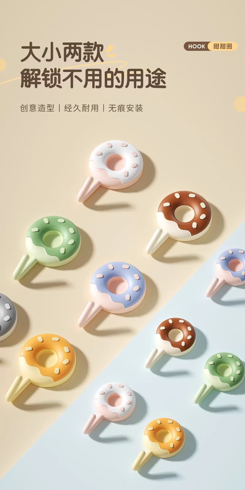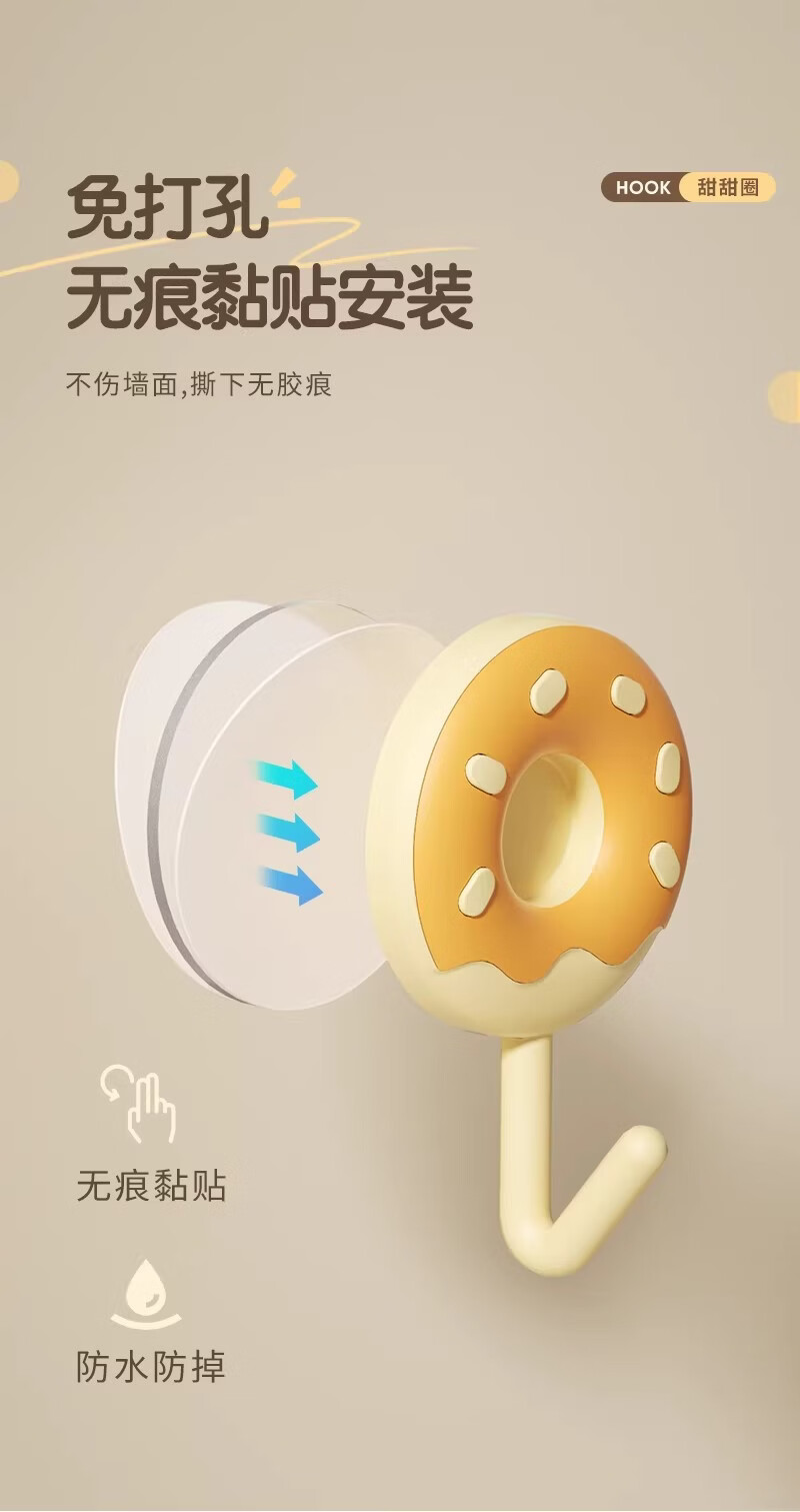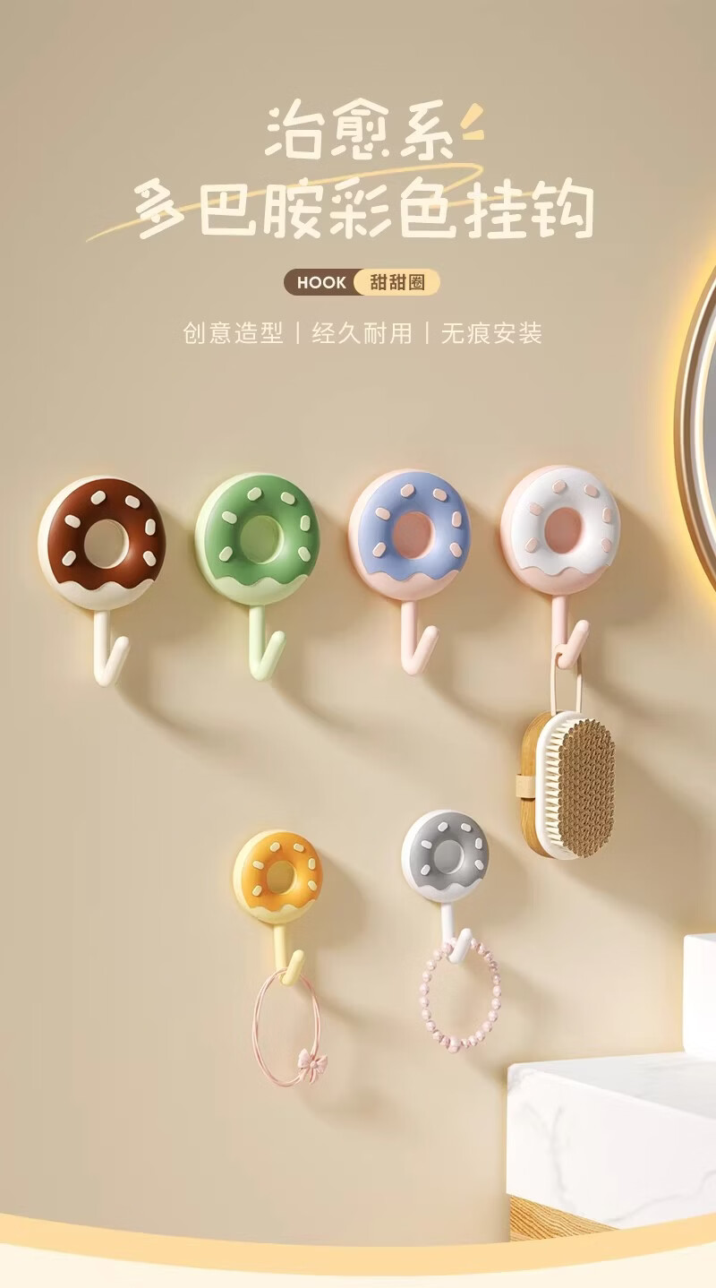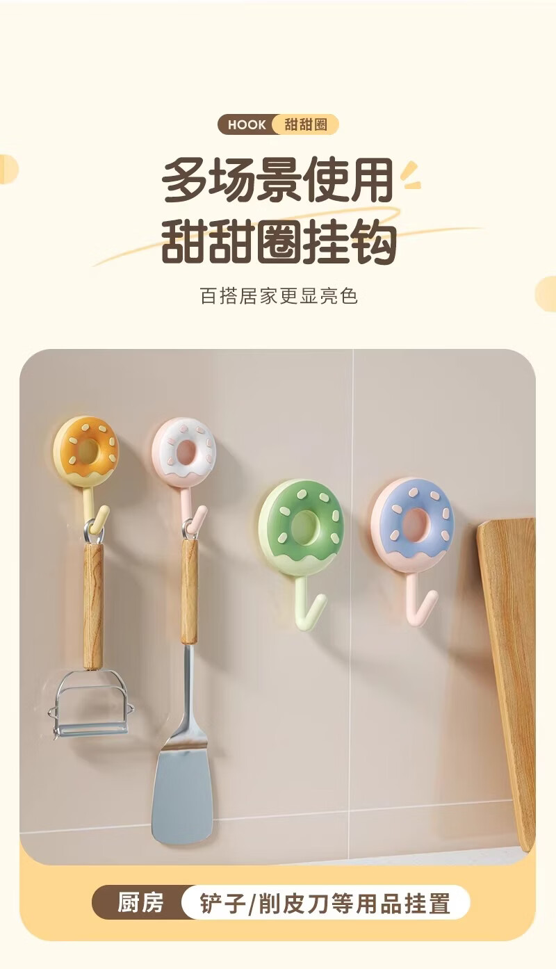 加度 挂钩免打孔强力承重多功能收纳厨房卫生间浴室多巴胺无痕粘钩 甜甜圈挂钩6个-大号