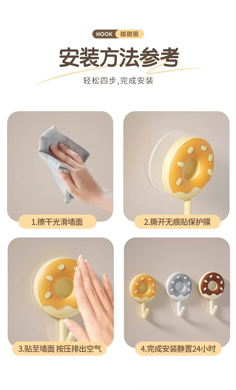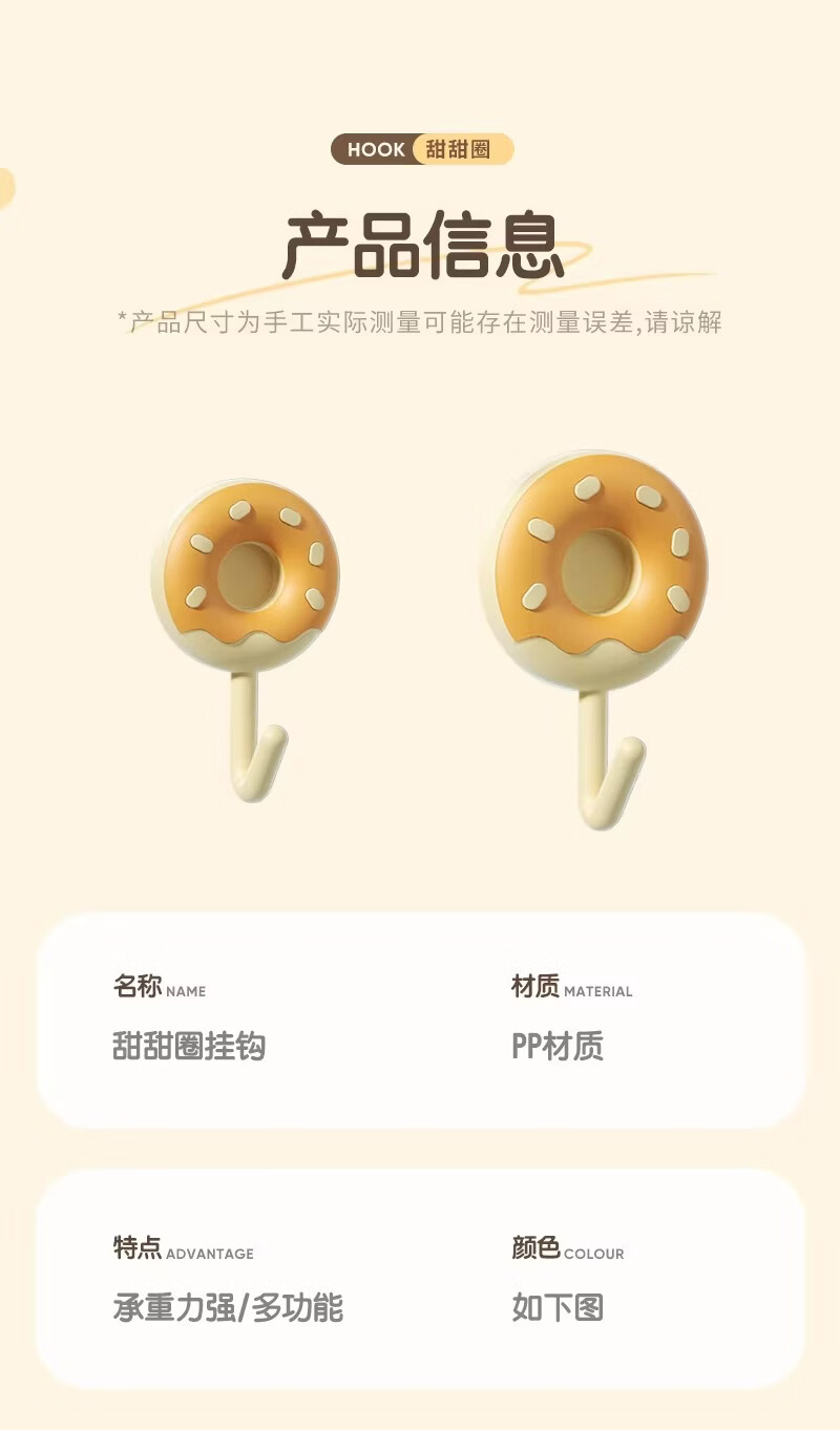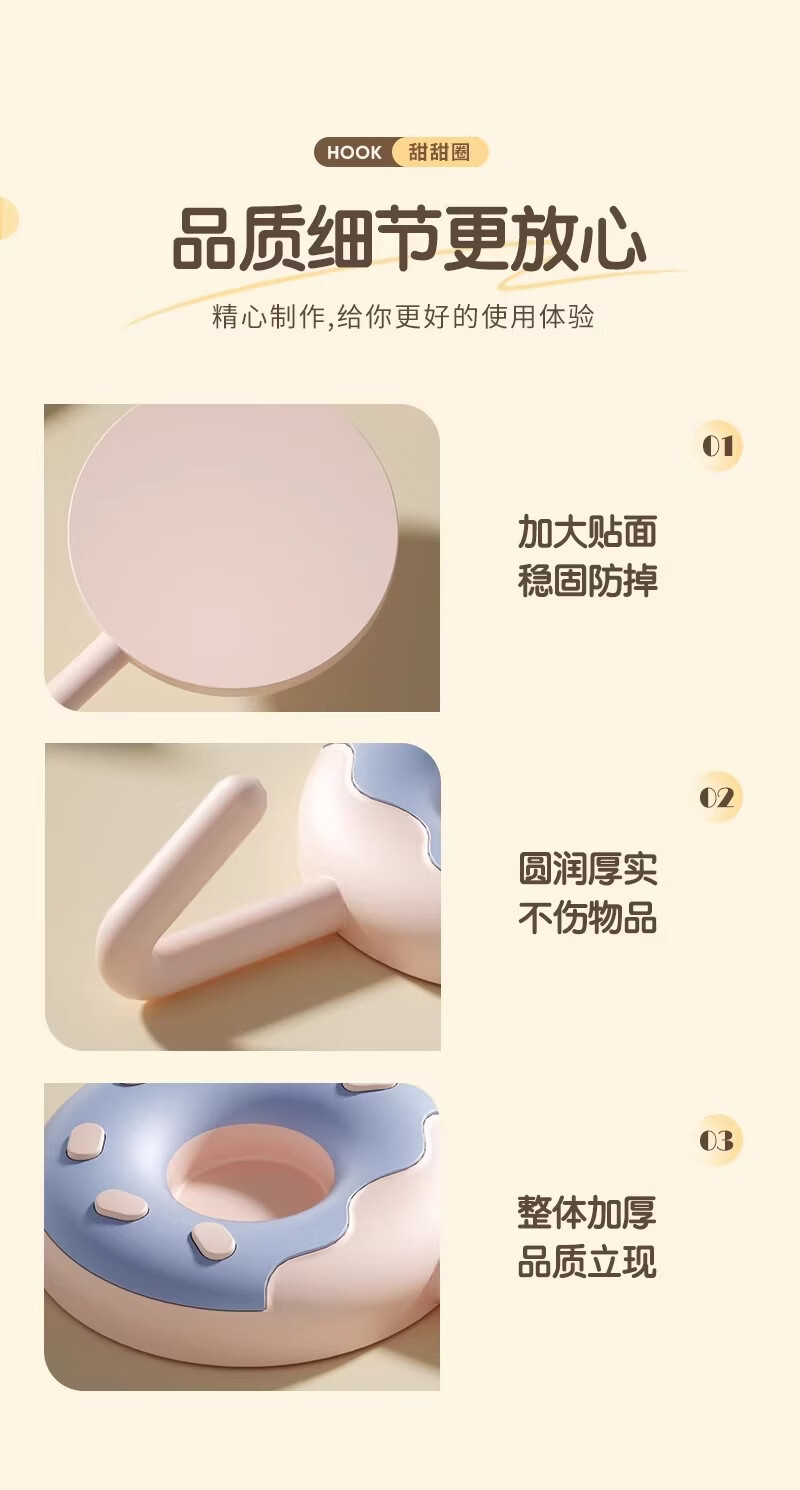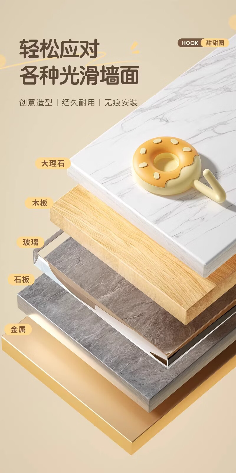 加度 挂钩免打孔强力承重多功能收纳厨房卫生间浴室多巴胺无痕粘钩 甜甜圈挂钩6个-大号