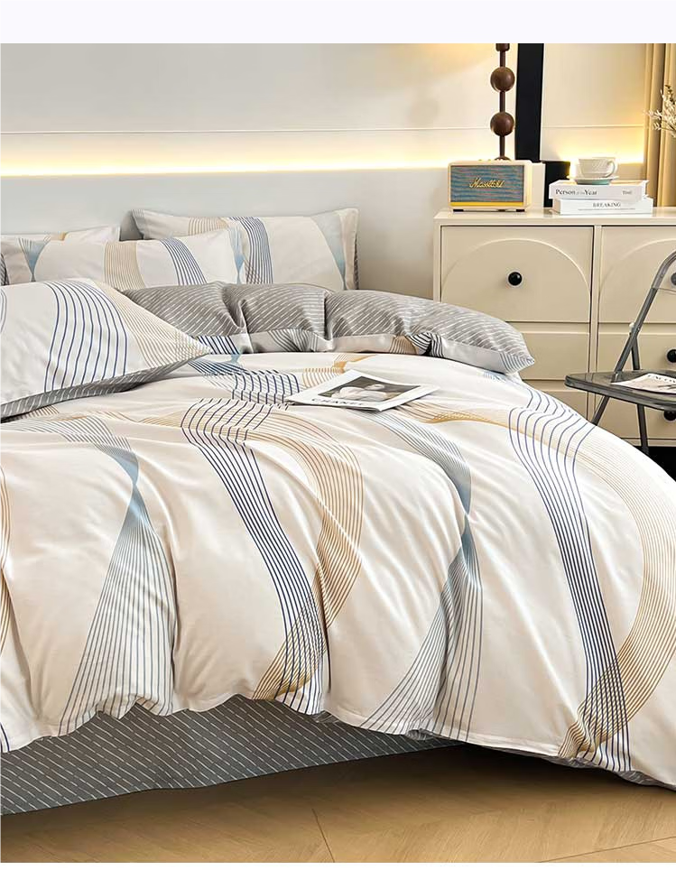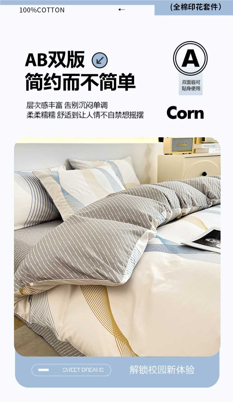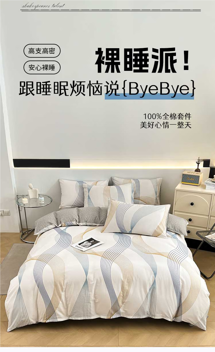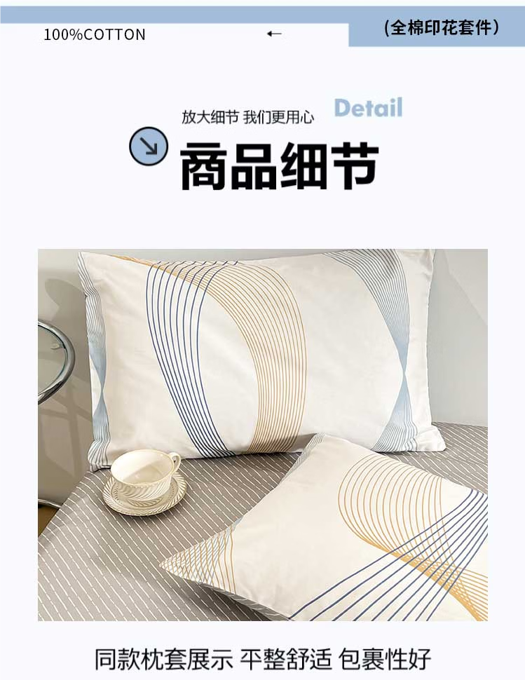 无印良品全棉纯棉床上四件套简约床单被套家用裸睡床笠被罩宿舍单人三件套 名爵黄 【全棉新疆棉贴肤柔软透气】 1.8m 床单款 四件套-被套200x230cm