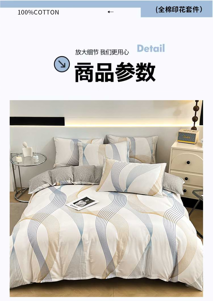 无印良品全棉床品四件套纯棉100%小清新花卉风单双人四季通用可裸睡三件套 苏屿【全棉面料 清新印花】 1.8m 床单款 被套200*230cm