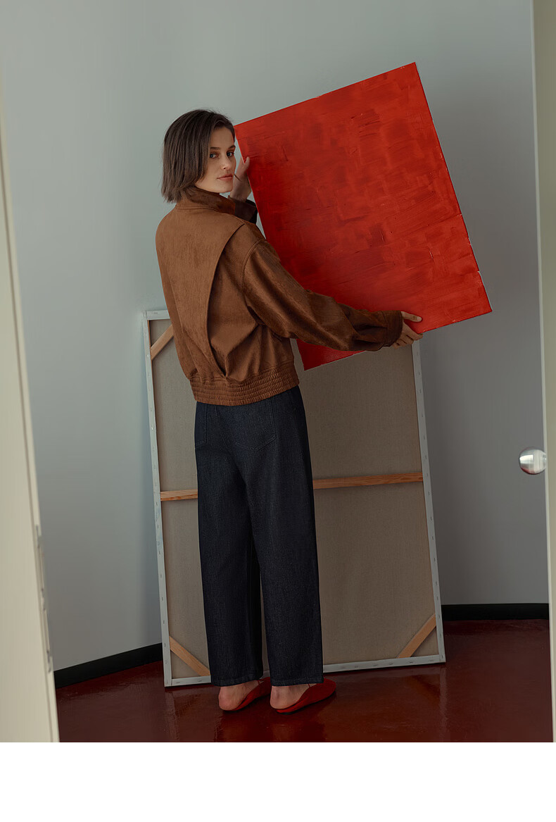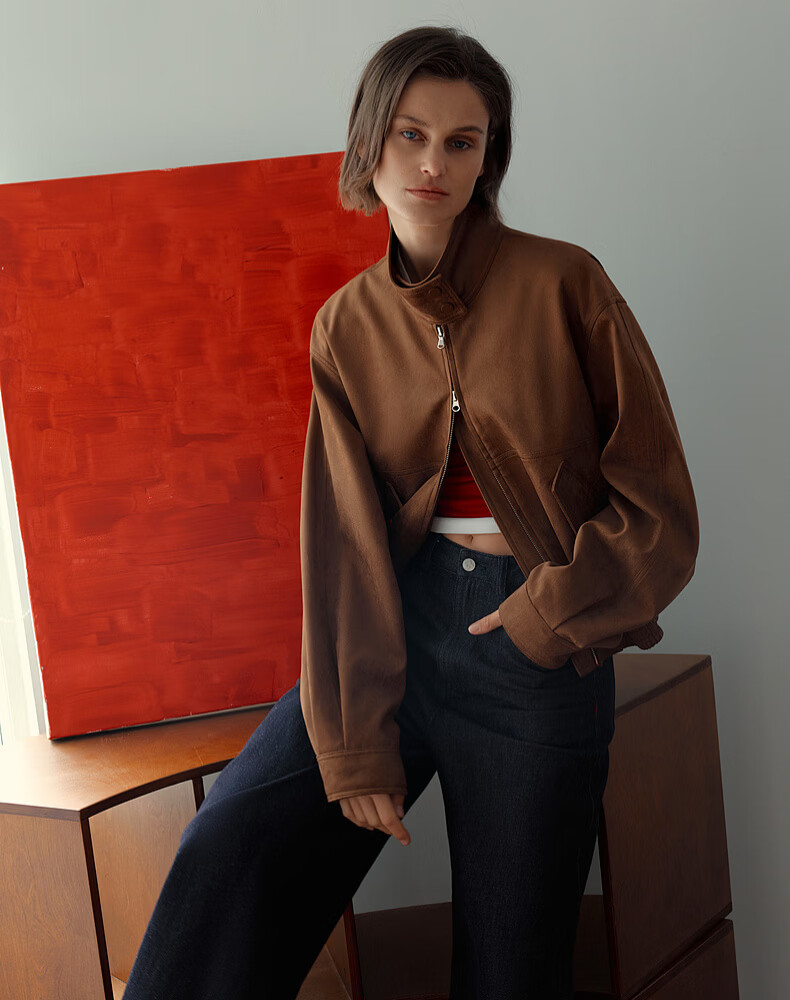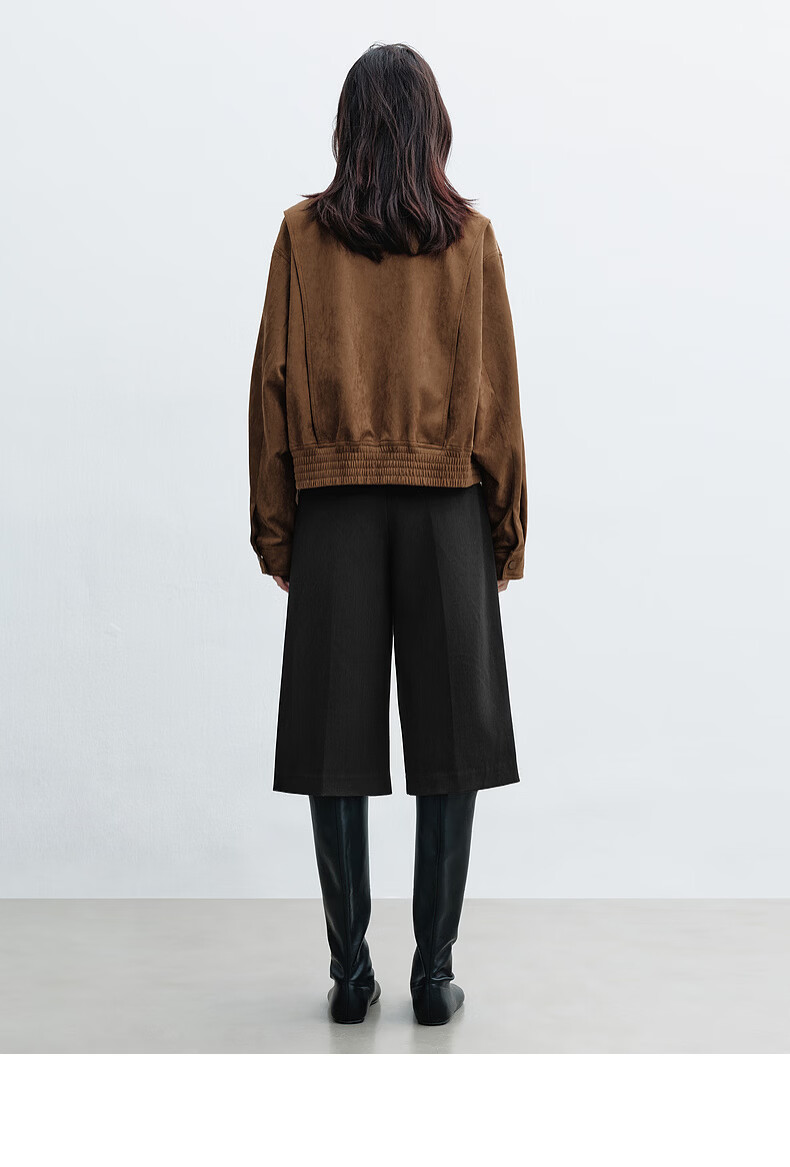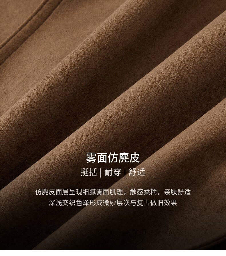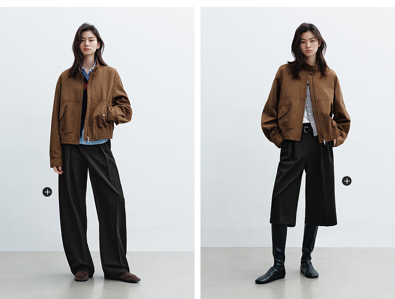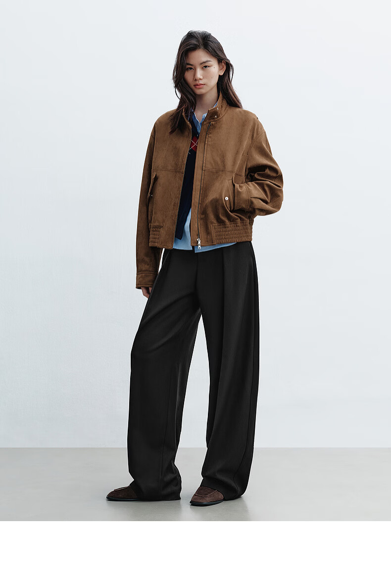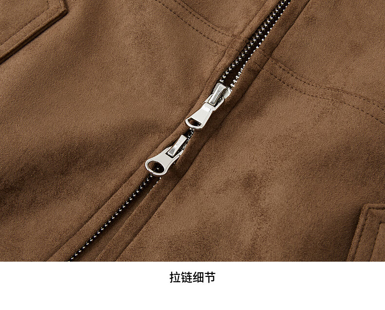 H's棕色仿麂皮立领短外套女26春季新款高级设计感立体宽松廓形上衣 蜜糖棕色 L