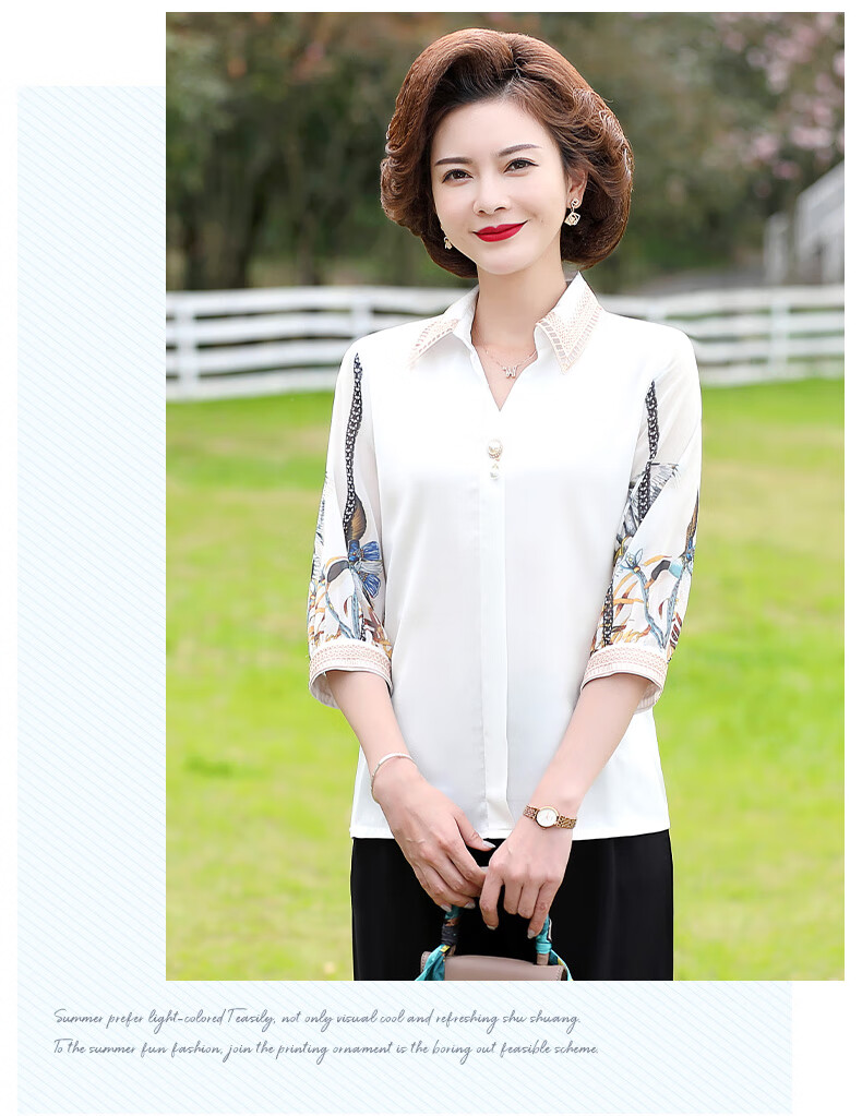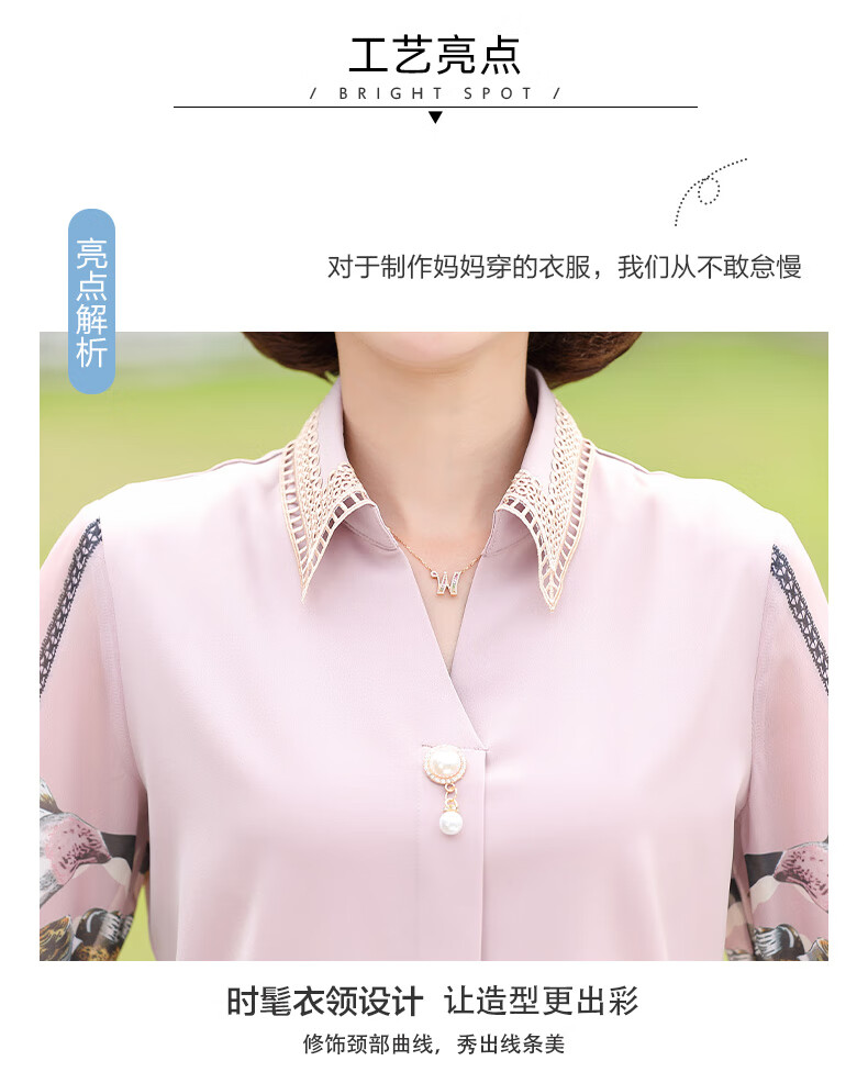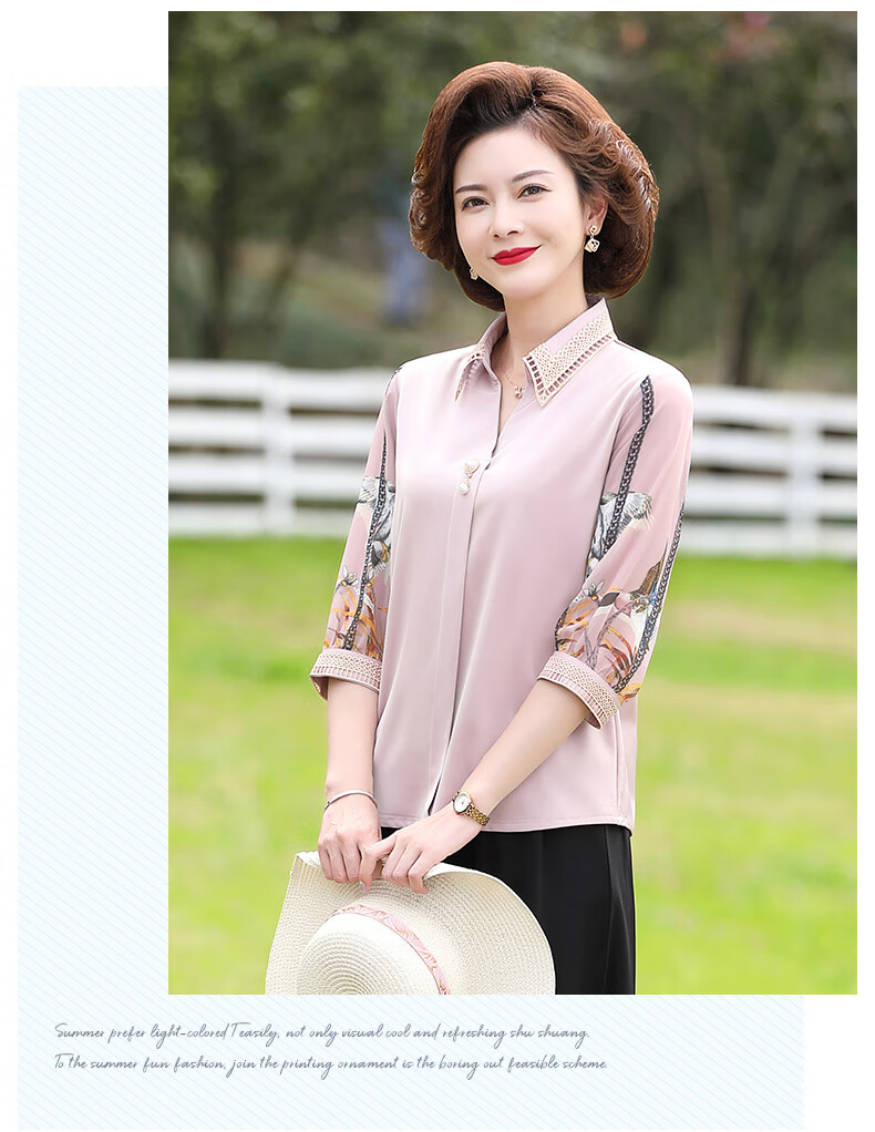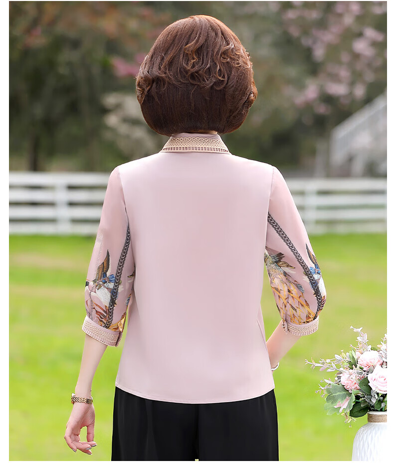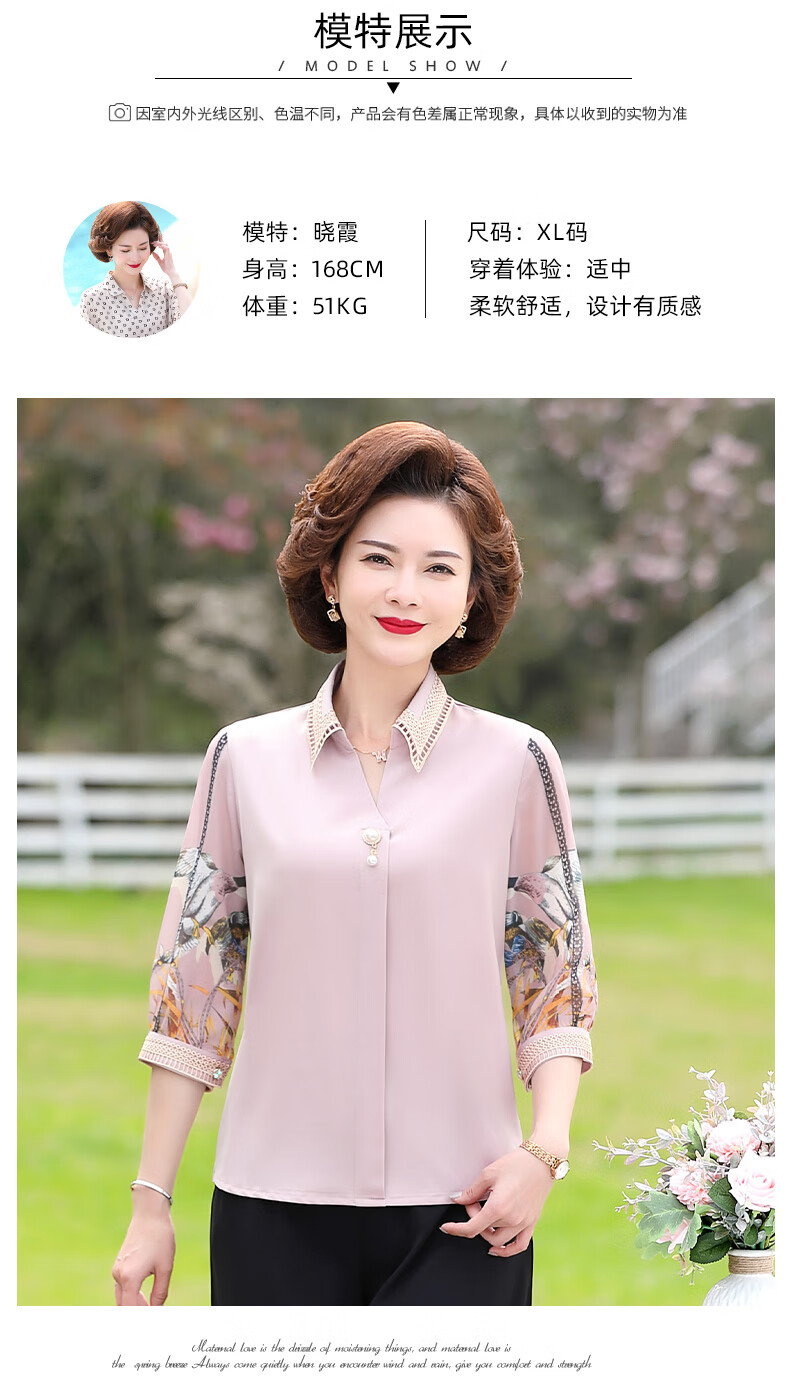 孜颜中老年女装夏装七分袖上衣衬衣洋气雪纺半袖衬衫40岁50夏季妈妈装 绿色上衣 XL 【建议100斤内】