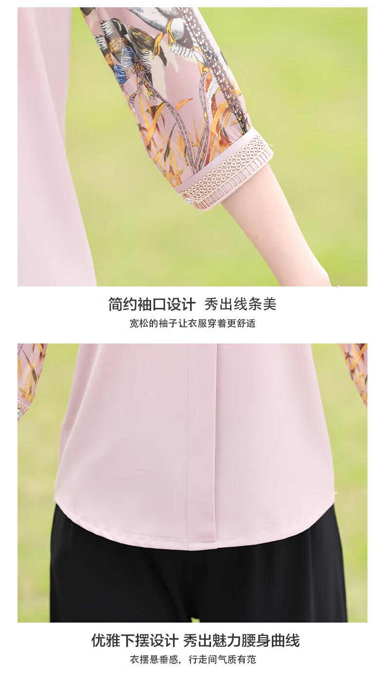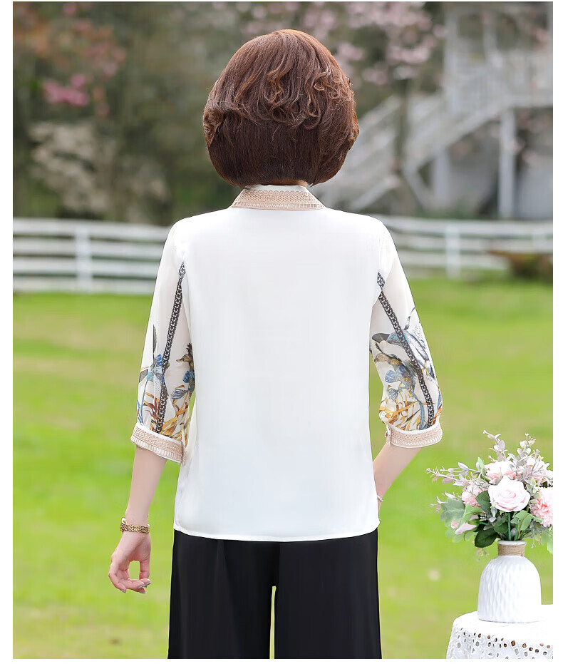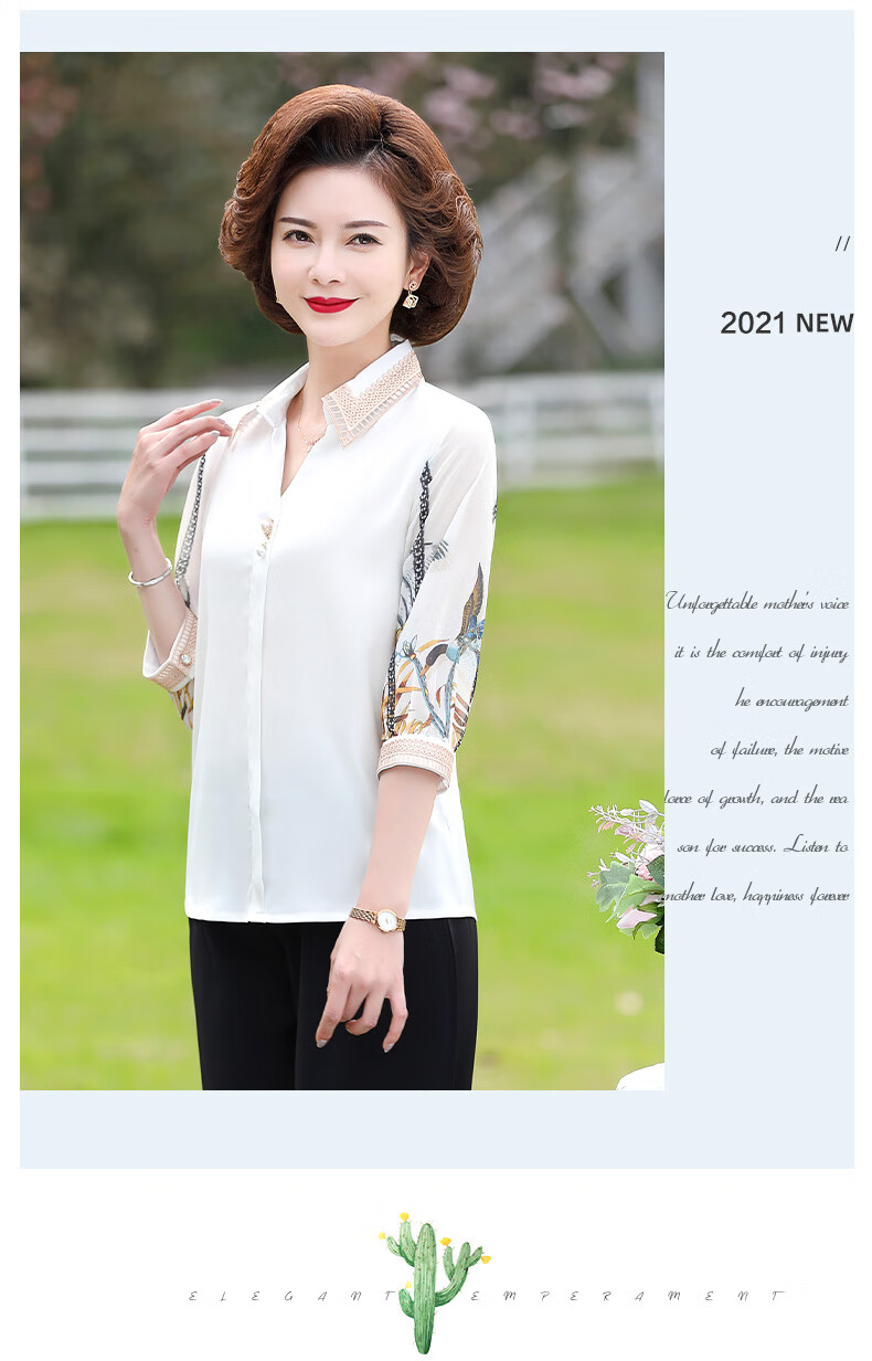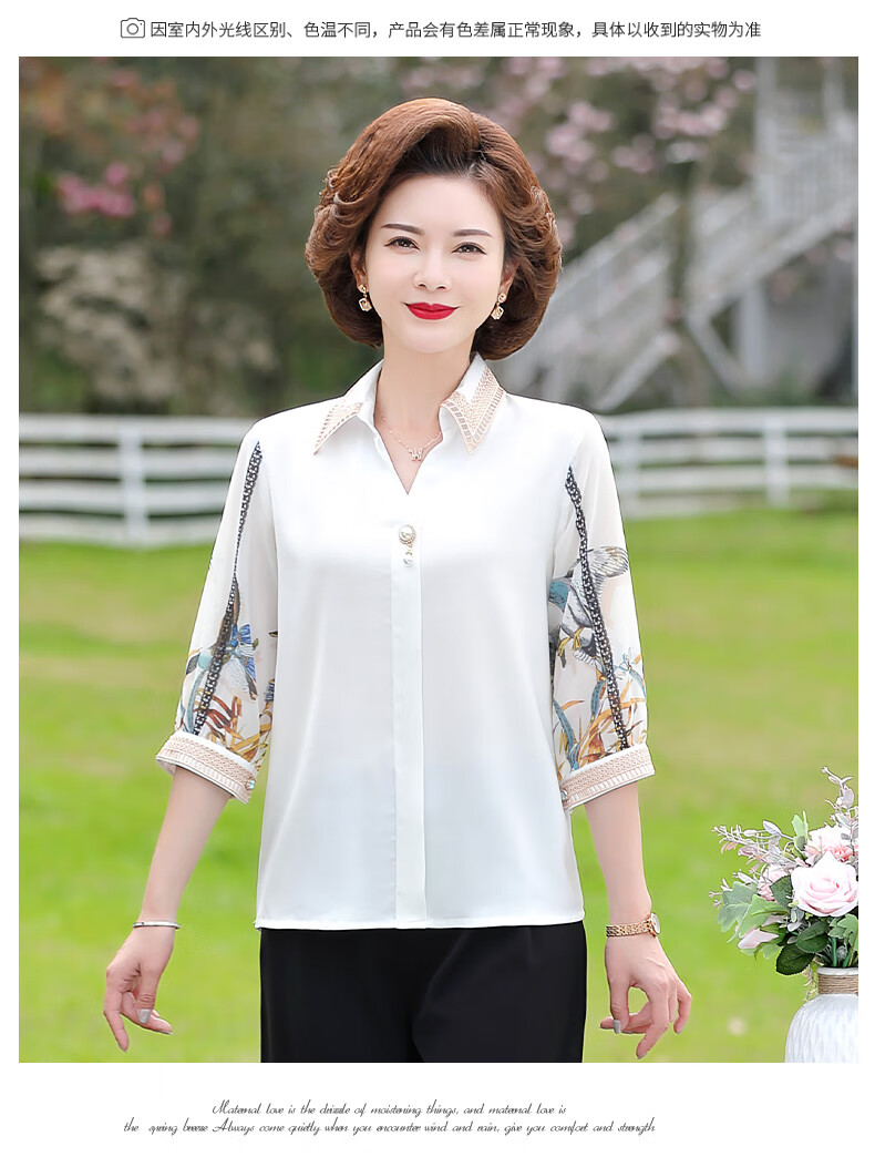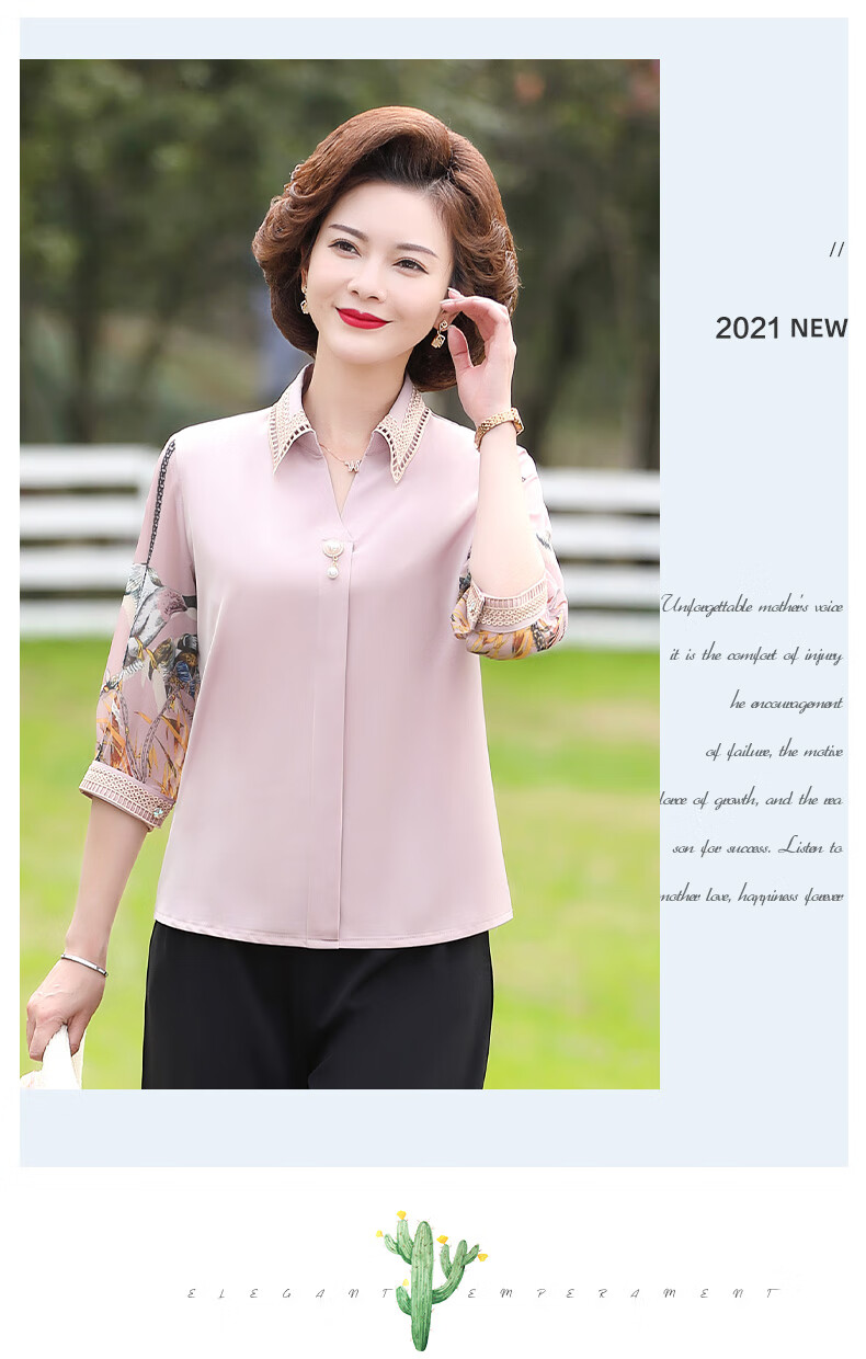 孜颜中老年女装夏装七分袖上衣衬衣洋气雪纺半袖衬衫40岁50夏季妈妈装 绿色上衣 XL 【建议100斤内】