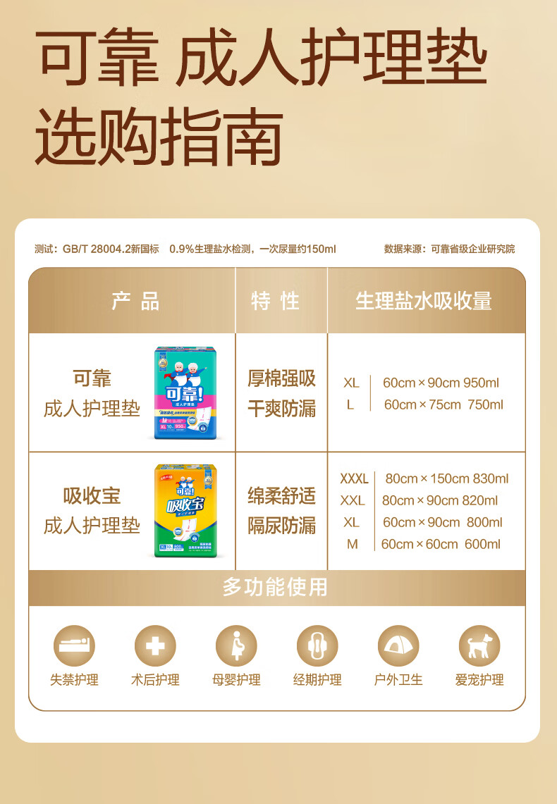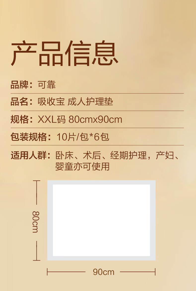 可靠(COCO)吸收宝成人护理垫2XL60片80*90cm加大舒适防漏隔尿垫产褥垫床垫