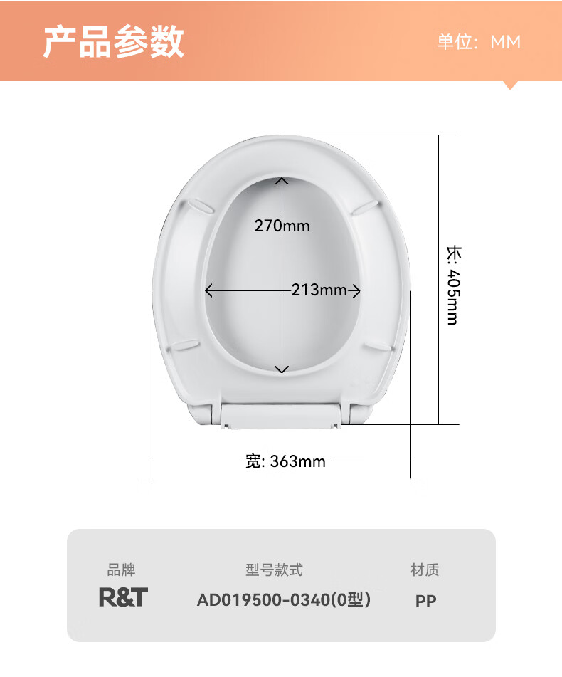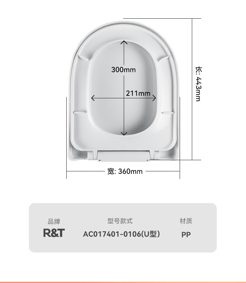 瑞尔特(R&T)马桶盖通用坐便器盖子家用加厚盖板老式抽水马桶圈器配件缓降快拆 AD019500-0340