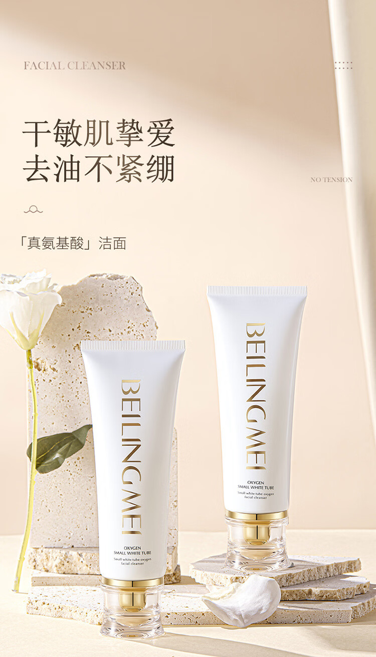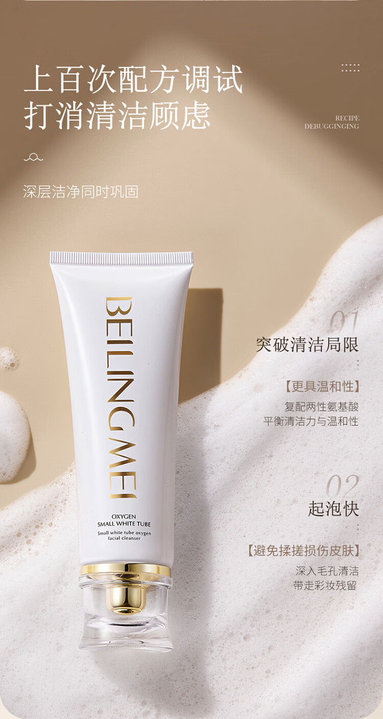 贝玲美【厂家直发】新品贝玲美小白管氧气洁面乳保湿深层清洁温和洁净 100g 贝玲美小白管氧气洁面乳