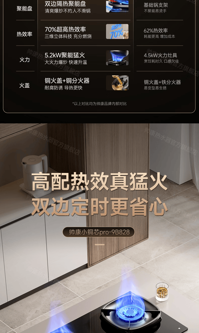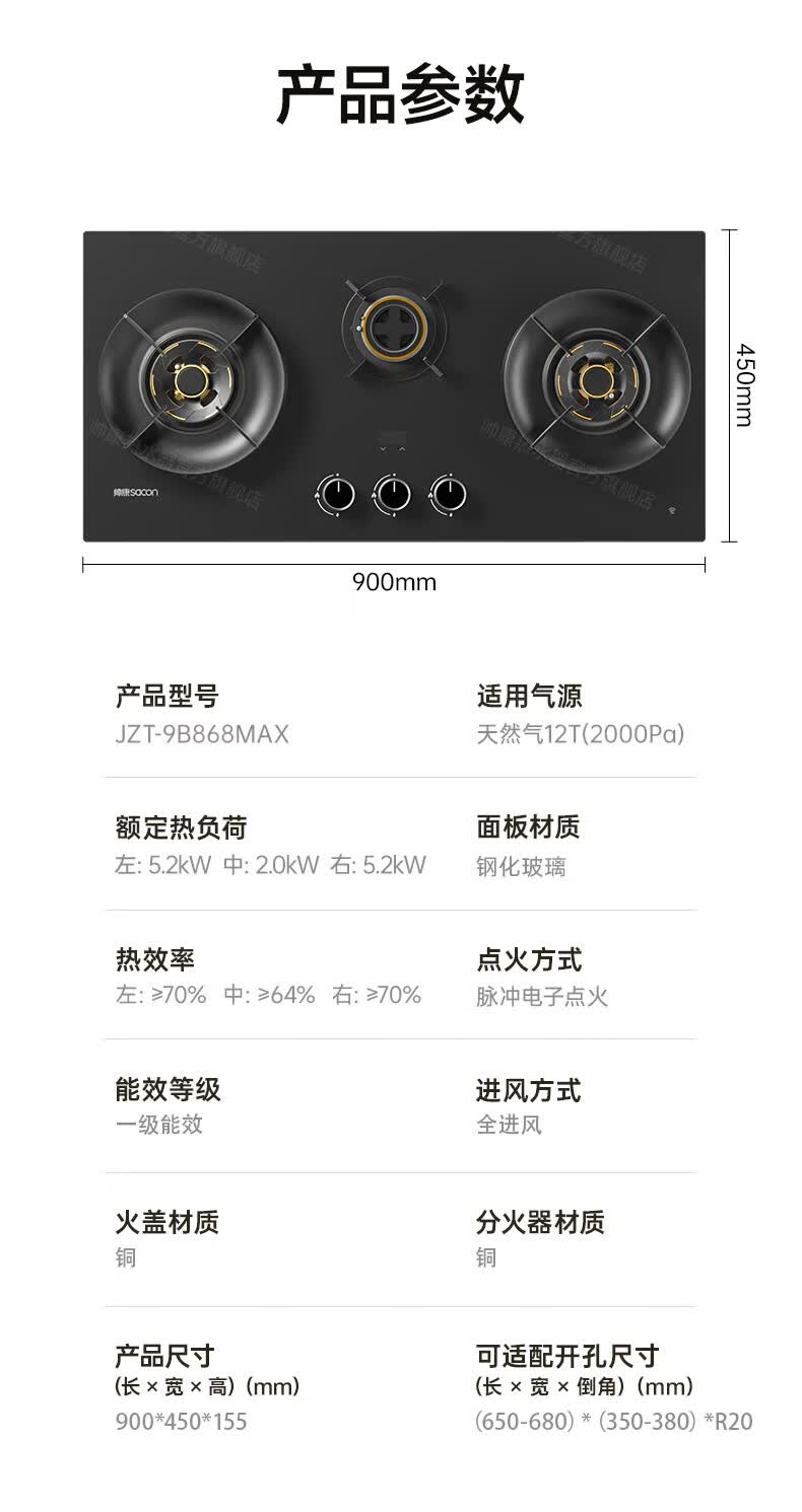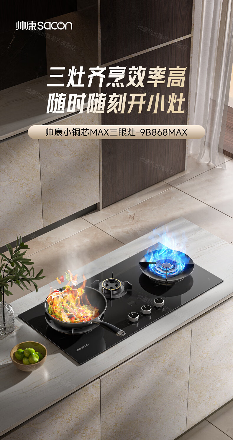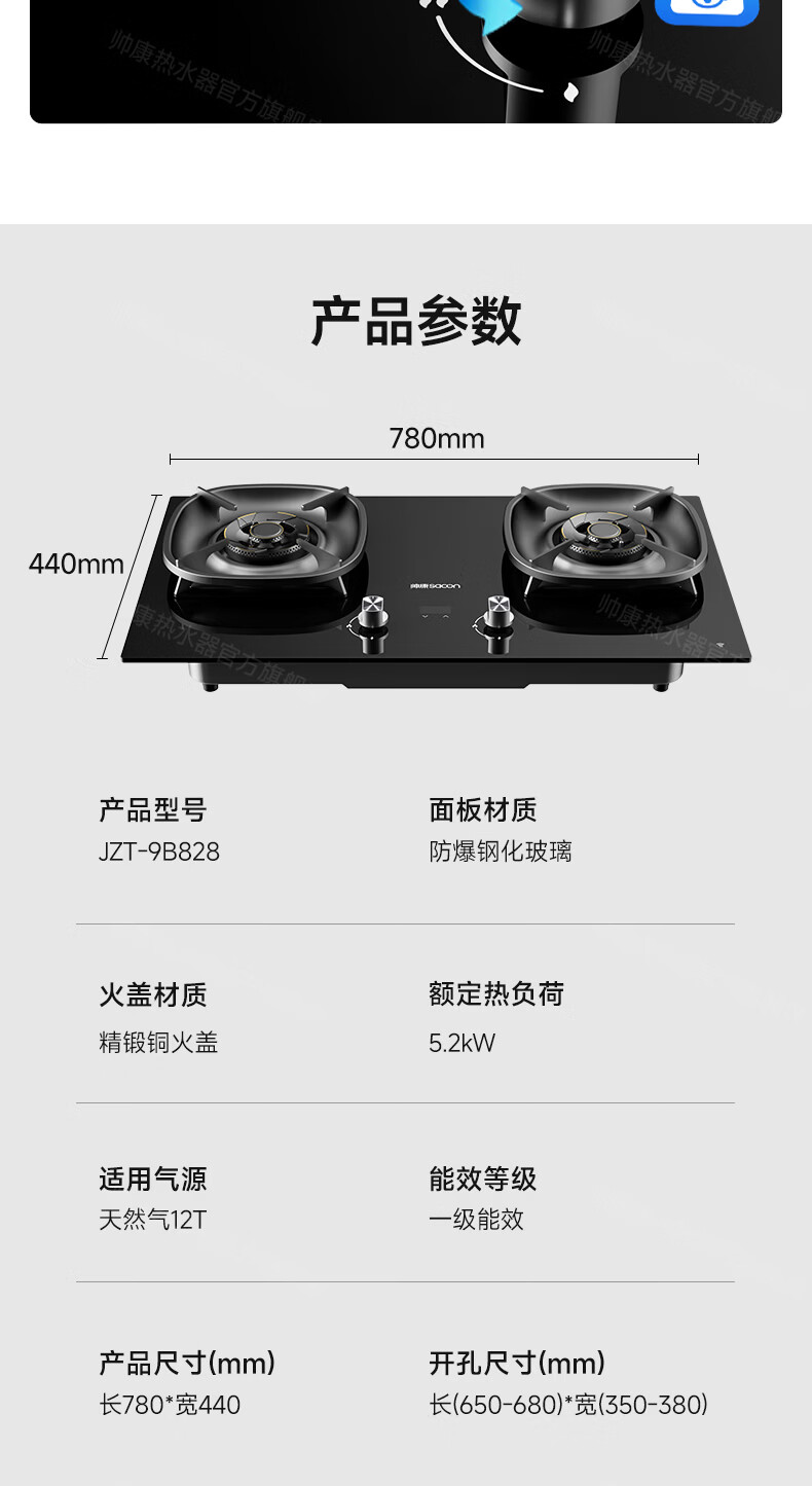 帅康(Sacon)燃气灶煤气灶铜火盖双灶天然气台嵌两用5.2kW双边定时灶免改孔烟灶联动9B828/9G826/9B868Max 5.2kW双边定时联动灶9B828 天然气