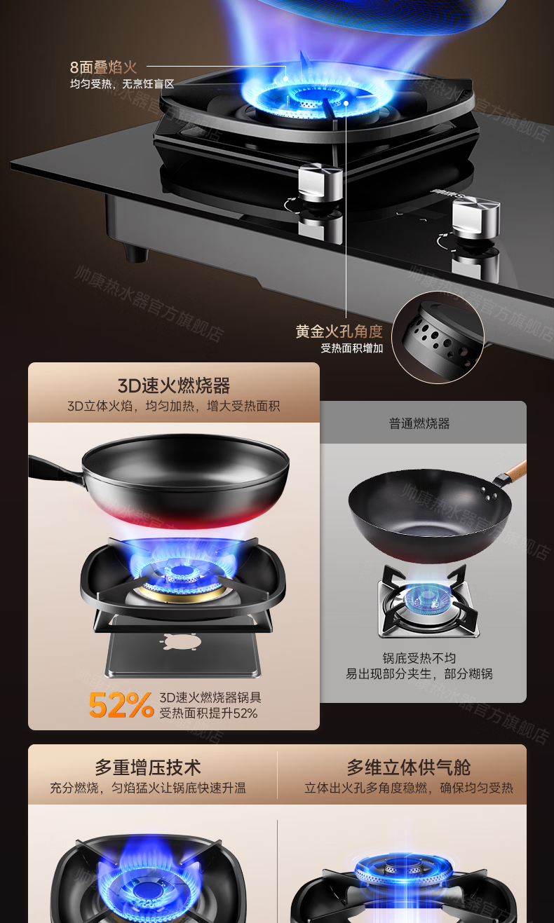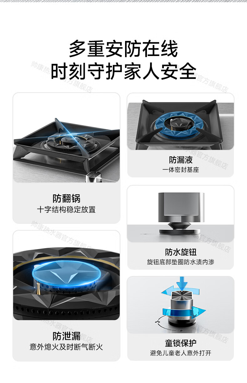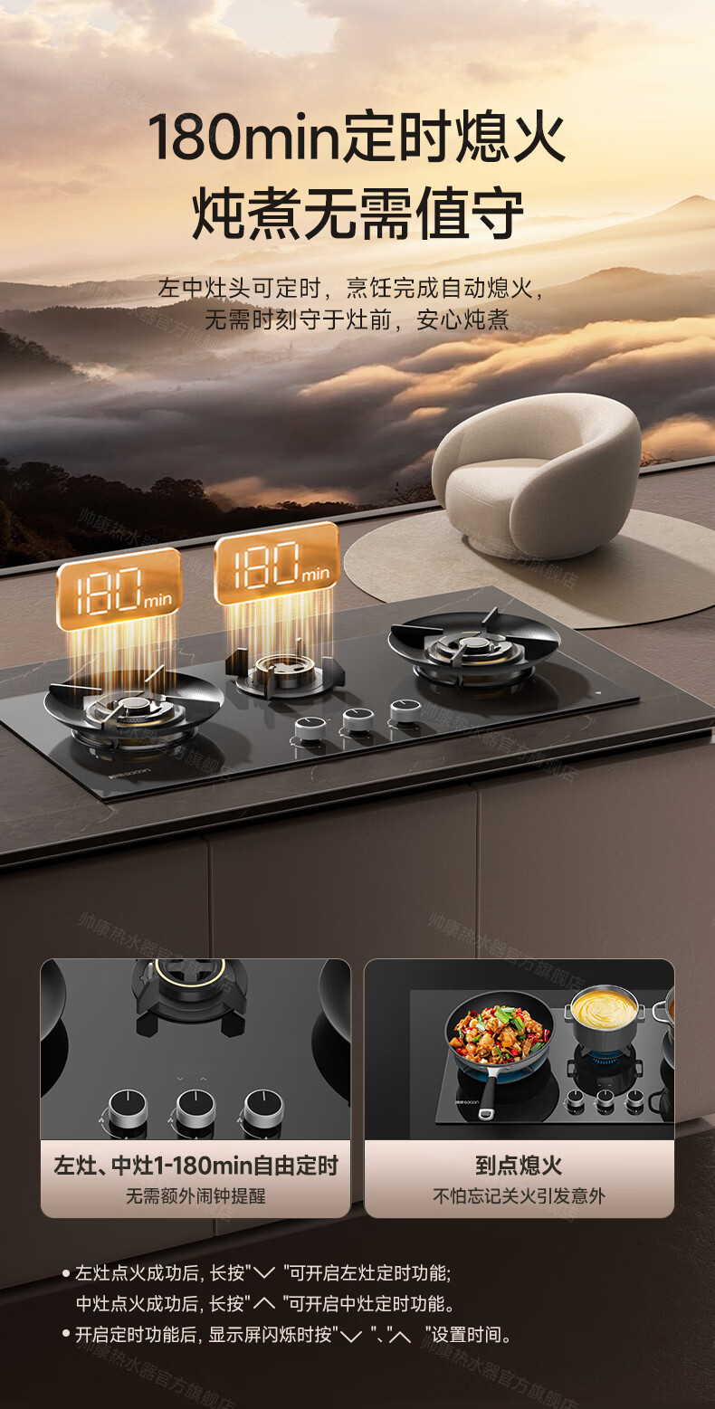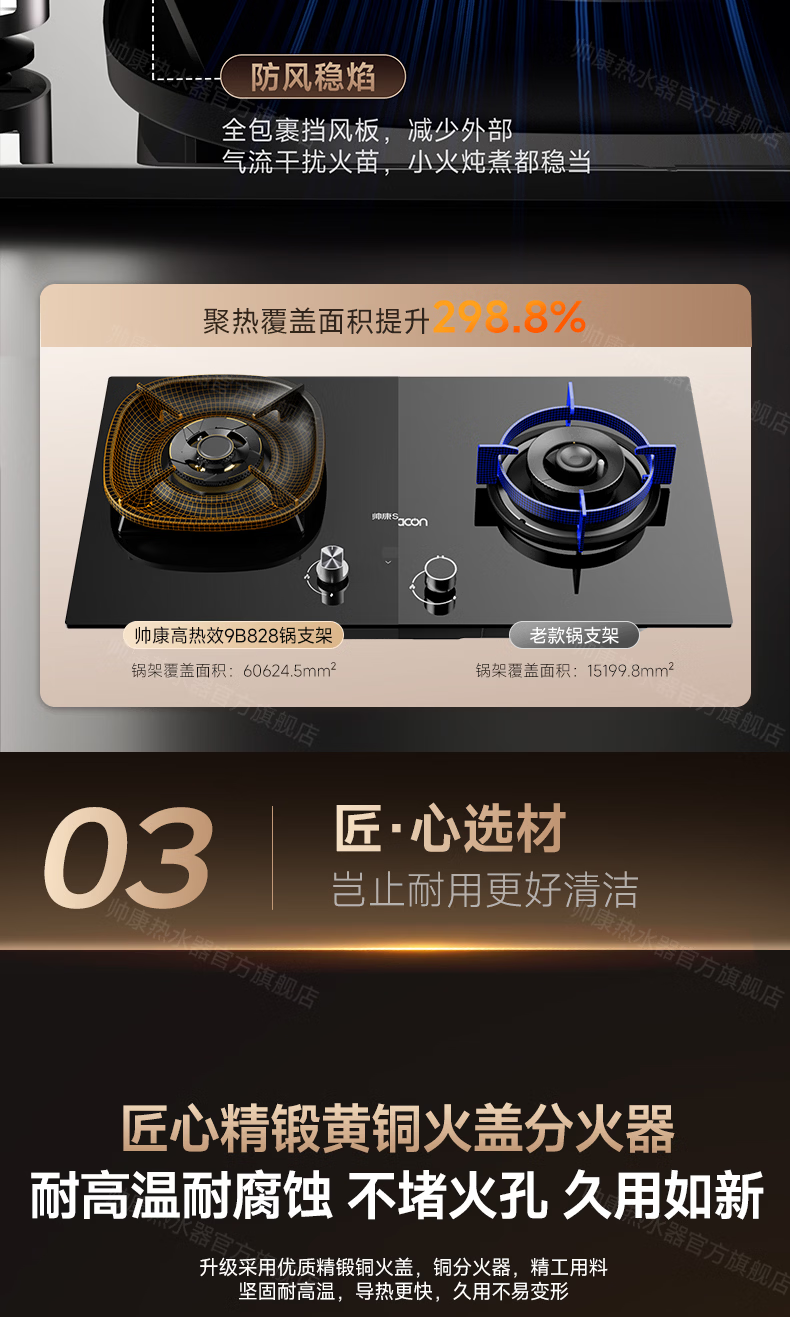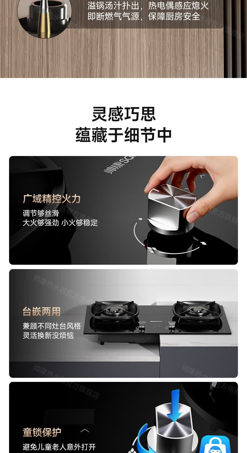 帅康(Sacon)燃气灶煤气灶铜火盖双灶天然气台嵌两用5.2kW双边定时灶免改孔烟灶联动9B828/9G826/9B868Max 5.2kW双边定时联动灶9B828 天然气