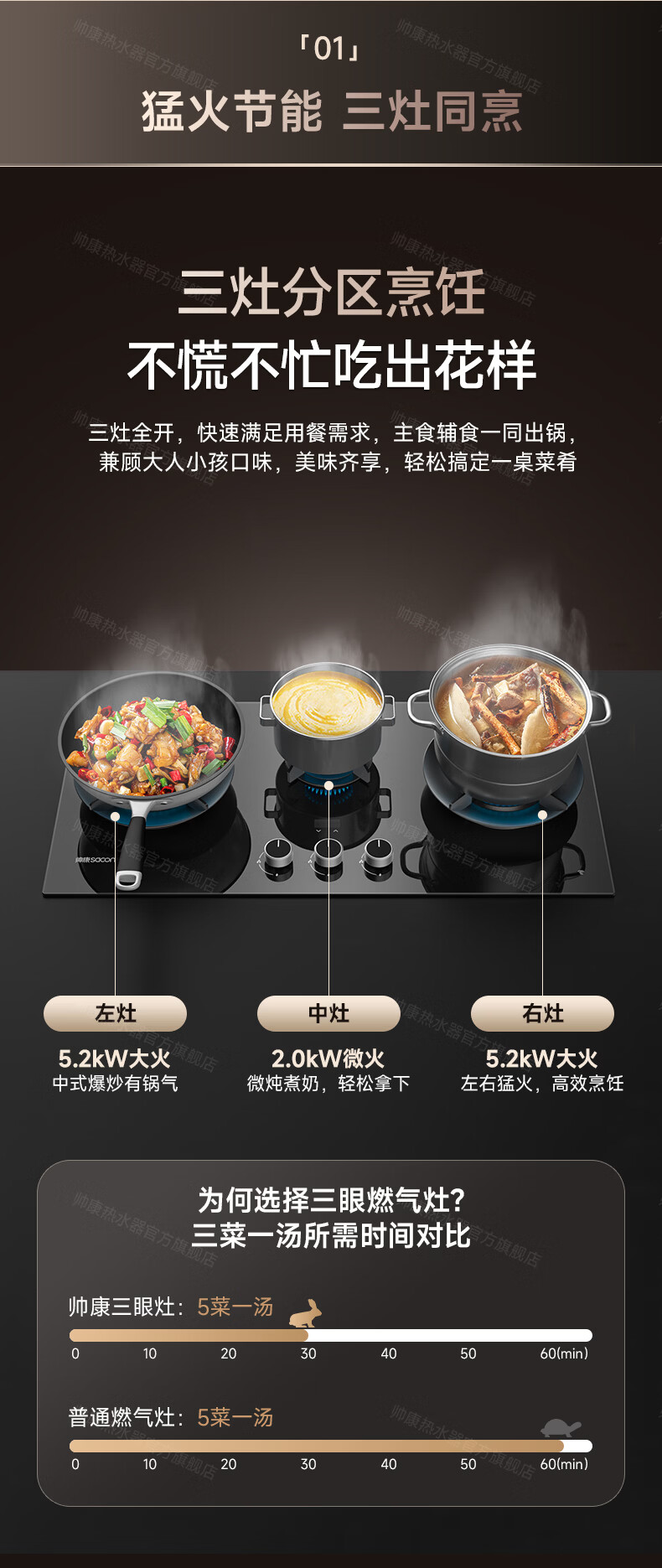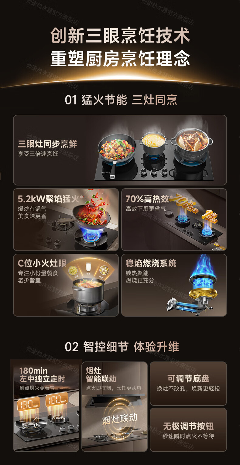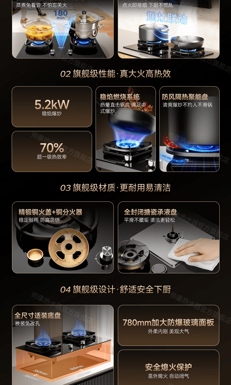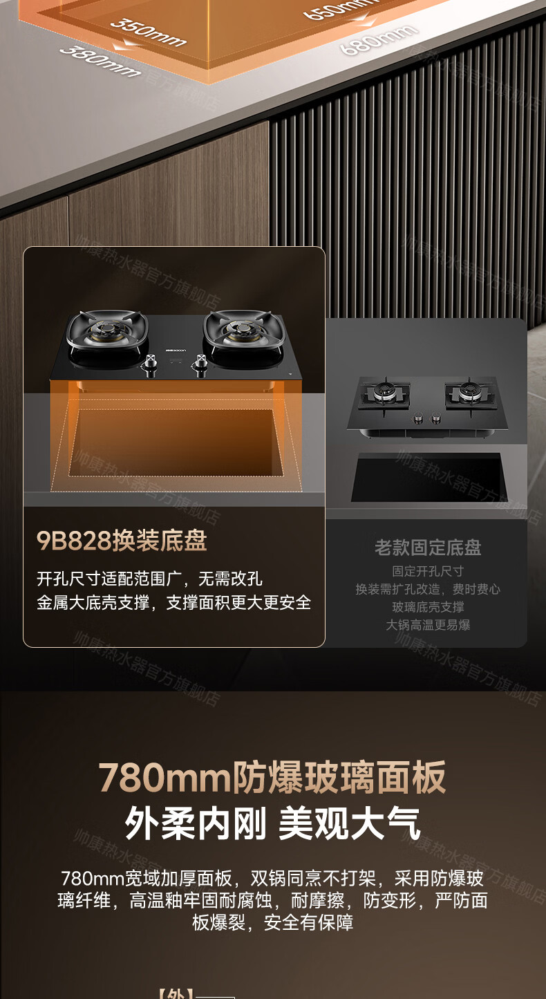 帅康(Sacon)燃气灶煤气灶铜火盖双灶天然气台嵌两用5.2kW双边定时灶免改孔烟灶联动9B828/9G826/9B868Max 5.2kW双边定时联动灶9B828 天然气