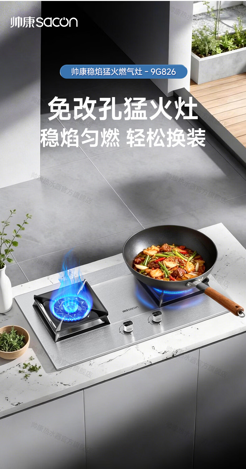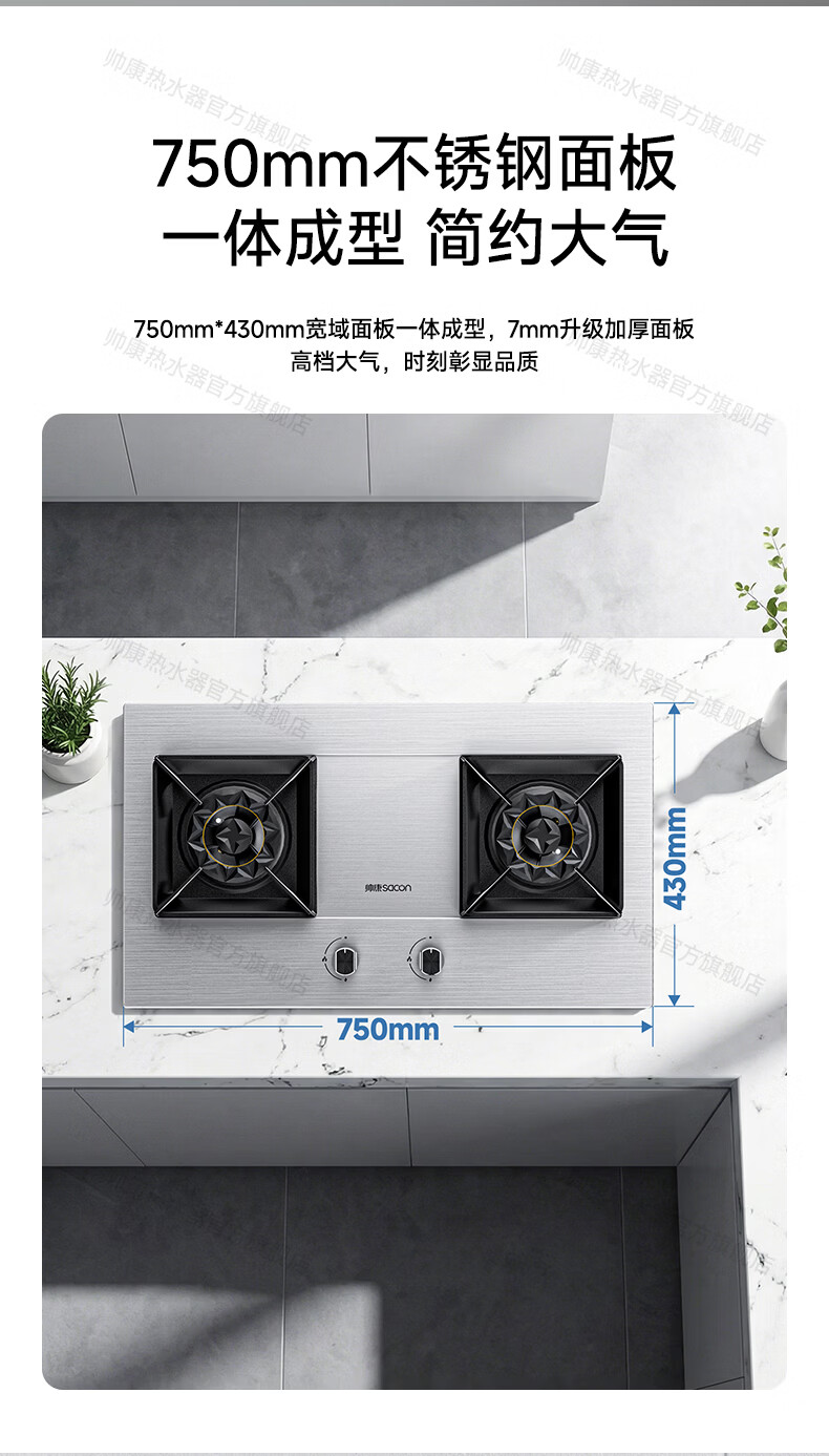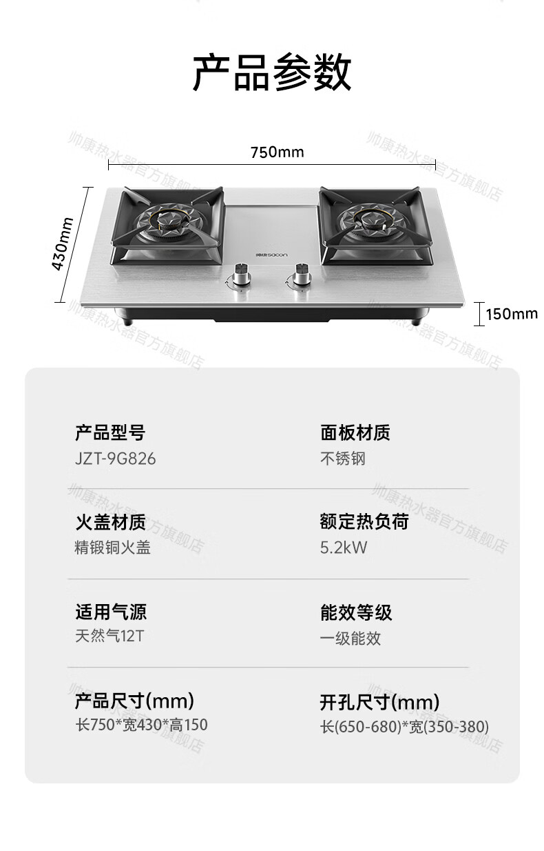 帅康(Sacon)燃气灶煤气灶铜火盖双灶天然气台嵌两用5.2kW双边定时灶免改孔烟灶联动9B828/9G826/9B868Max 5.2kW不锈钢面板灶9G826 天然气